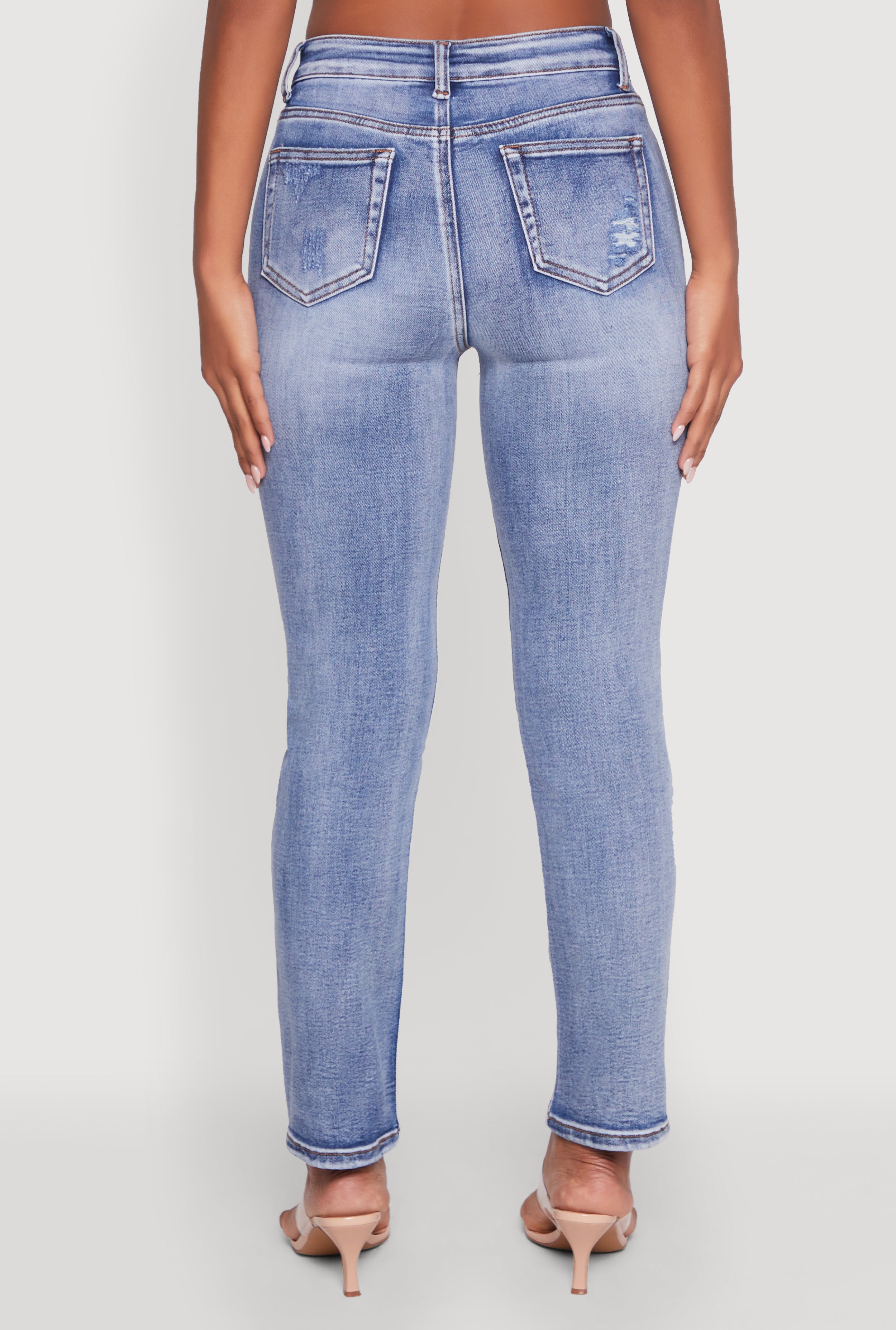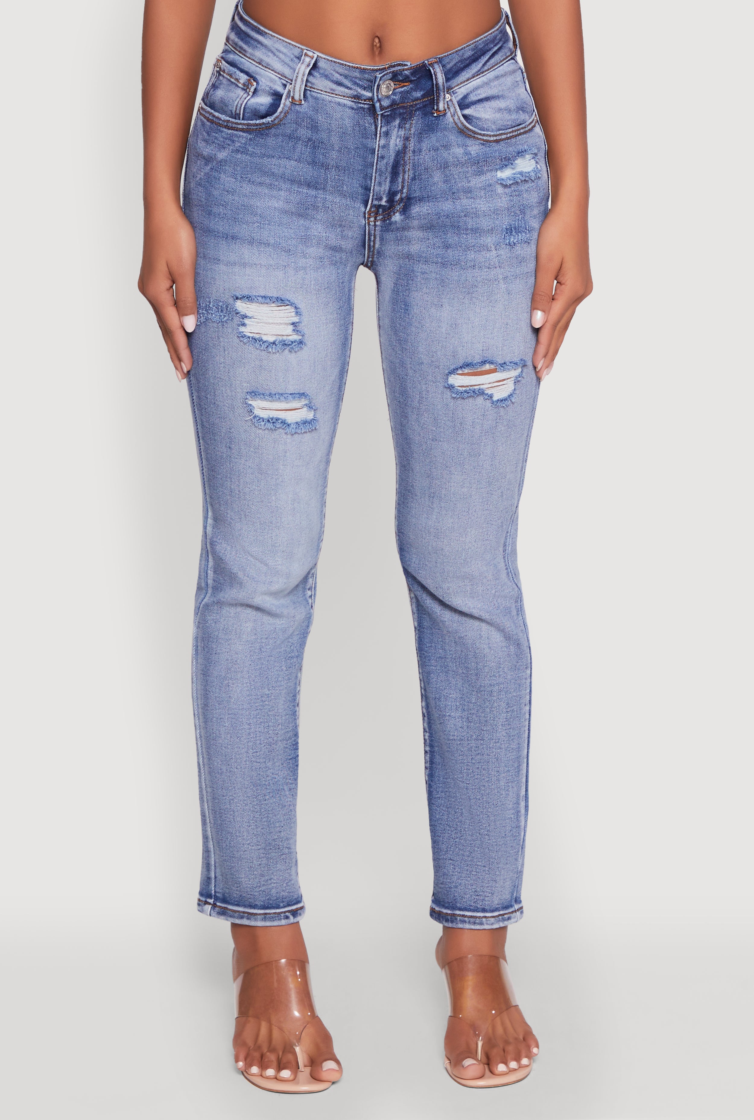 - Features stylish distressed and frayed details for a trendy look