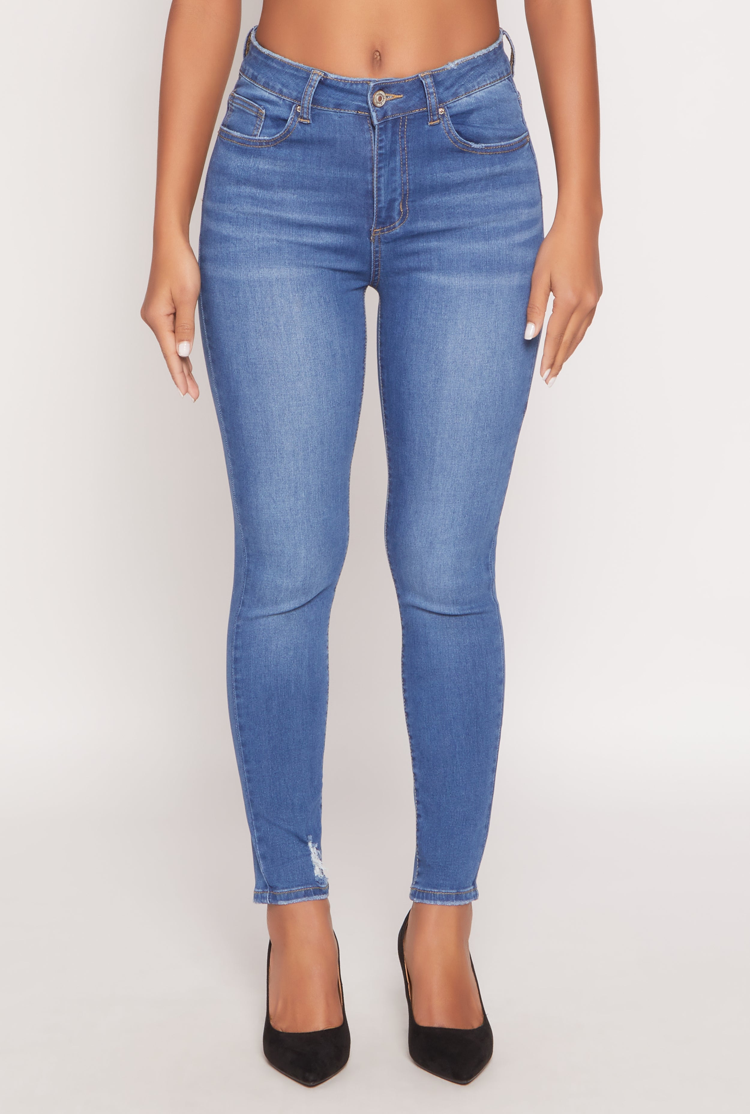 Upgrade your wardrobe with the WAX Frayed Detail Skinny Jeans, the perfect blend of edgy style and everyday comfort. These high-waisted denim beauties feature distressed and frayed accents that add just the right amount of attitude. Designed for a sleek skinny fit, they hug your curves and keep you looking effortlessly cool. Whether you're heading out with friends or just want to feel confident in your own skin, these jeans are your new go-to. Get ready to turn heads and feel fabulous all day long.
