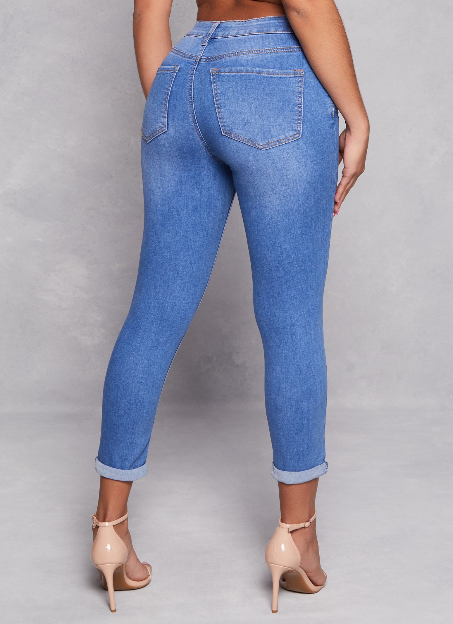 Upgrade your wardrobe with the WAX High Waist Rolled Cuff Denim Jeans, the perfect blend of style and comfort for your everyday look. These skinny leg jeans feature a trendy rolled cuff detail and a flattering mid-rise fit that sit just right. Made from sustainable denim material, they’re as eco-friendly as they are fashionable. Whether you're heading out with friends or just want to feel confident in your own skin, these jeans are your new go-to. Easy to pair with any top, they’re designed to keep you looking fresh and feeling fabulous all day long.