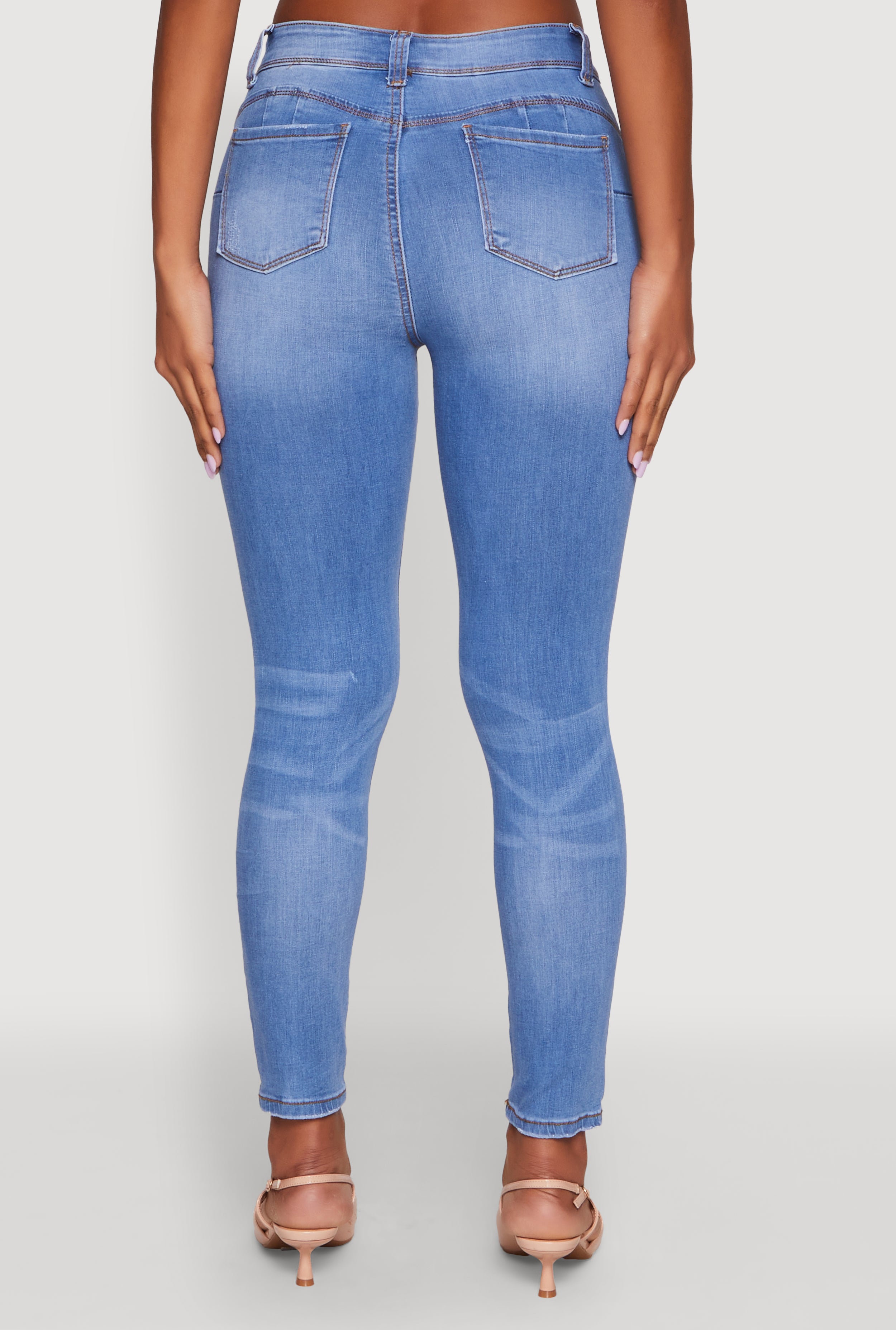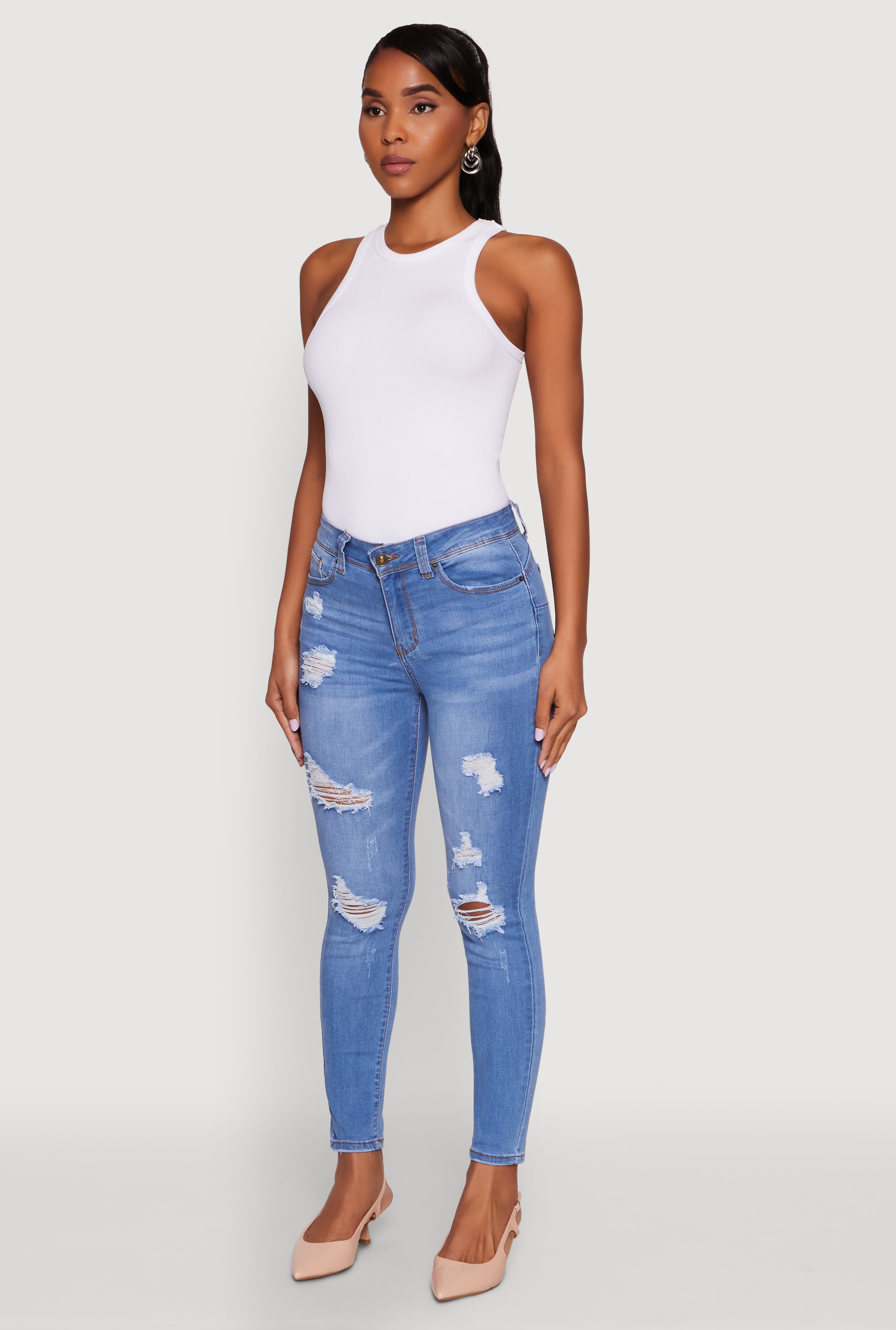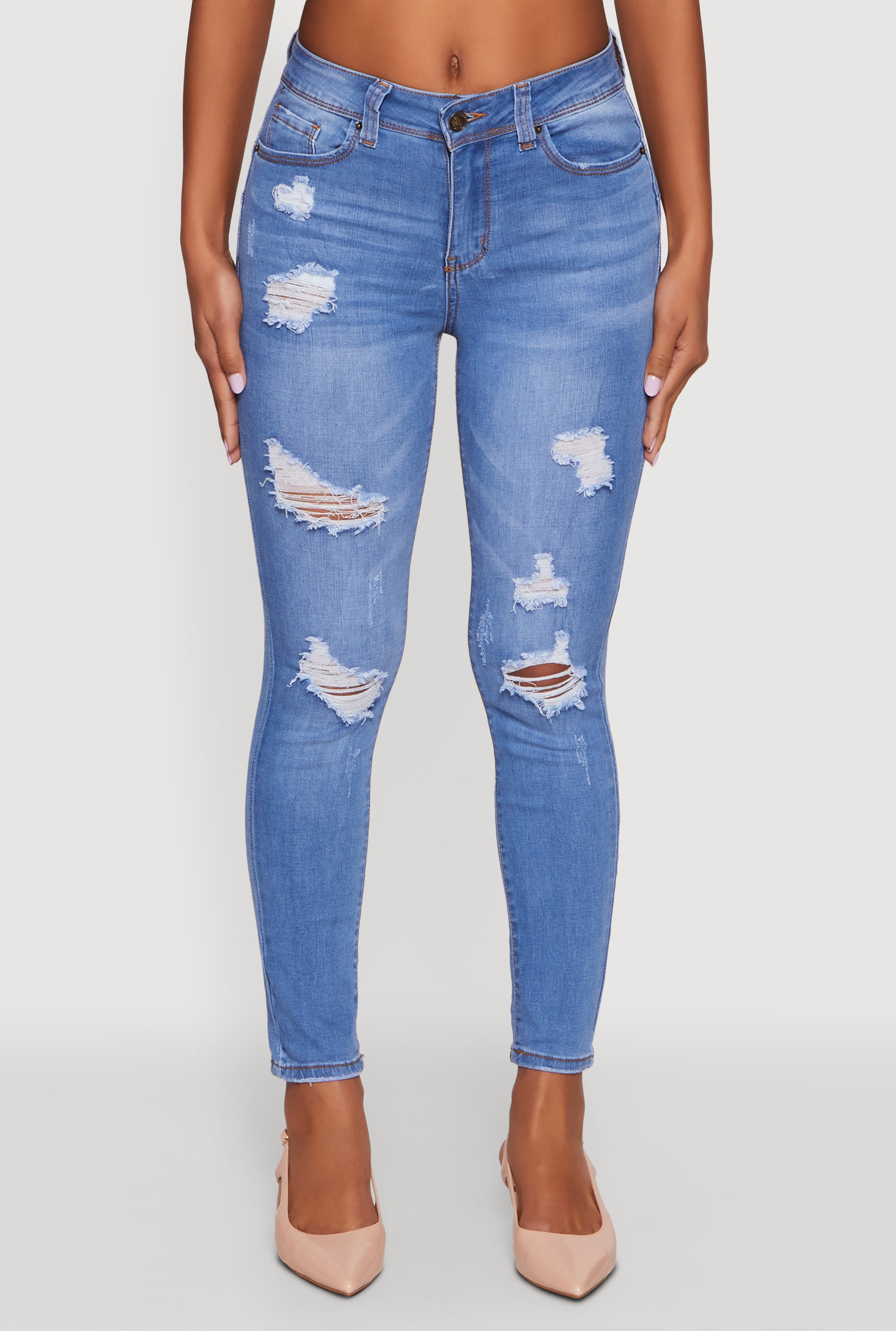 Get ready to elevate your casual look with the WAX Mid Rise Distressed Jeans. Perfectly blending edgy style with everyday comfort, these jeans are a must-have for anyone who wants to stand out effortlessly. With their trendy distressed details and cropped hem, you'll be turning heads wherever you go. Whether you're out with friends or just running errands, these skinny leg denim jeans are your new go-to.