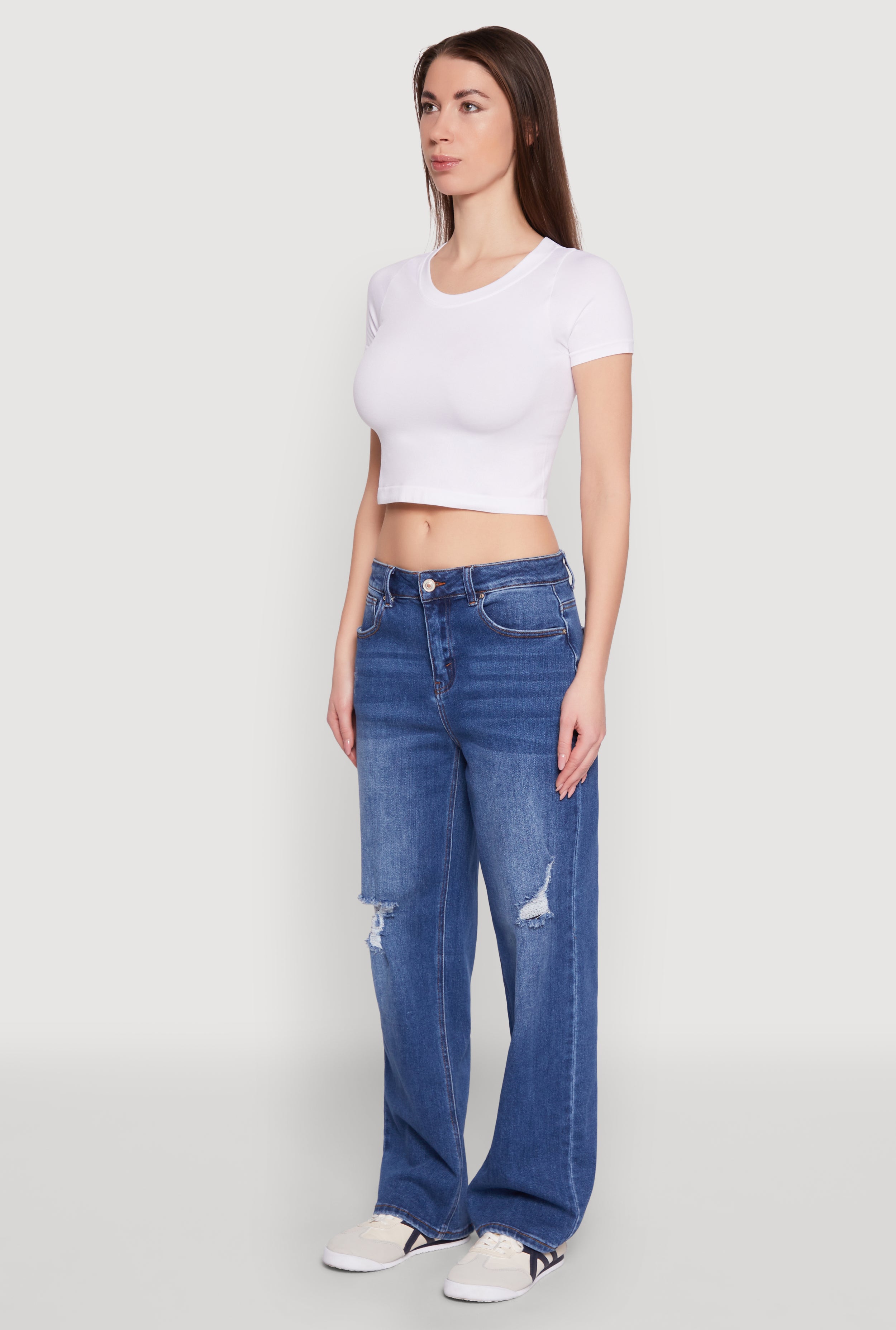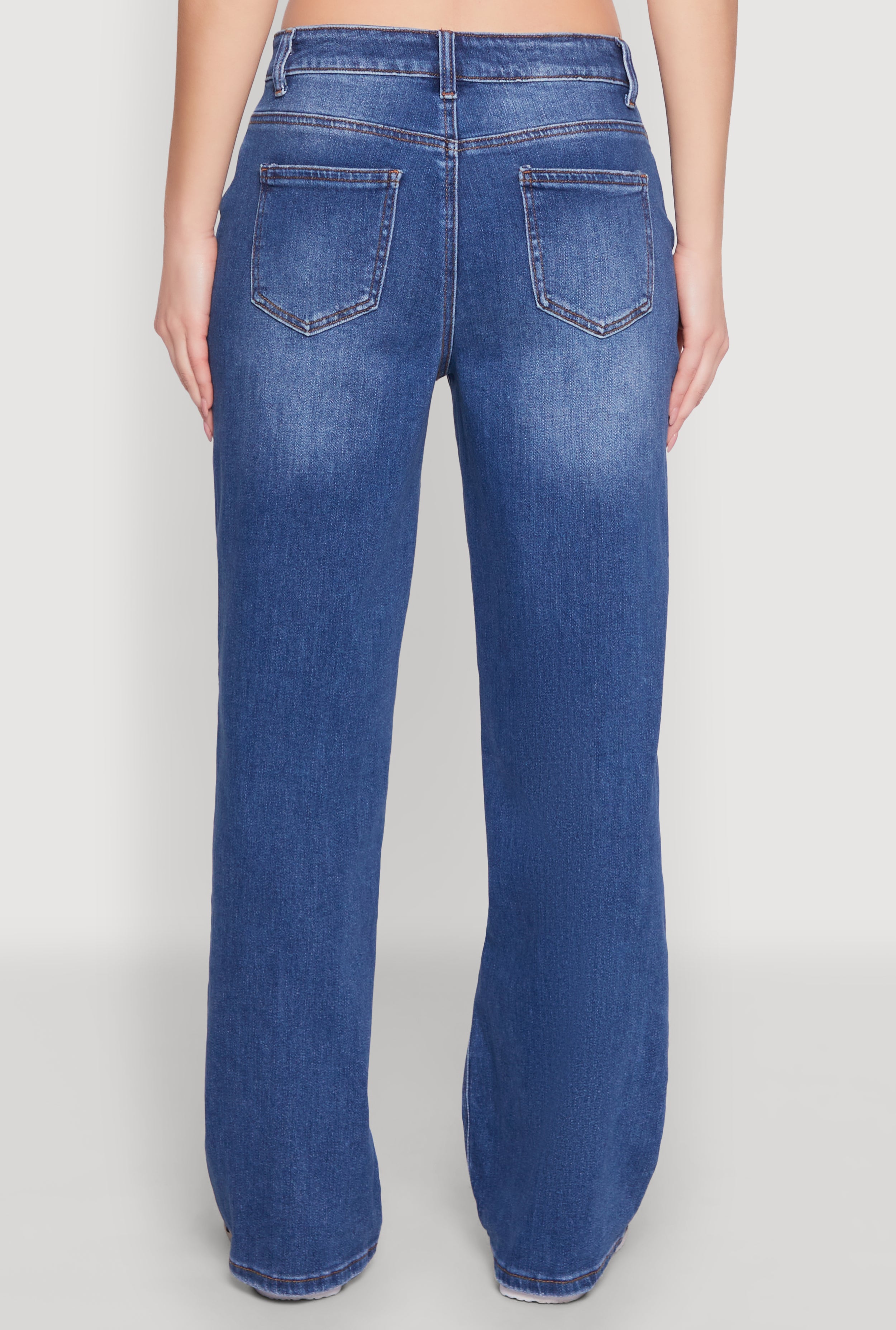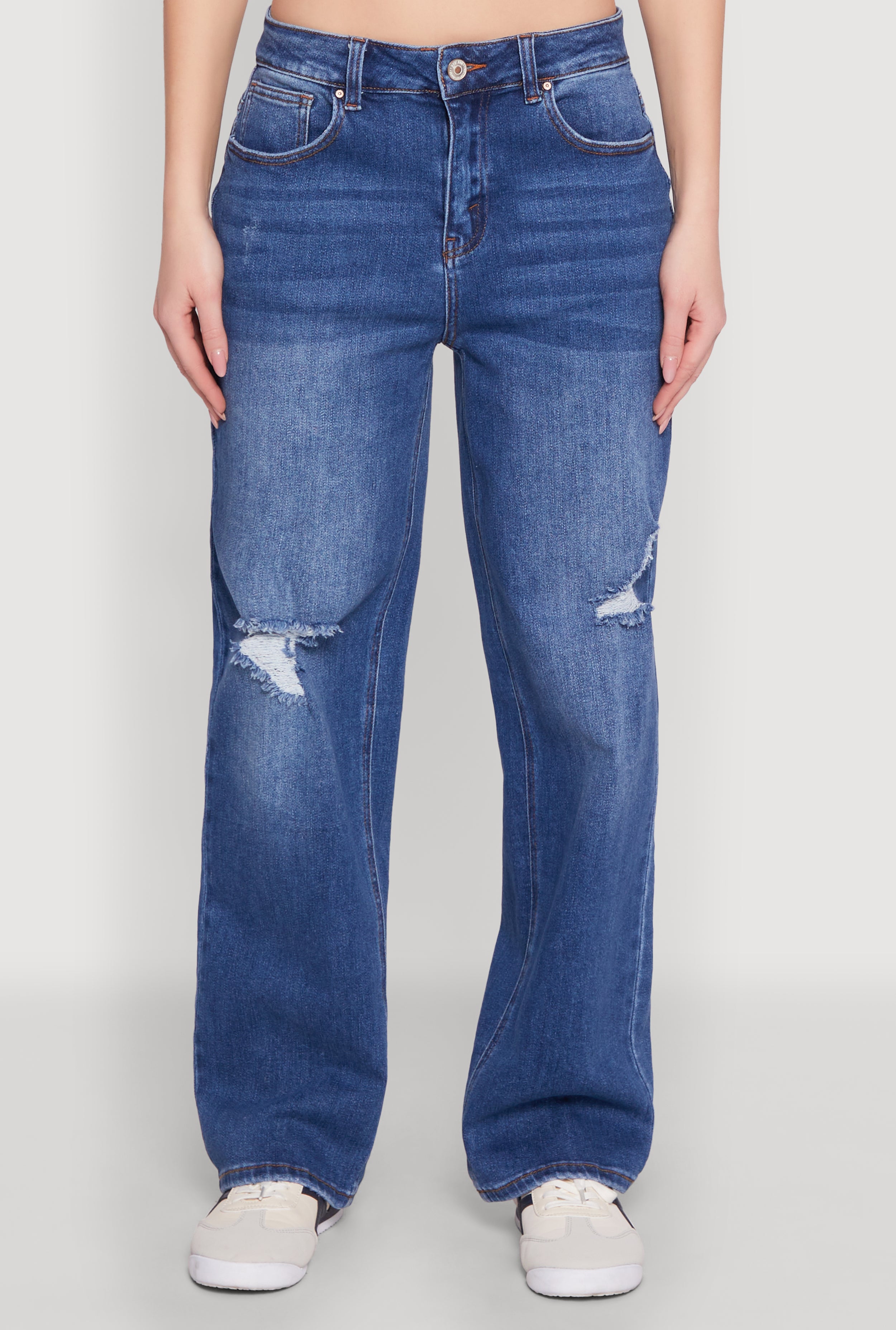 - Ombre distressing and whiskering add unique style details
