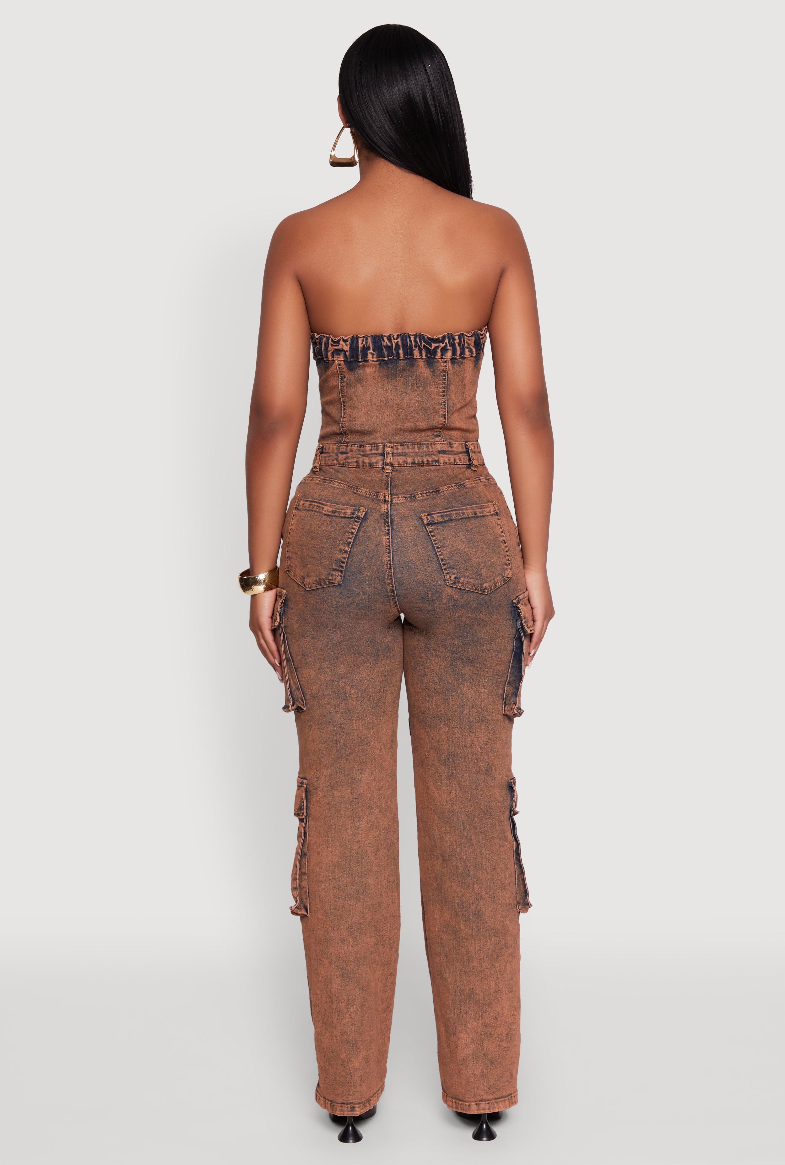 Get ready to turn heads in the Daisy Mineral Wash Denim Jumpsuit with Cargo Pockets. Perfect for those sunny days or casual hangouts, this sleeveless, strapless jumpsuit combines effortless style with a cool mineral wash finish. The straight-leg silhouette and handy cargo pockets make it both trendy and practical. Whether you're out with friends or running errands, this piece is your new go-to for looking chic without trying too hard.