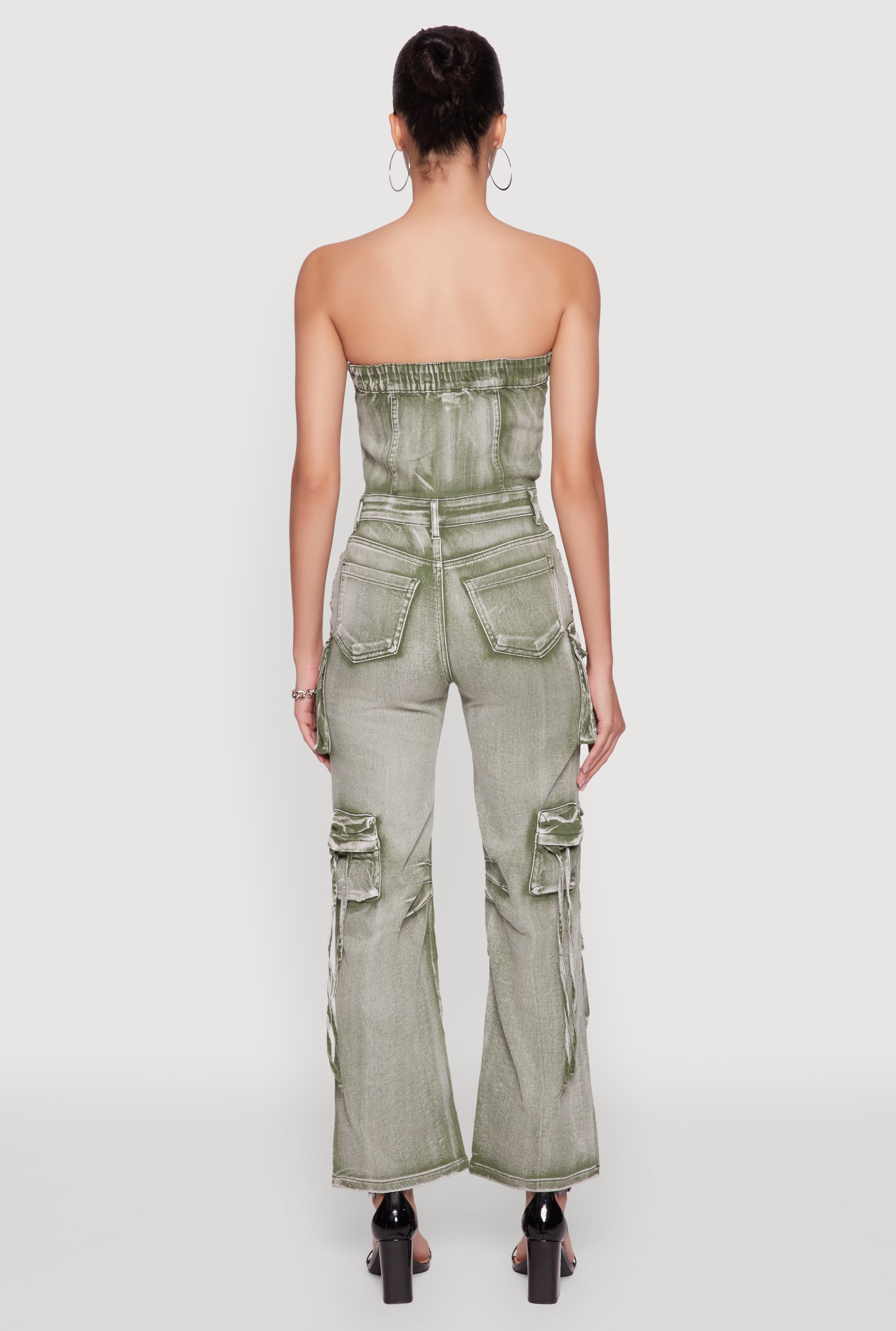 Get ready to turn heads with the Daisy Denim Strapless Flare Jumpsuit. Perfect for those who want to look effortlessly chic and stay comfy all day long, this jumpsuit is a must-have in your wardrobe. Its trendy flare leg and strapless design make it ideal for sunny days and nights out. Plus, the cargo pockets add a fun, practical touch that keeps your essentials close without sacrificing style. Whether you're dressing up or down, this denim jumpsuit is your new go-to for a cool, casual vibe that feels as good as it looks.