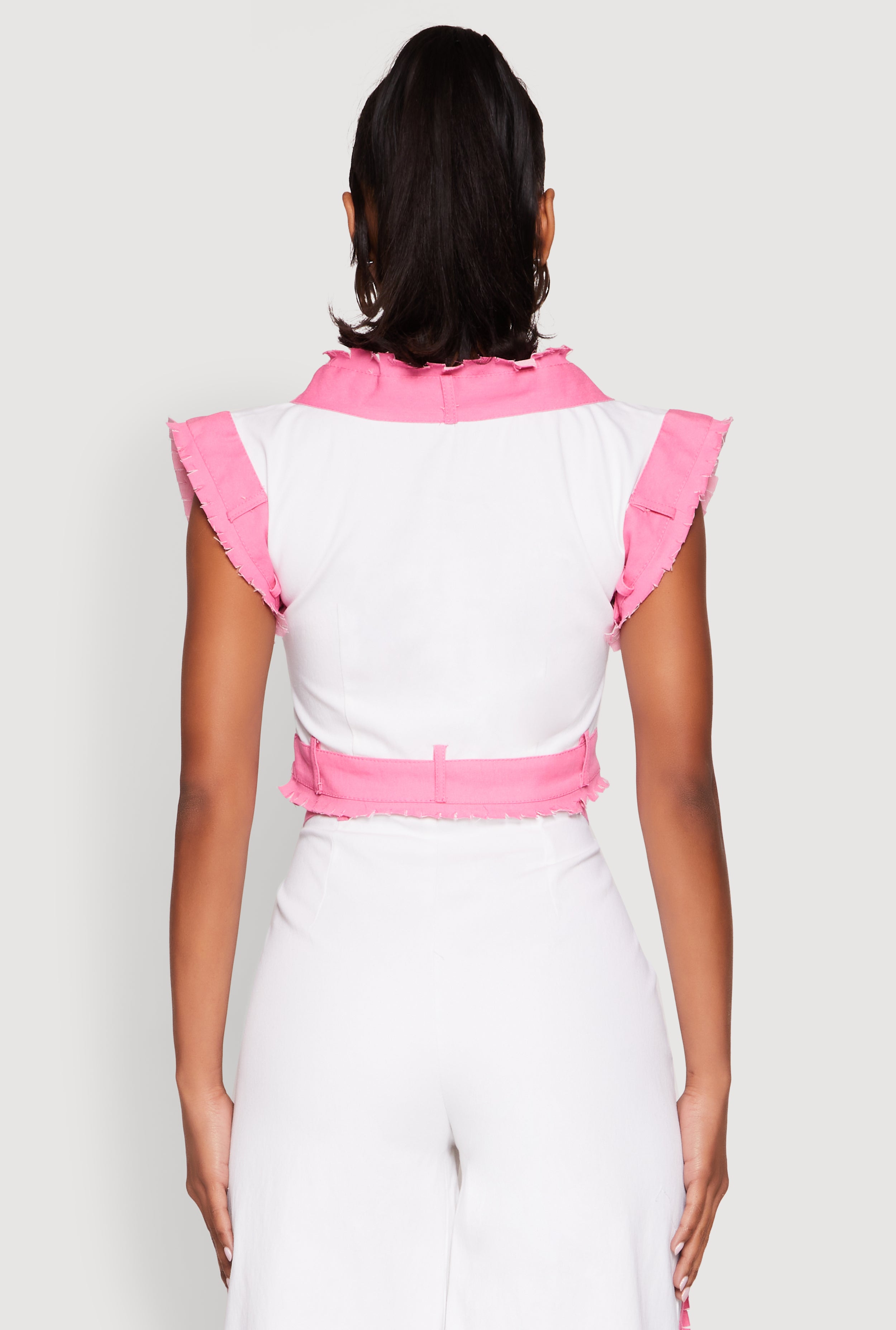 • Cropped hem adds a trendy, modern vibe perfect for pairing with high-waisted bottoms