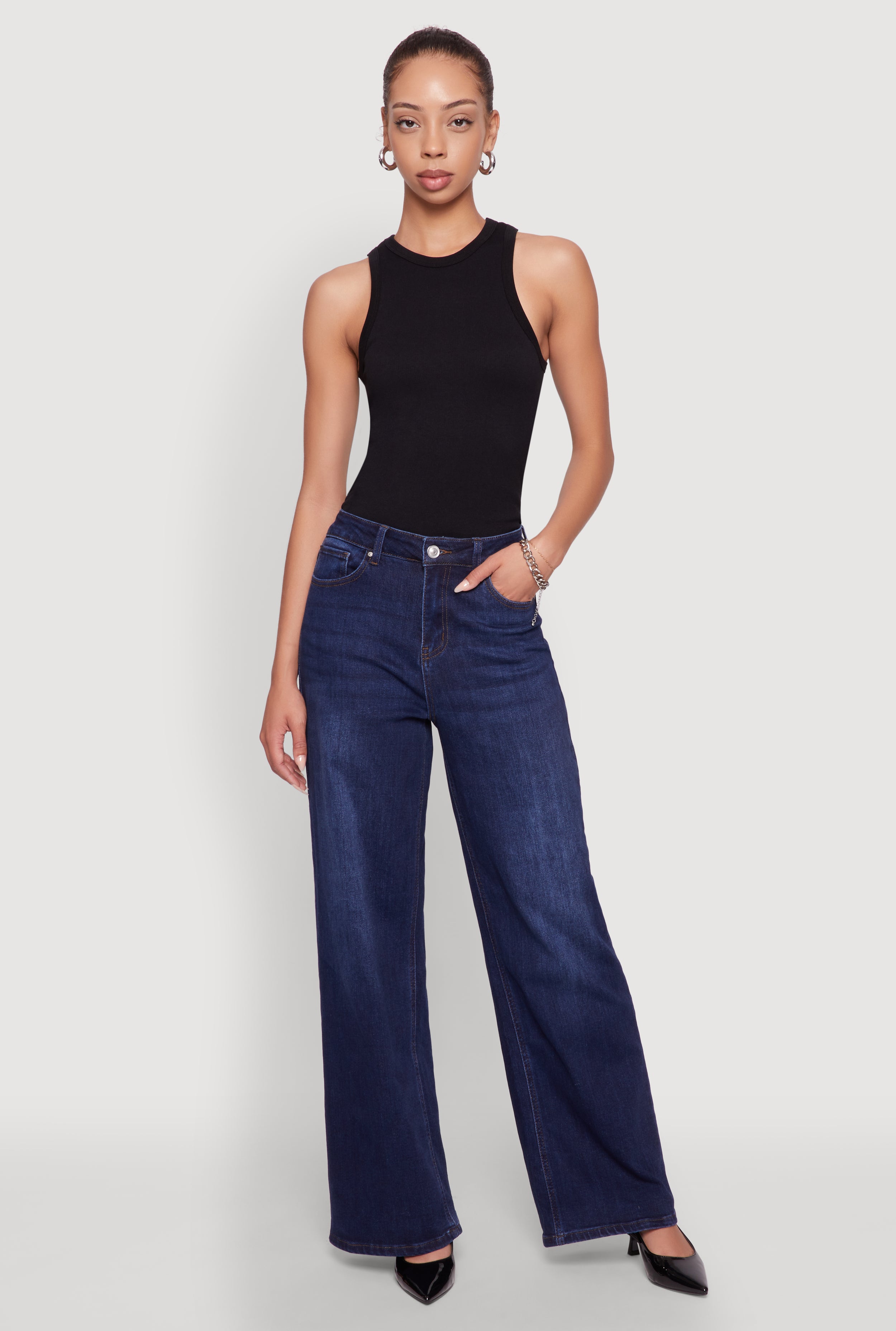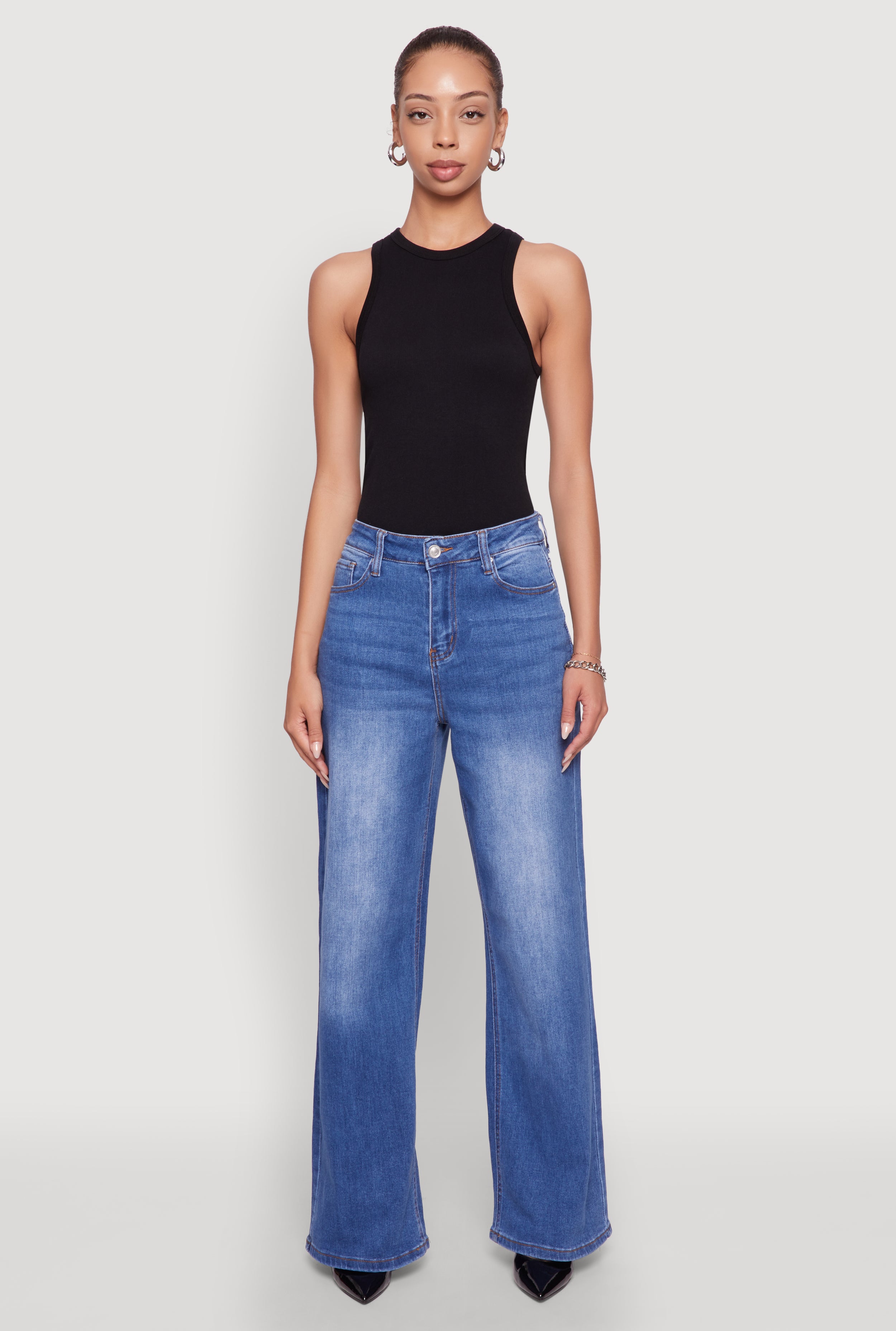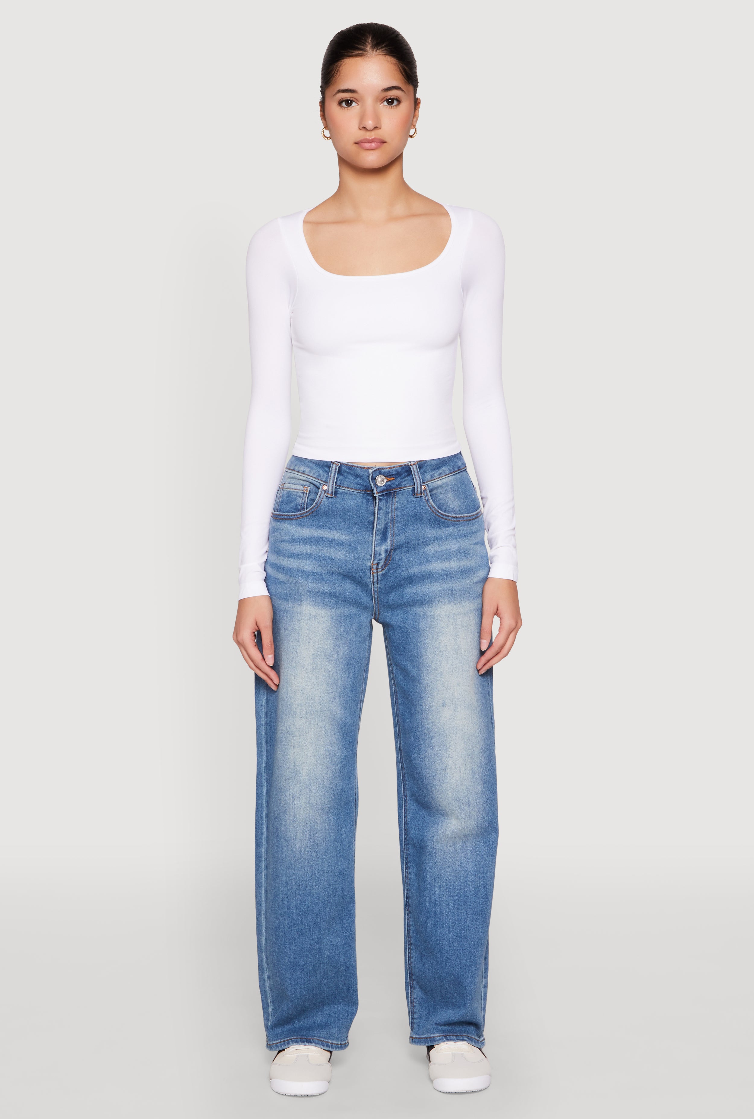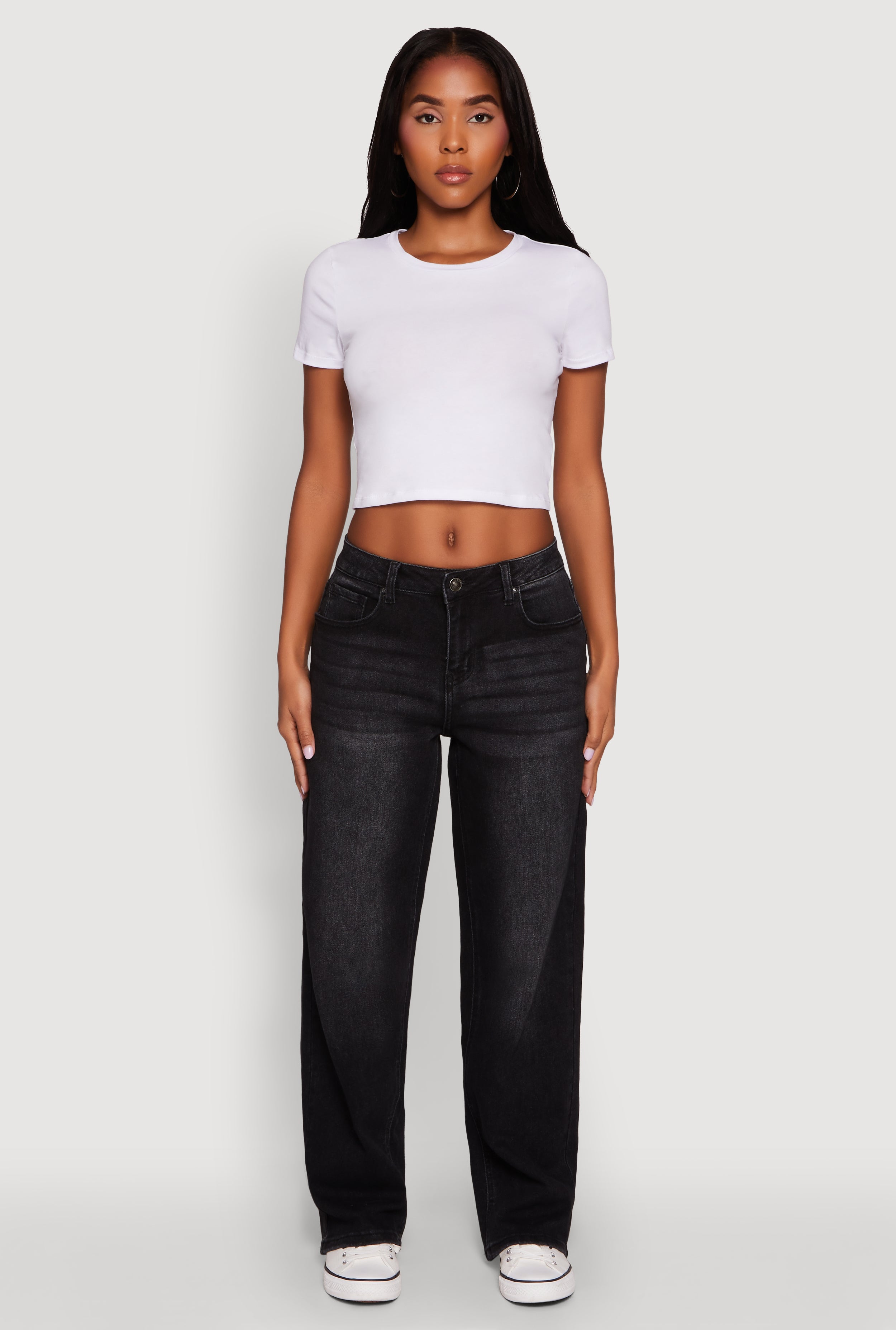 Mineral Wash High Waisted Straight Leg Utility Jeans