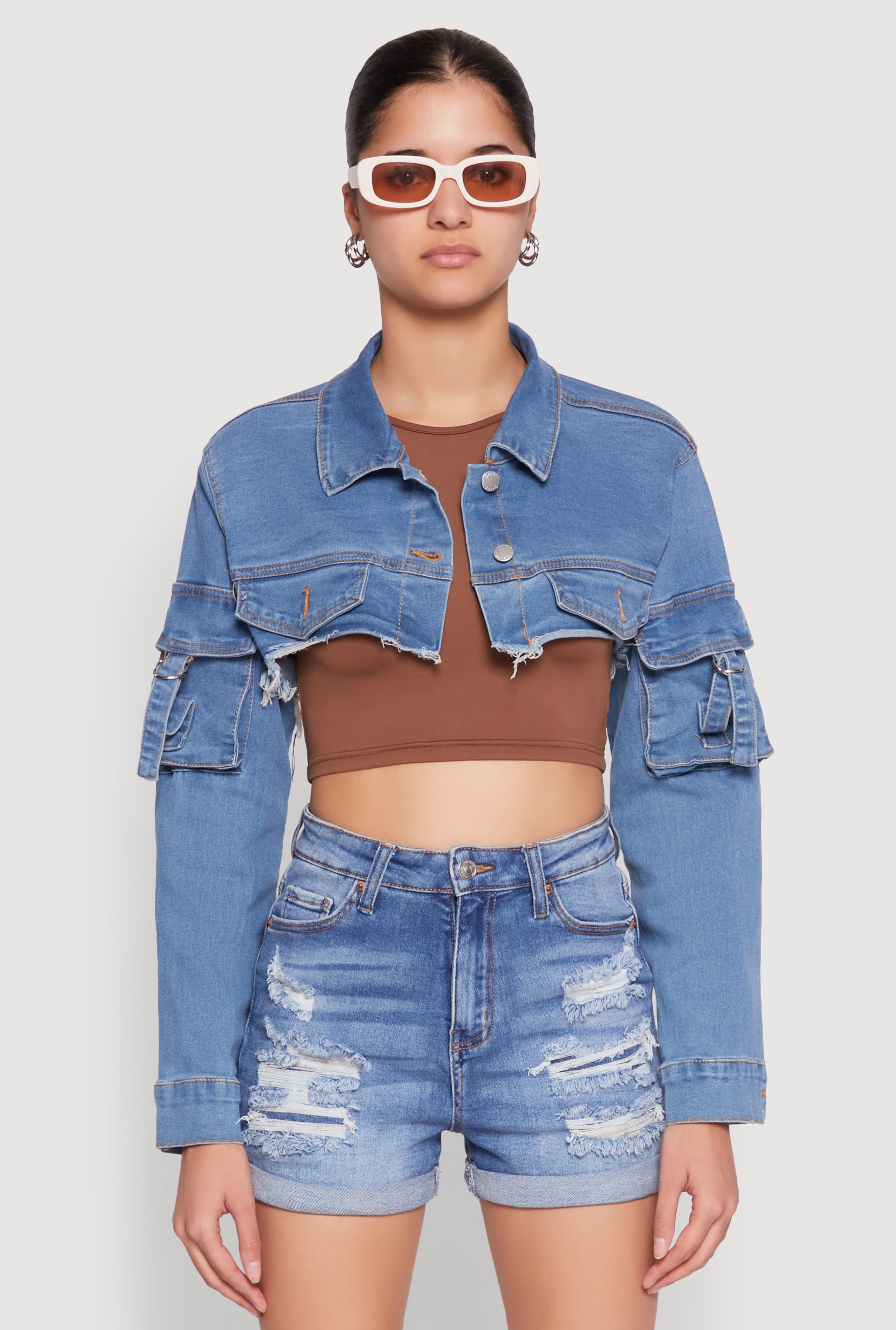 Daisy Cargo Pocket Sleeve Bolero Jean Jacket