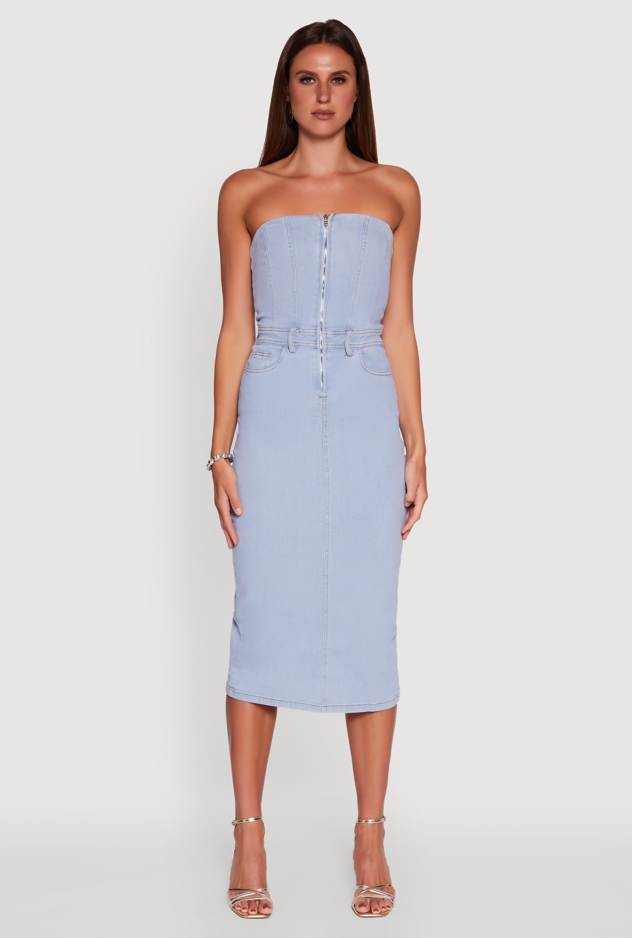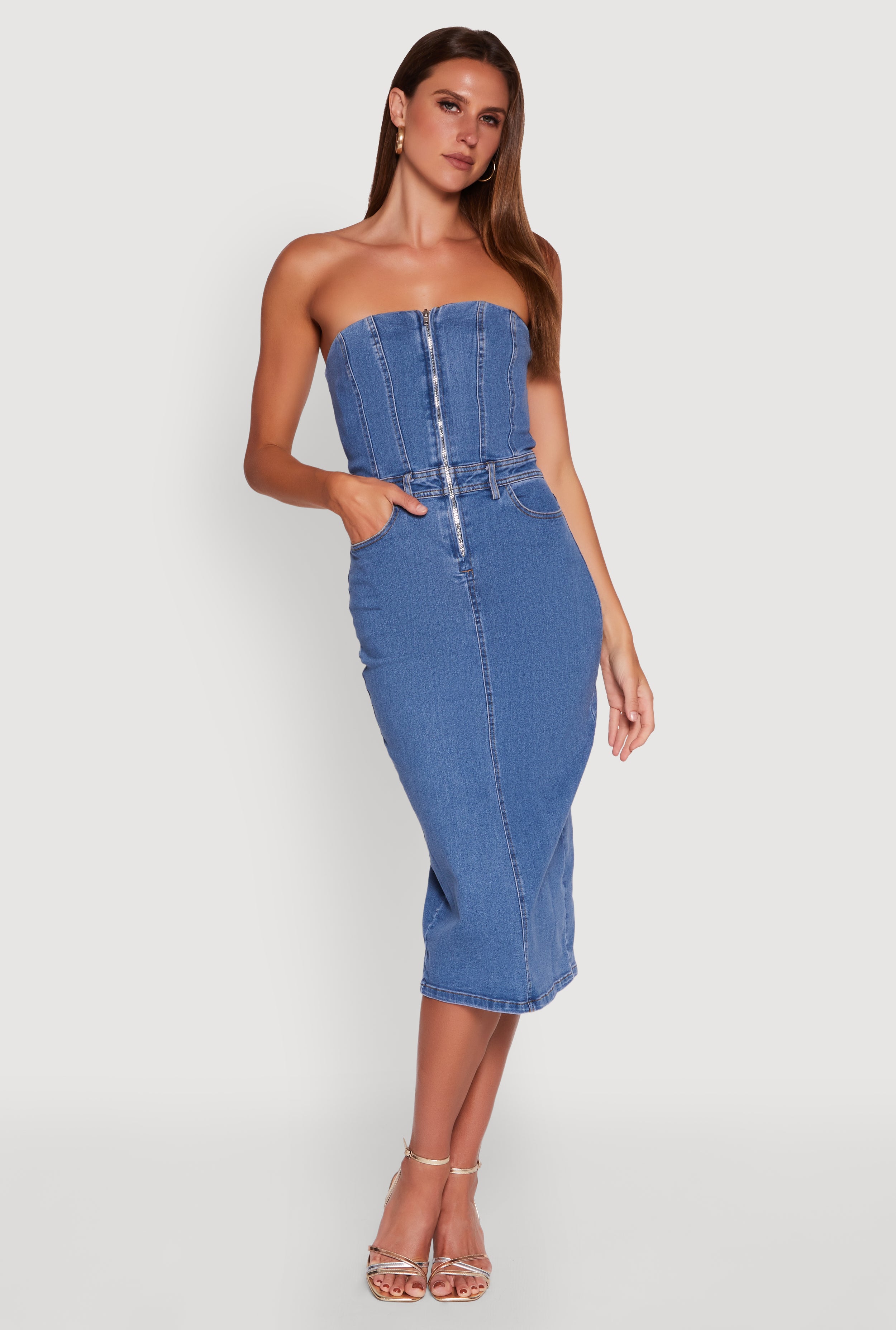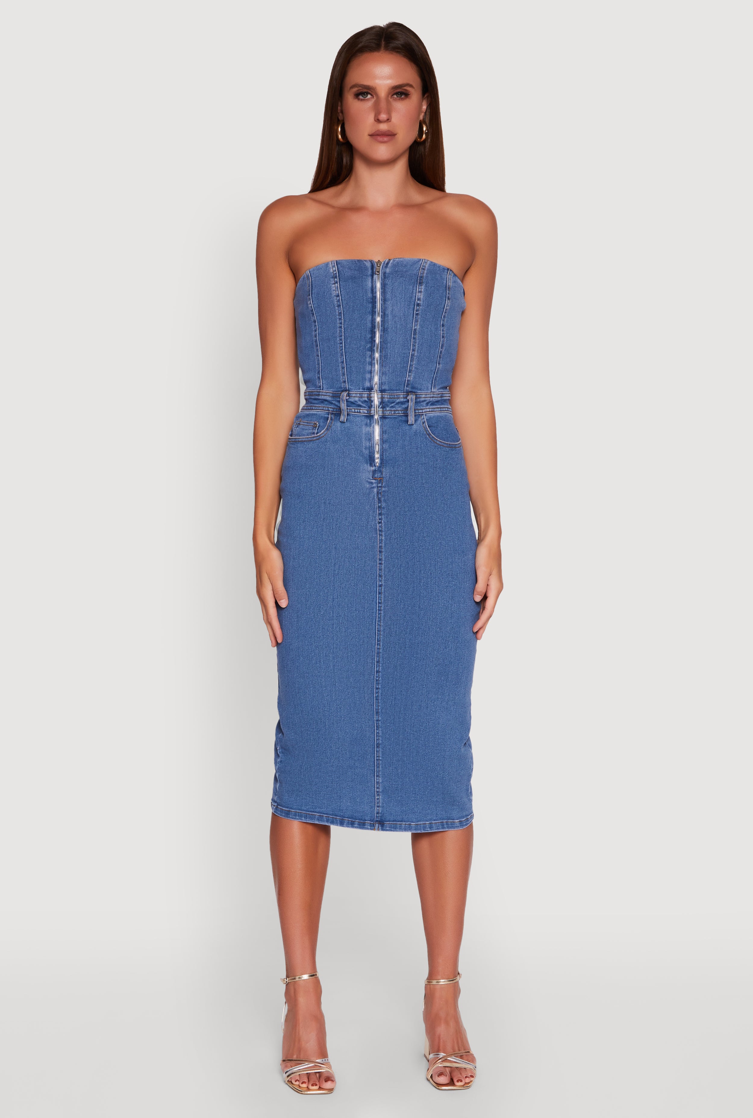 Haute Monde Denim Zip Front Corset Tube Dress