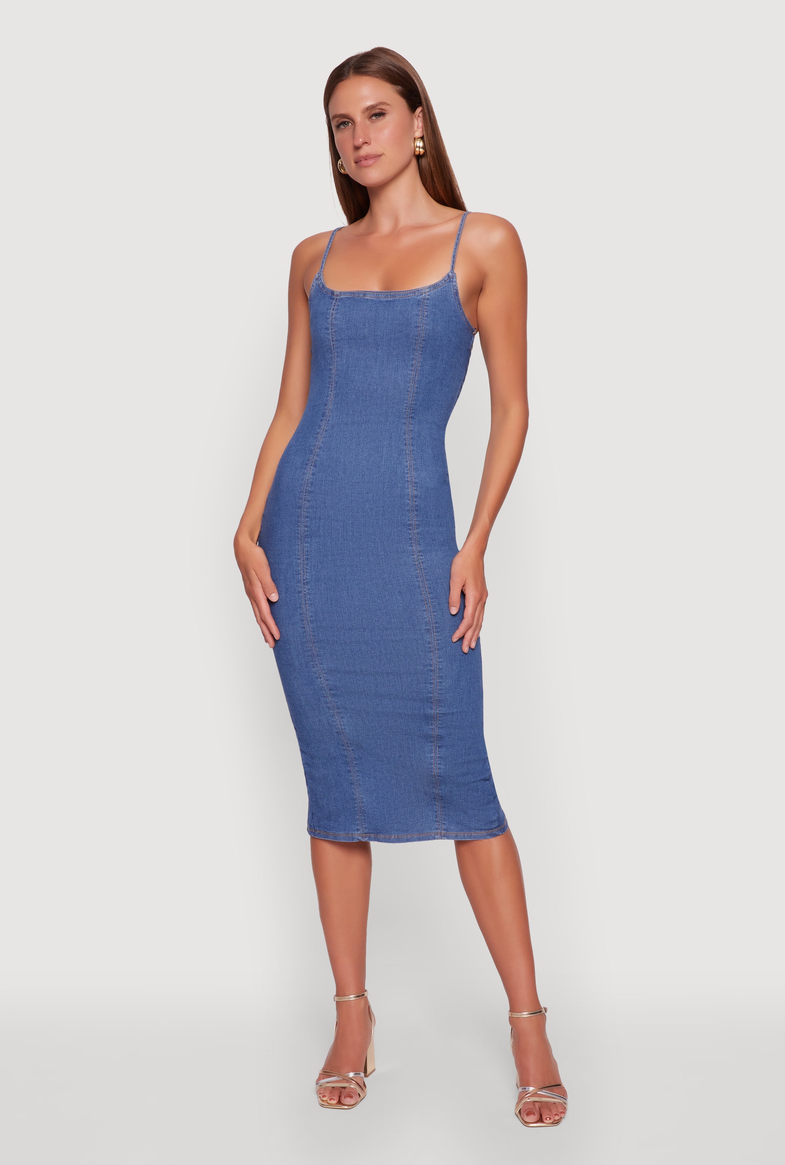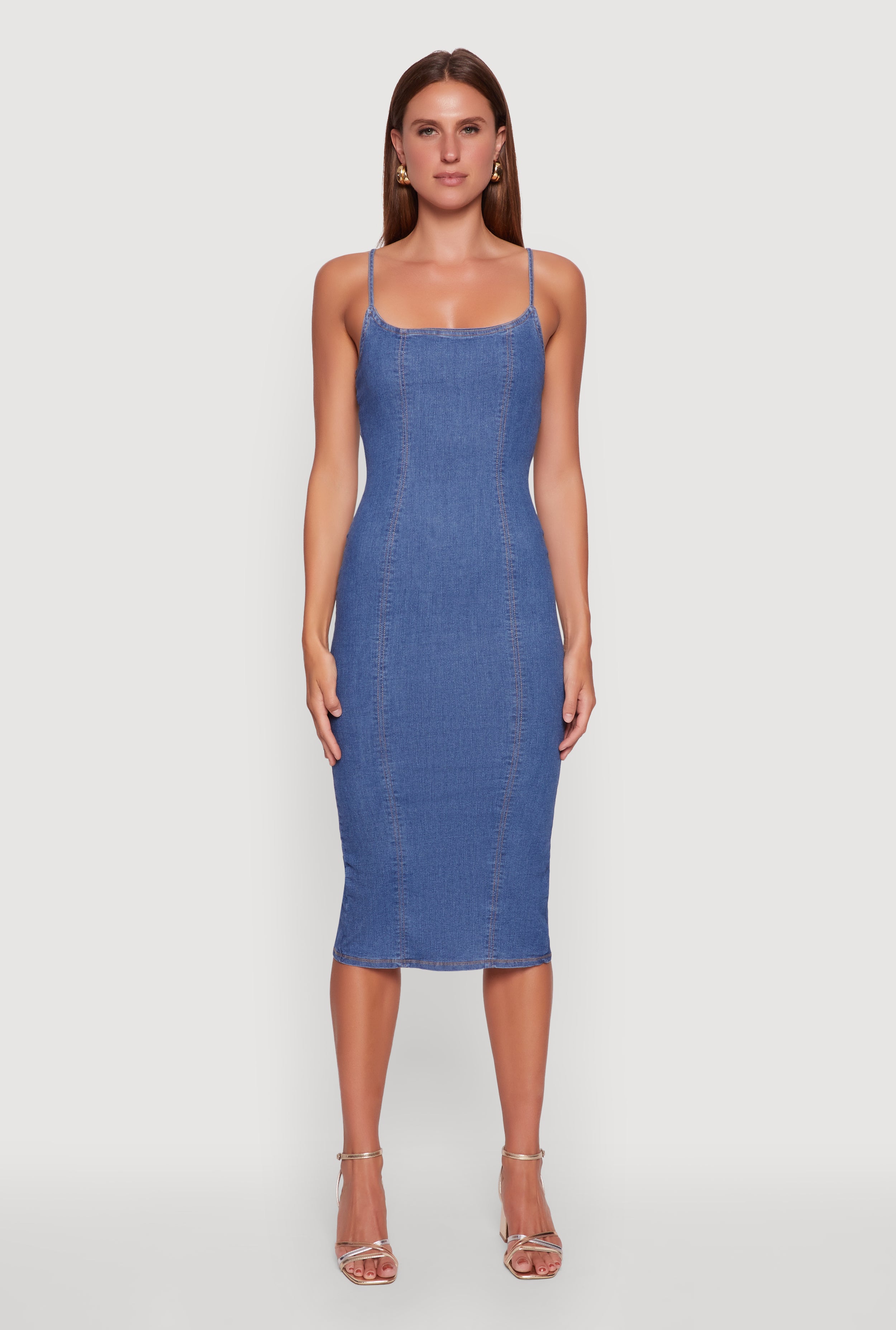 Denim Pintuck Slit Back Bodycon Dress
