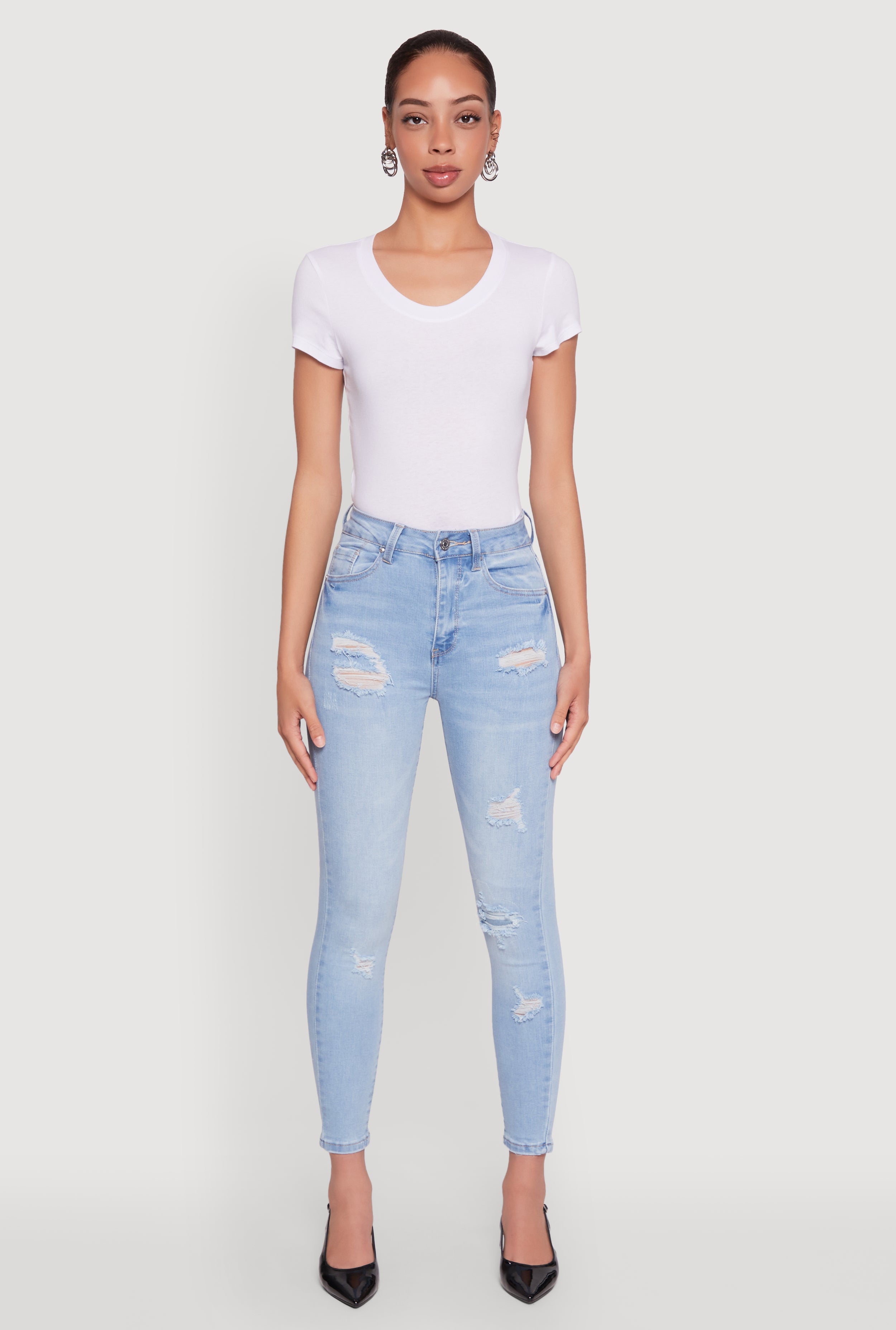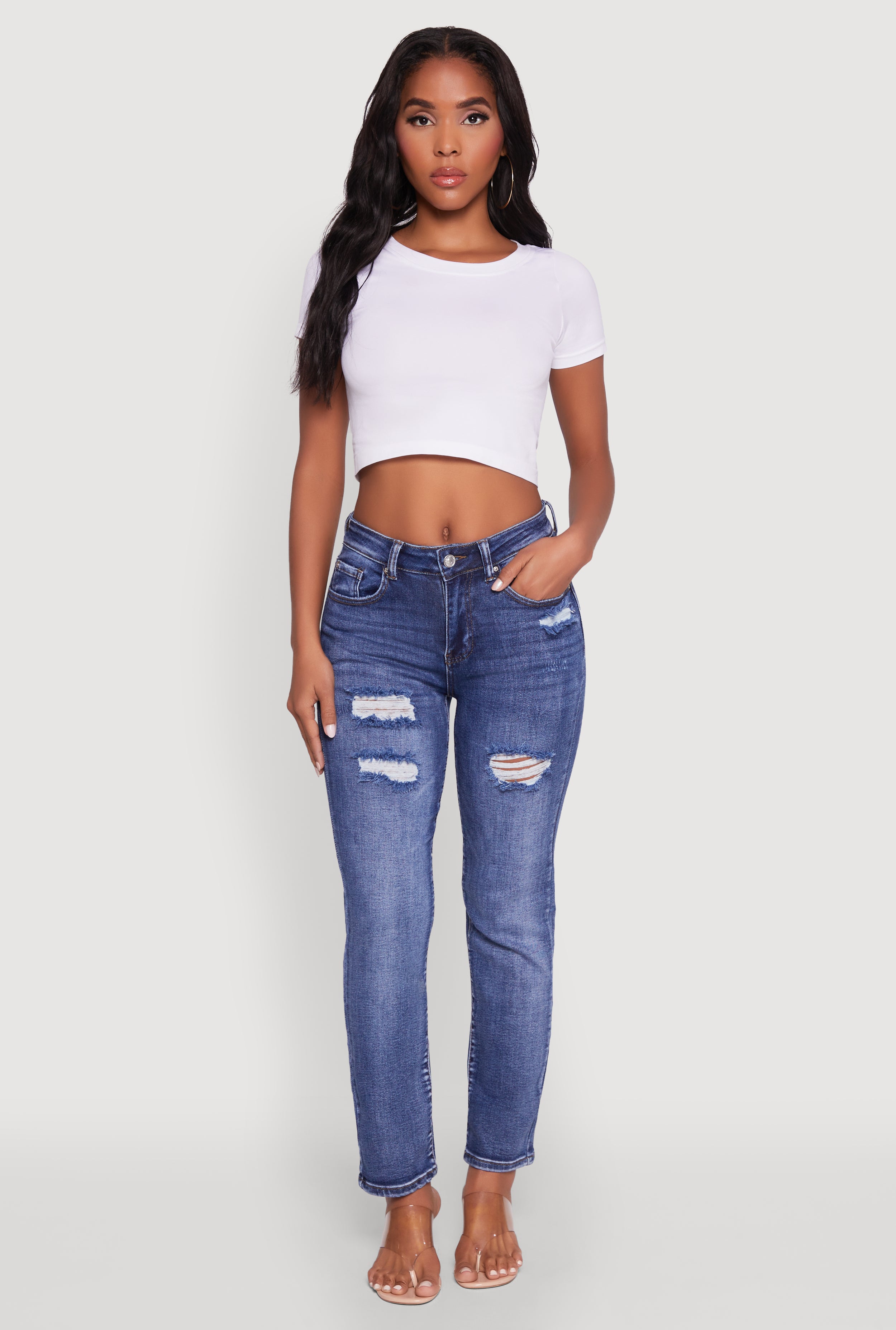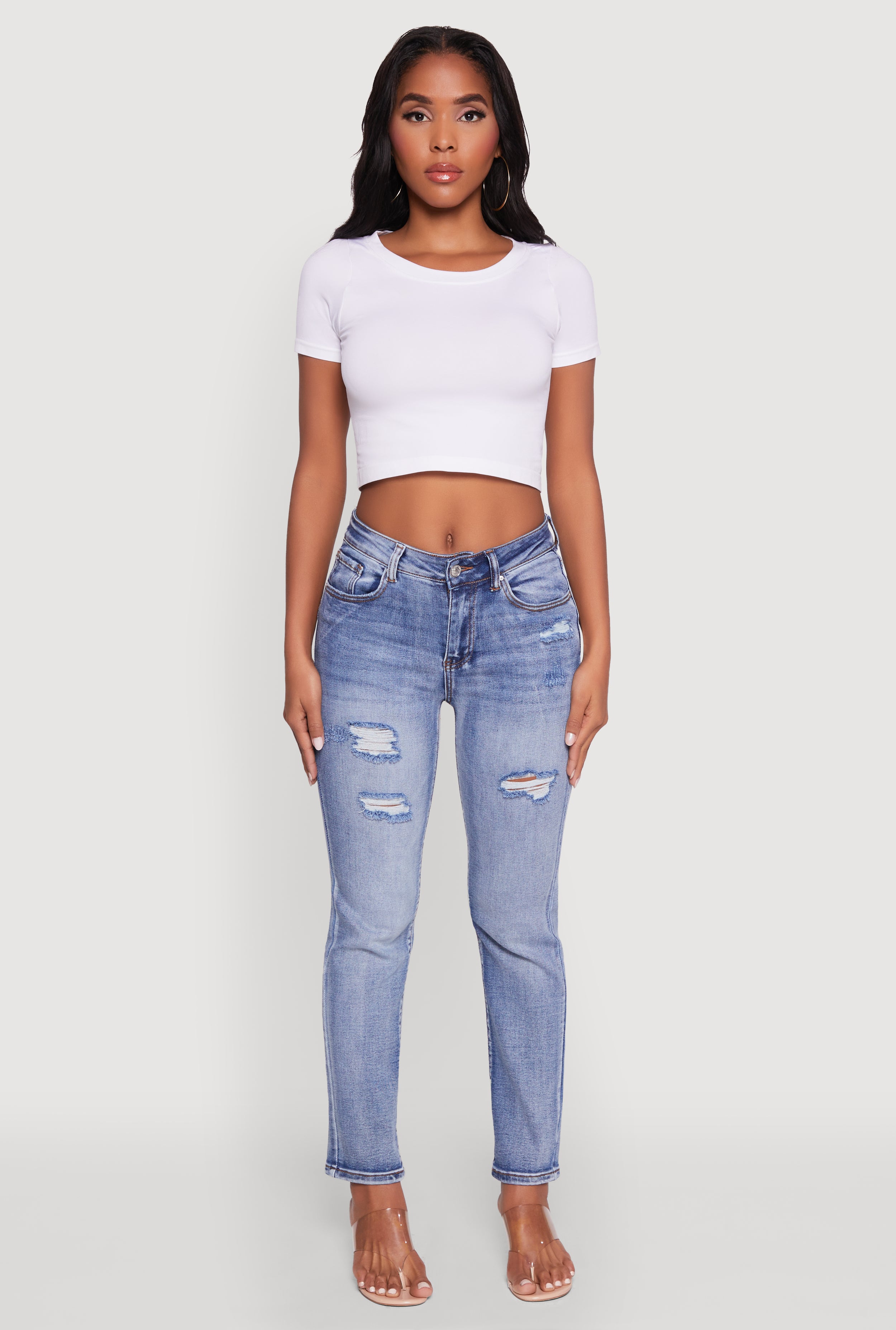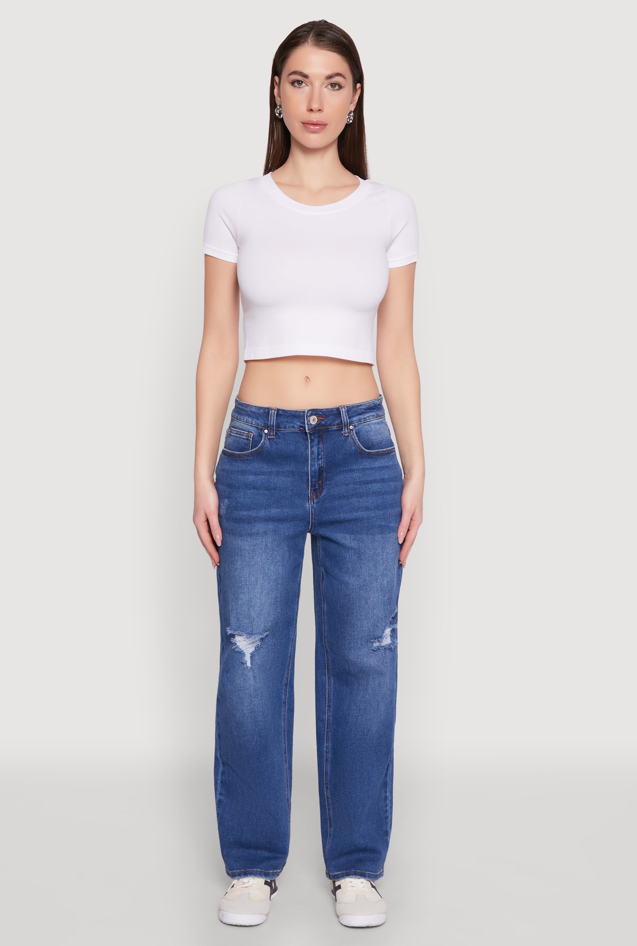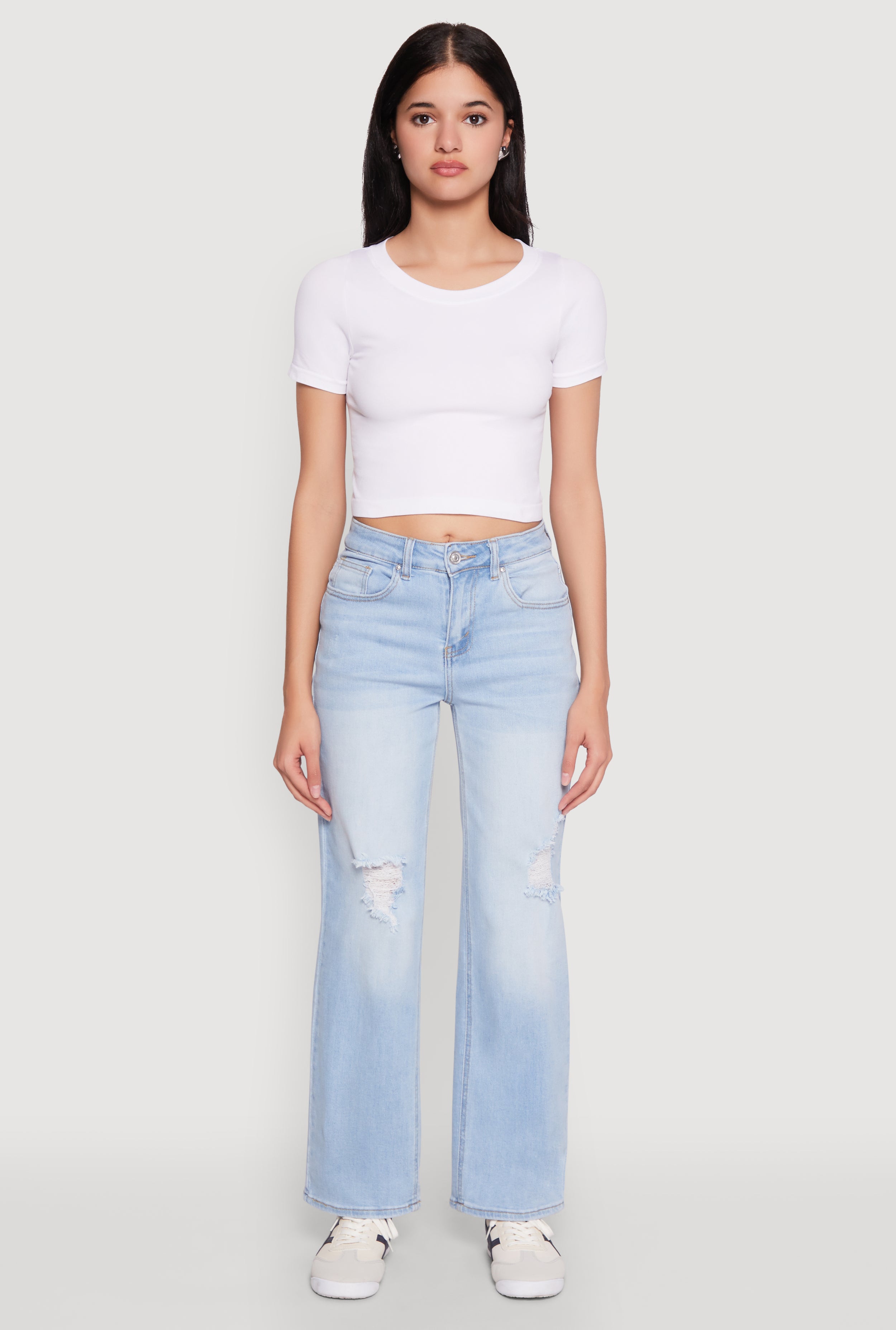 WAX Distressed Straight Leg Jeans