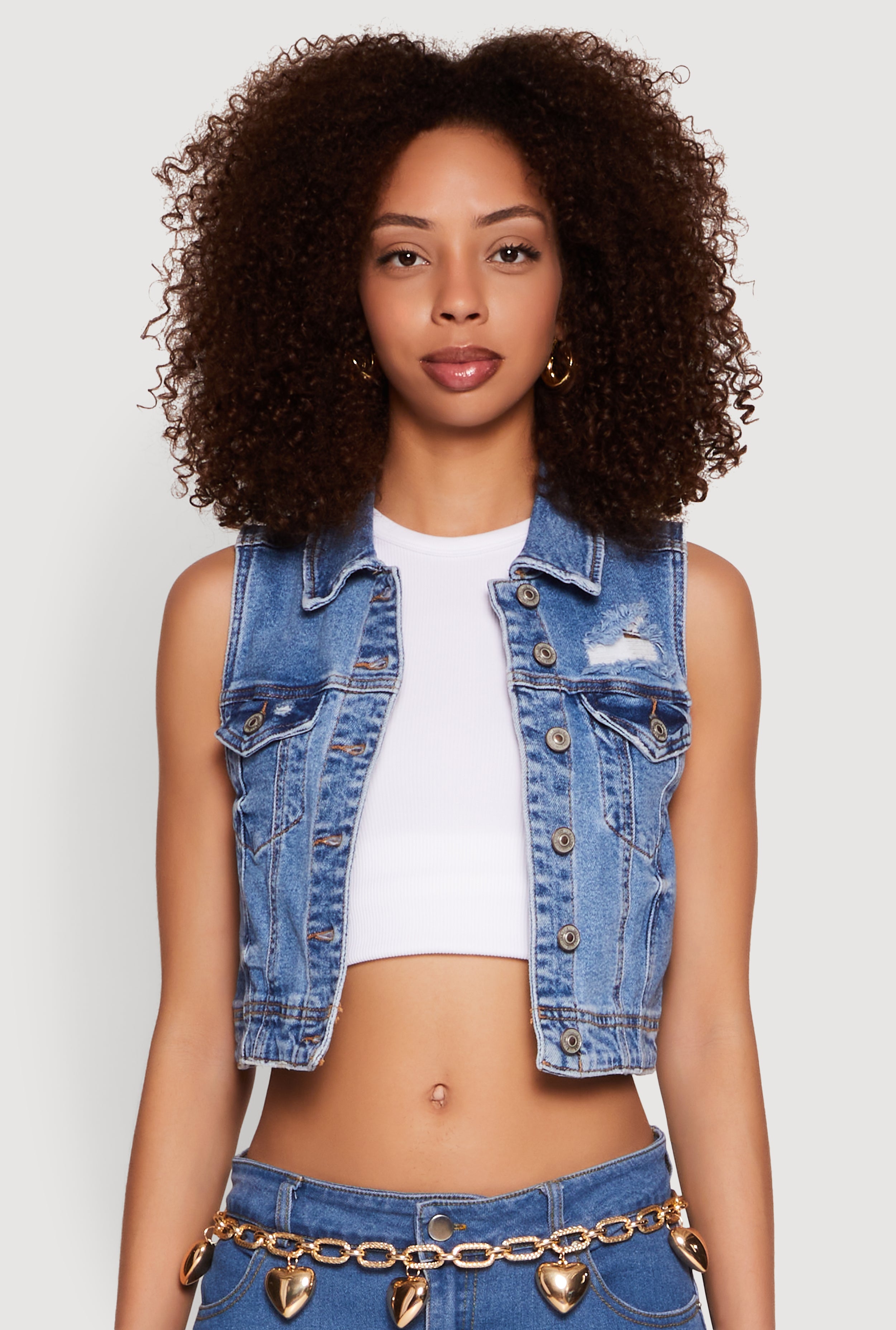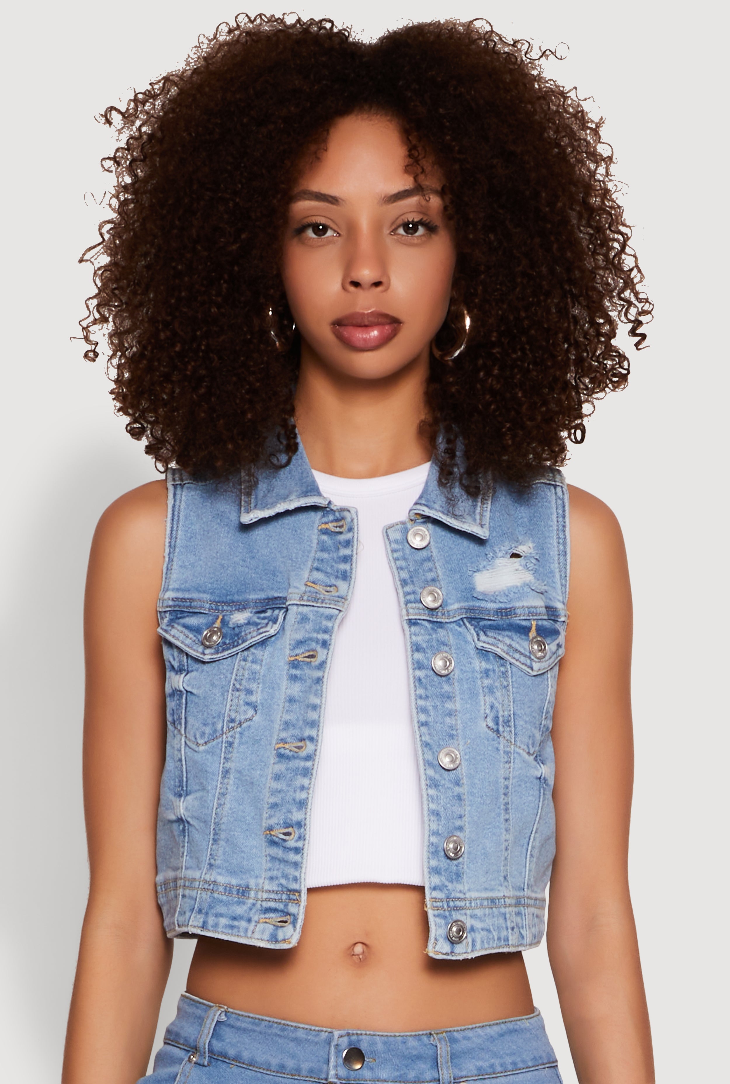 WAX Distressed Button Front Denim Vest