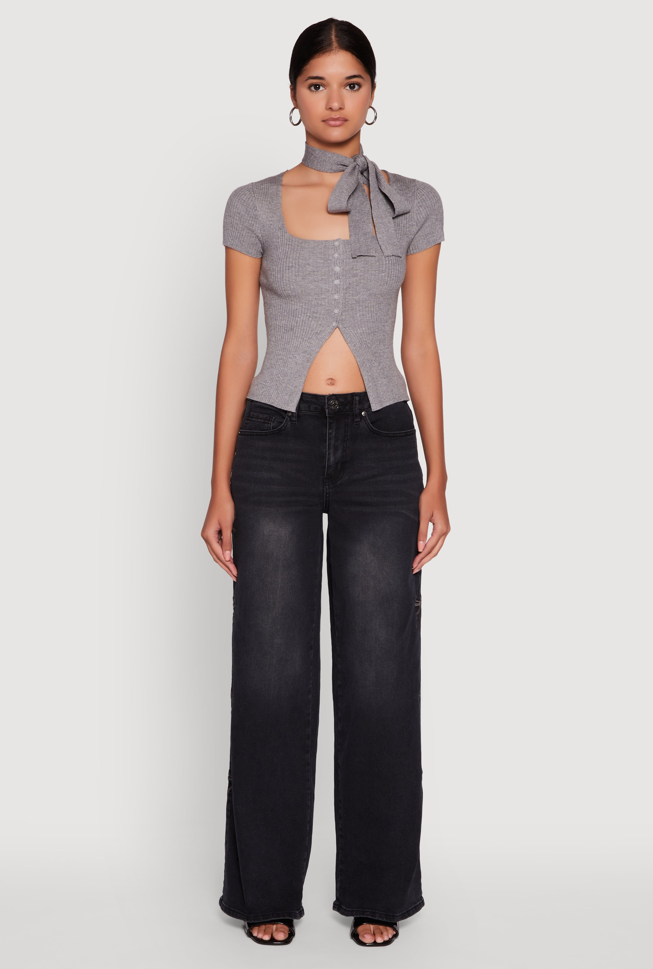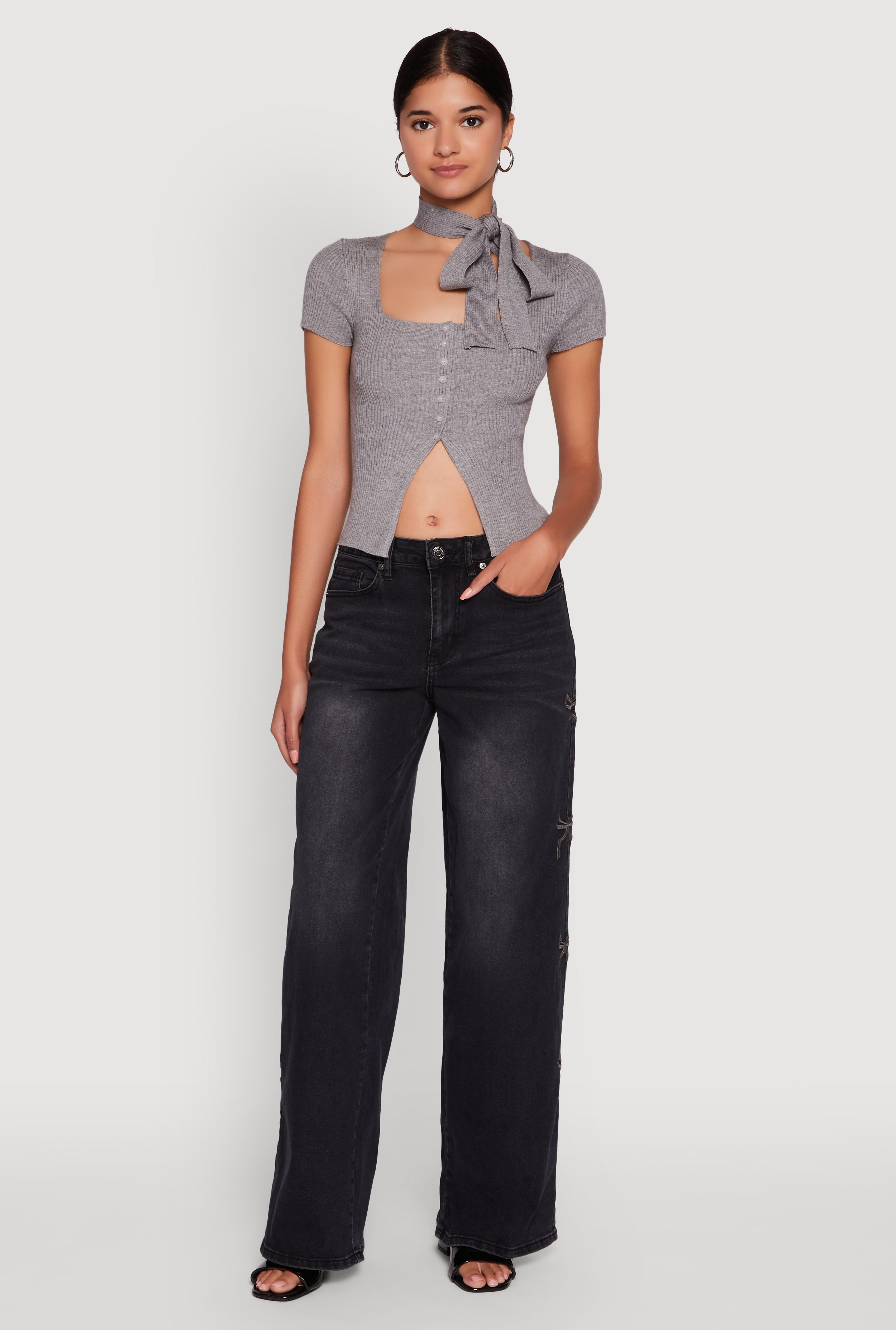 Mineral Wash Embroidered Bow Side Jeans