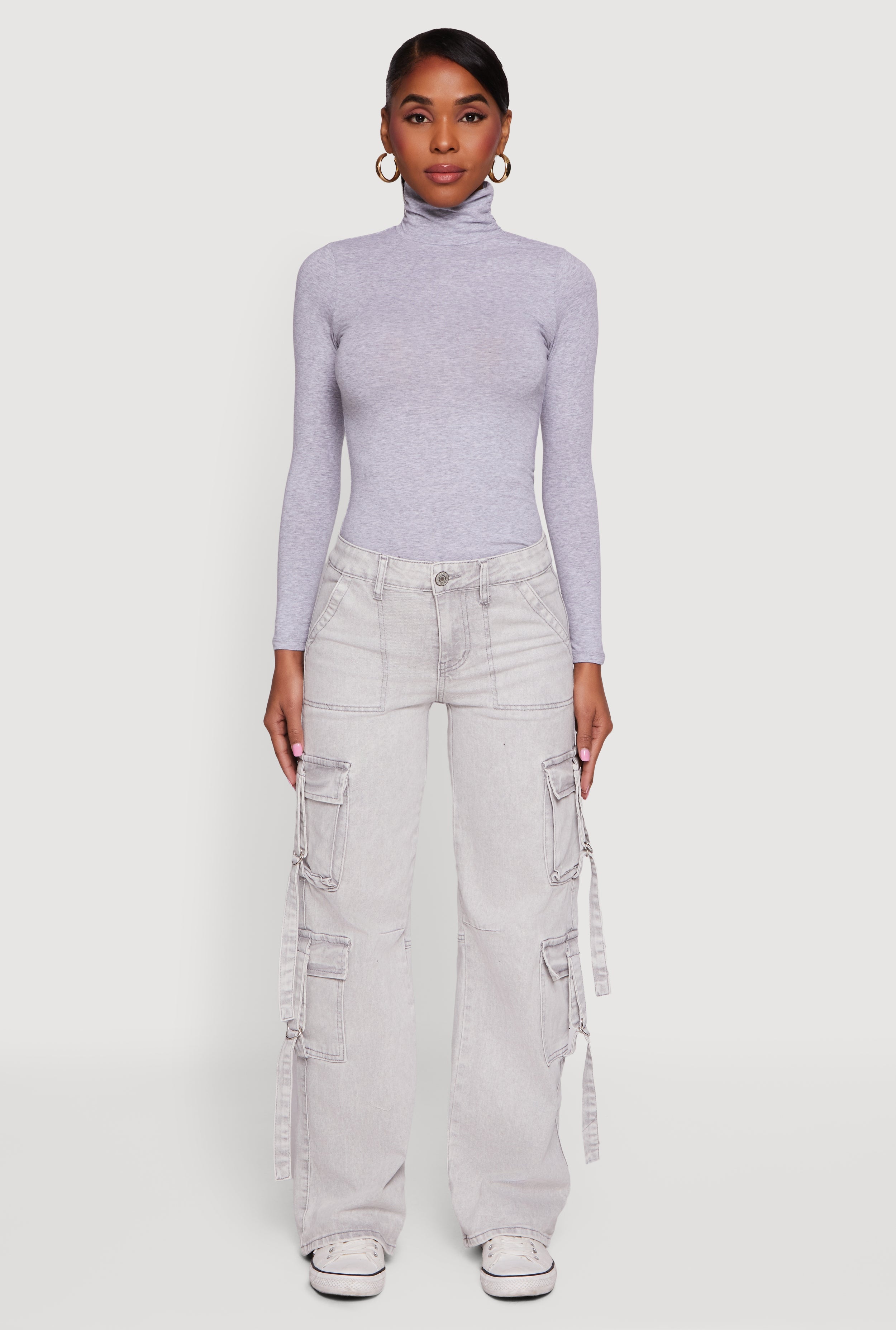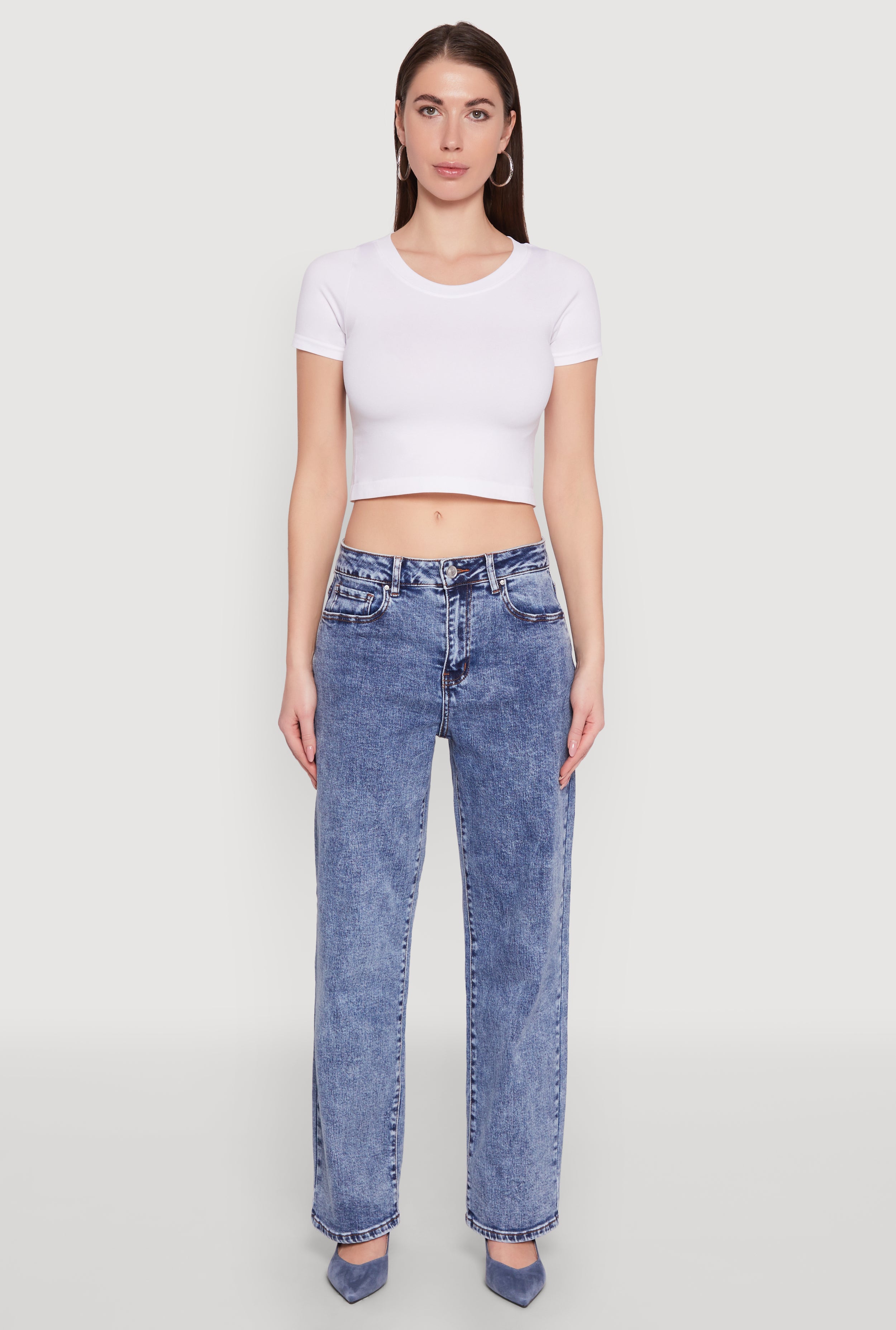 Acid Wash Straight Leg Utility Jeans