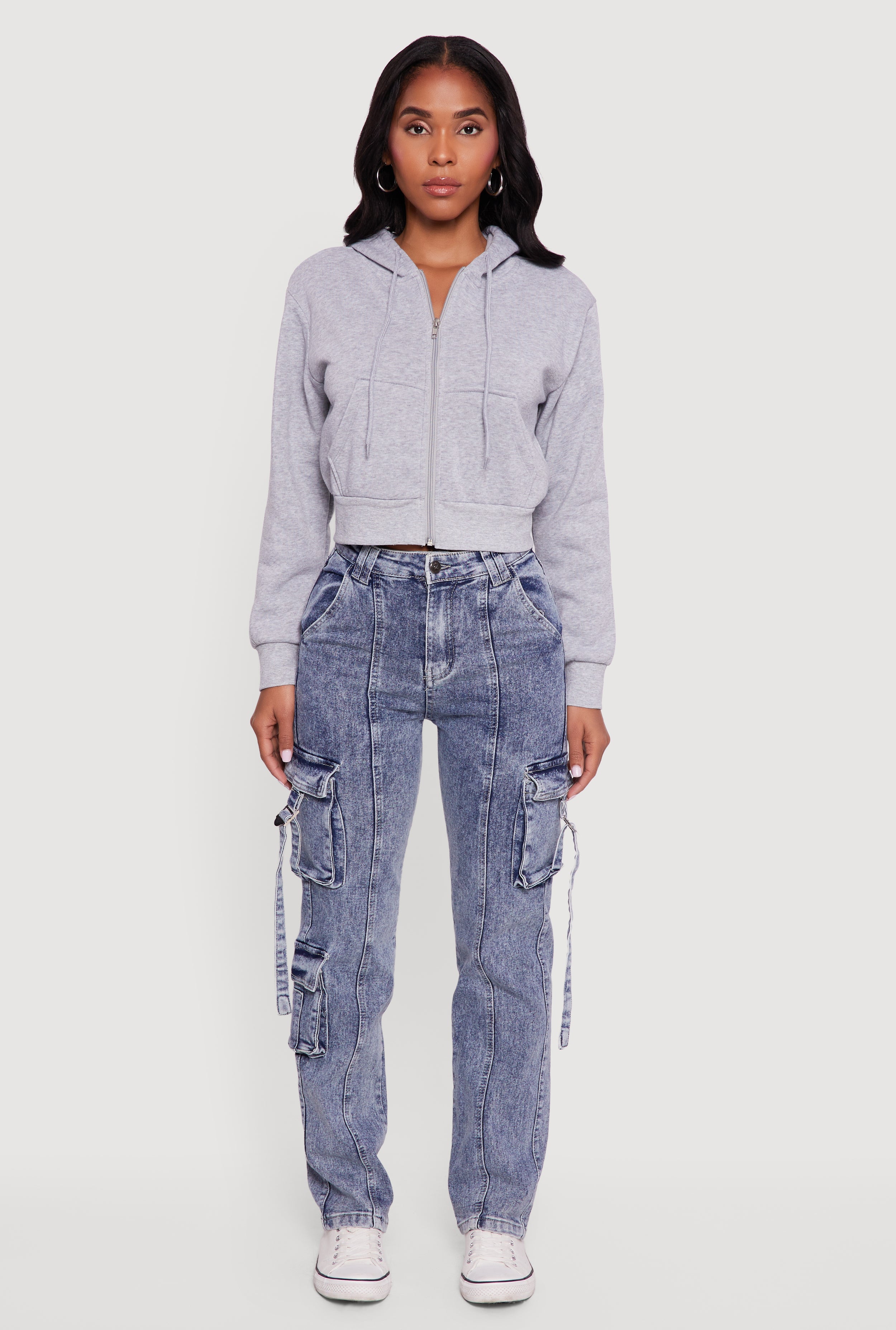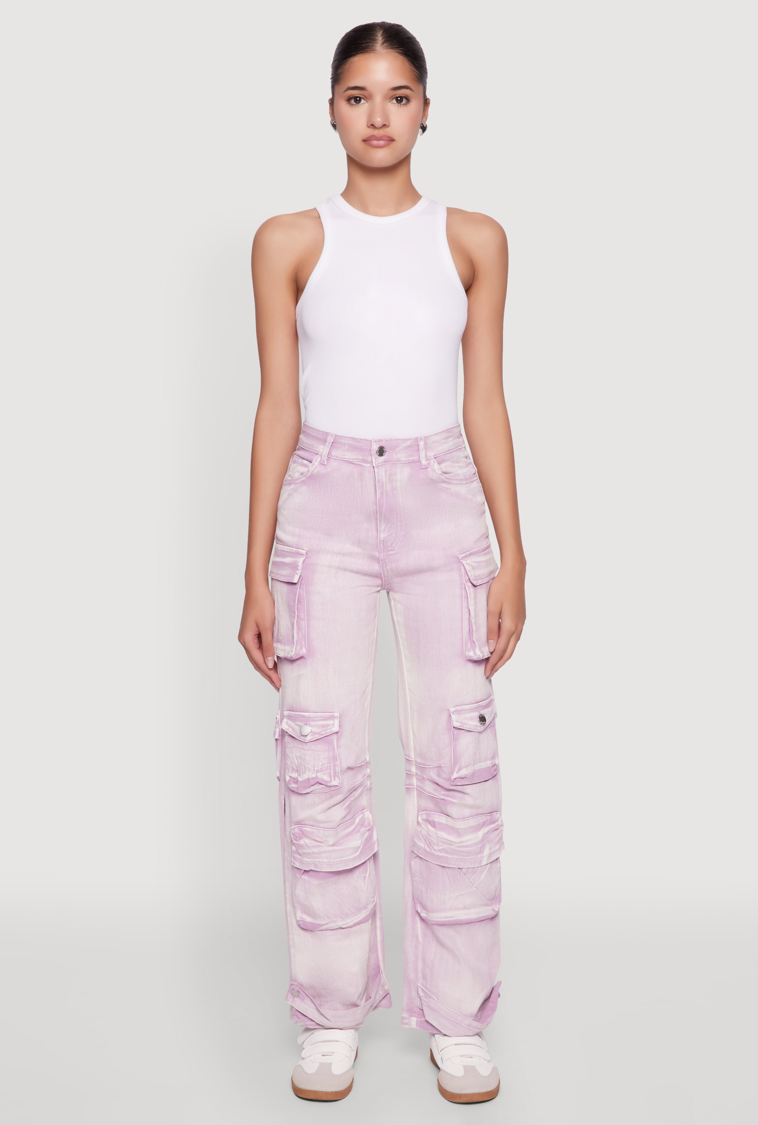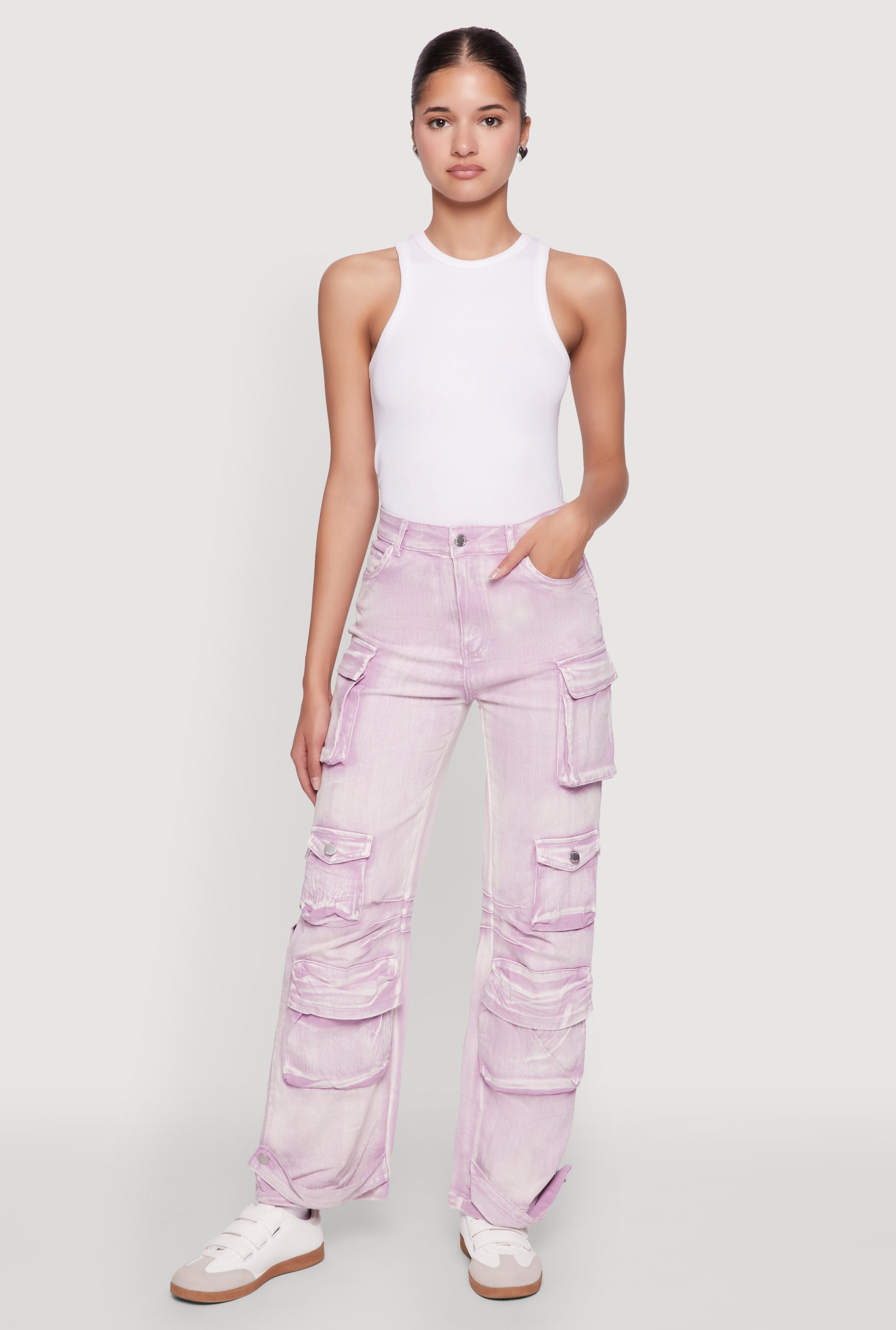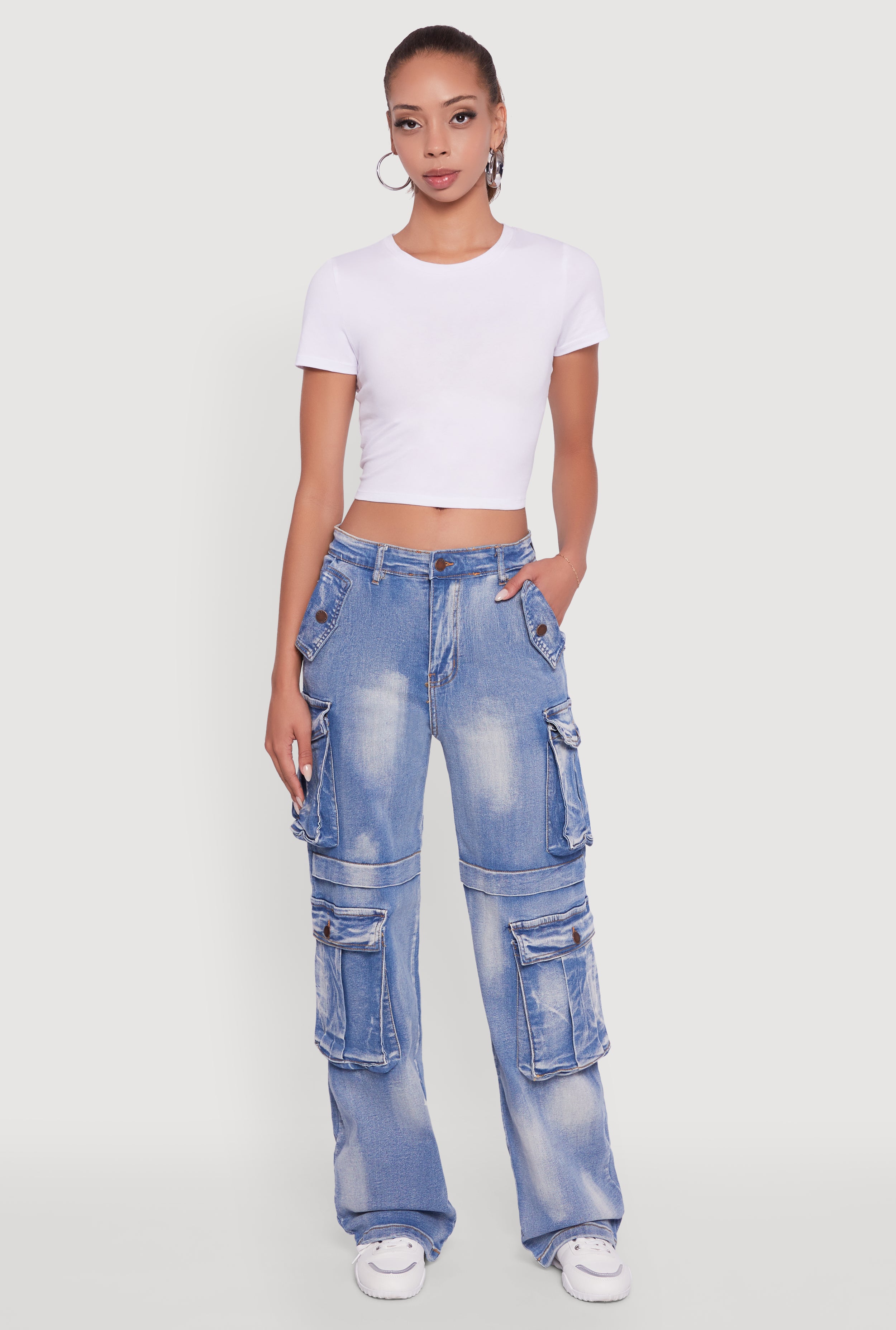 Acid Wash Cargo Pocket Straight Leg Jeans