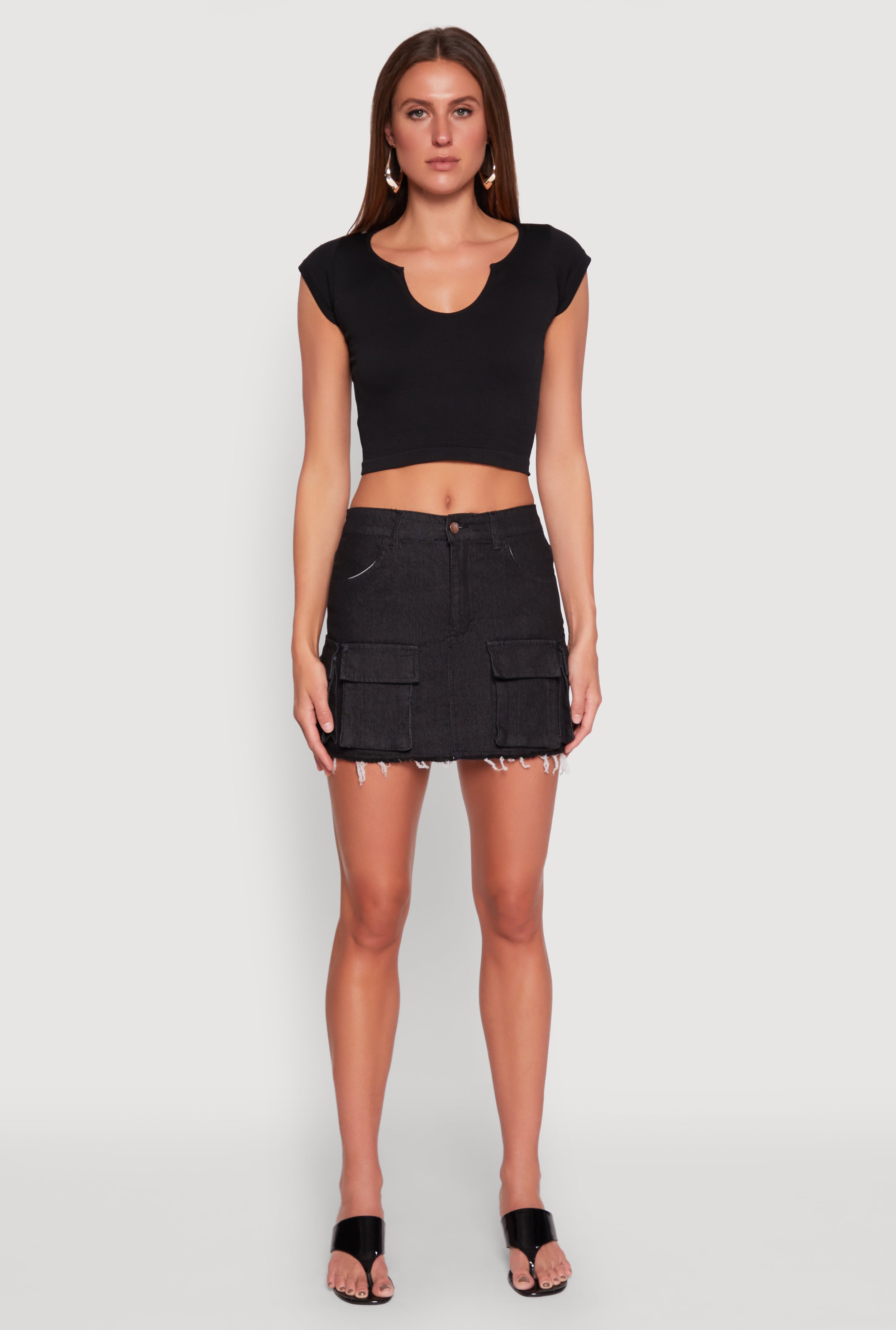 Daisy Frayed Hem Denim Cargo Skirt