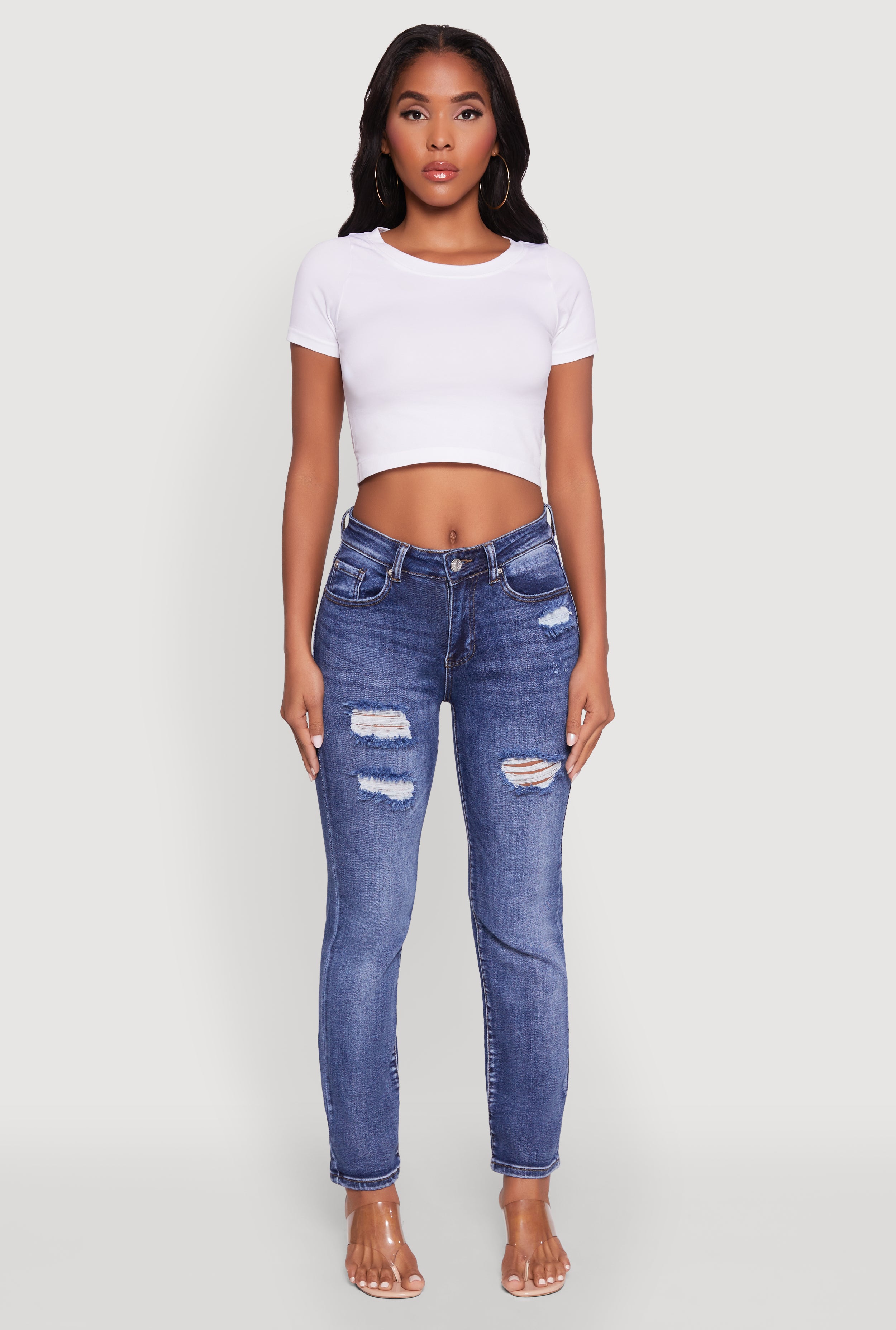 WAX Crinkle Hem Whiskered Skinny Jeans