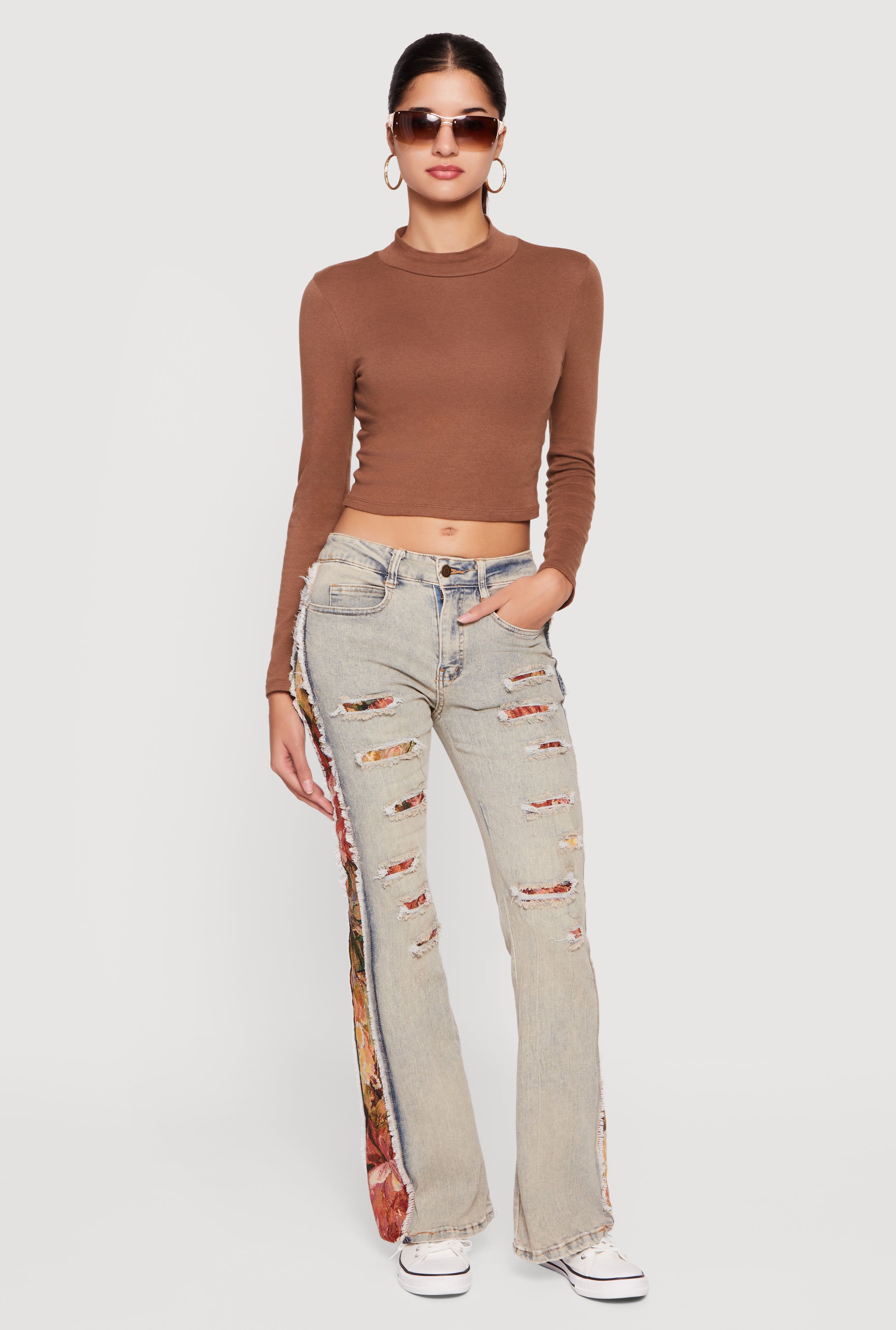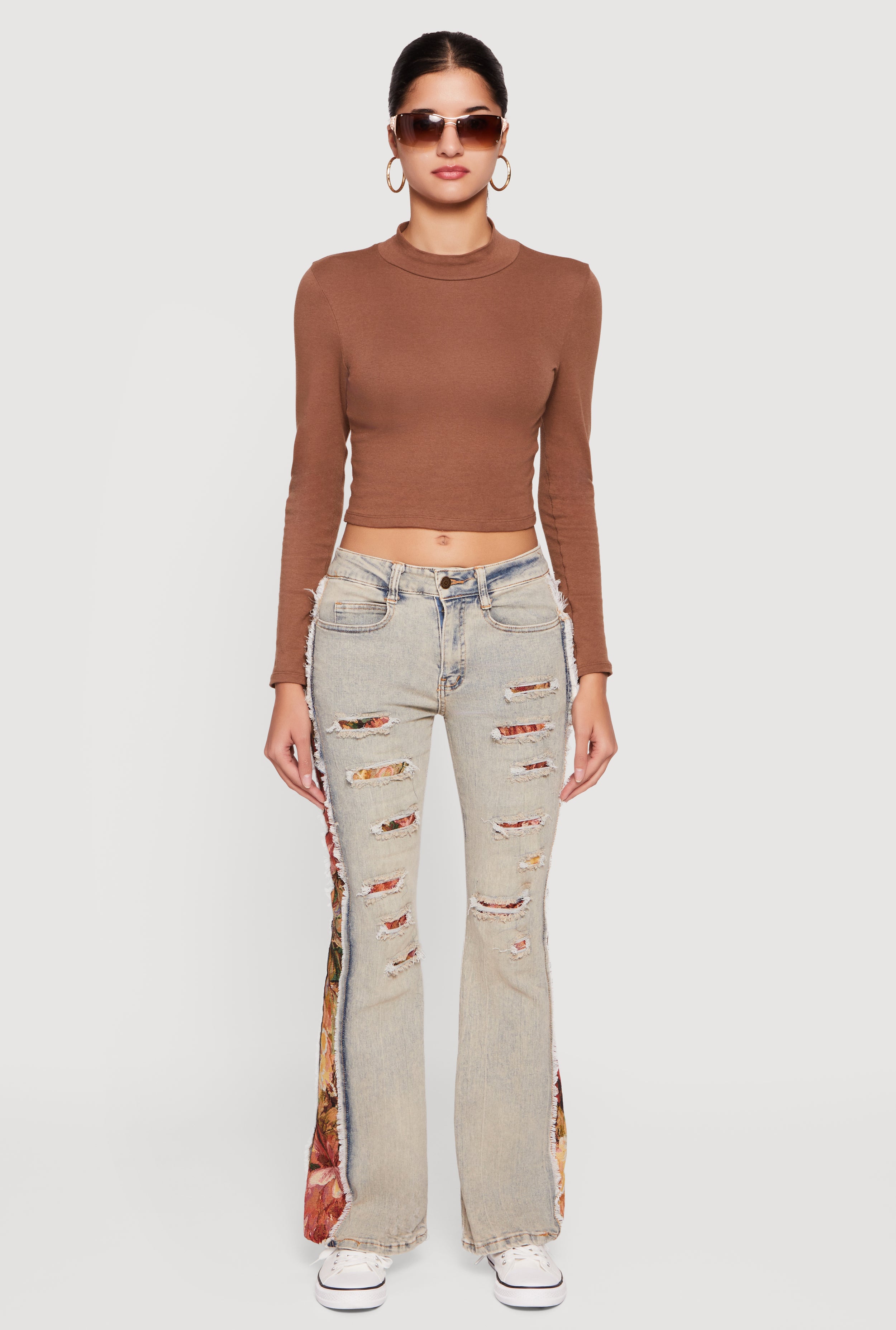 Tapestry Jacquard Patchwork Distressed Flare Jeans
