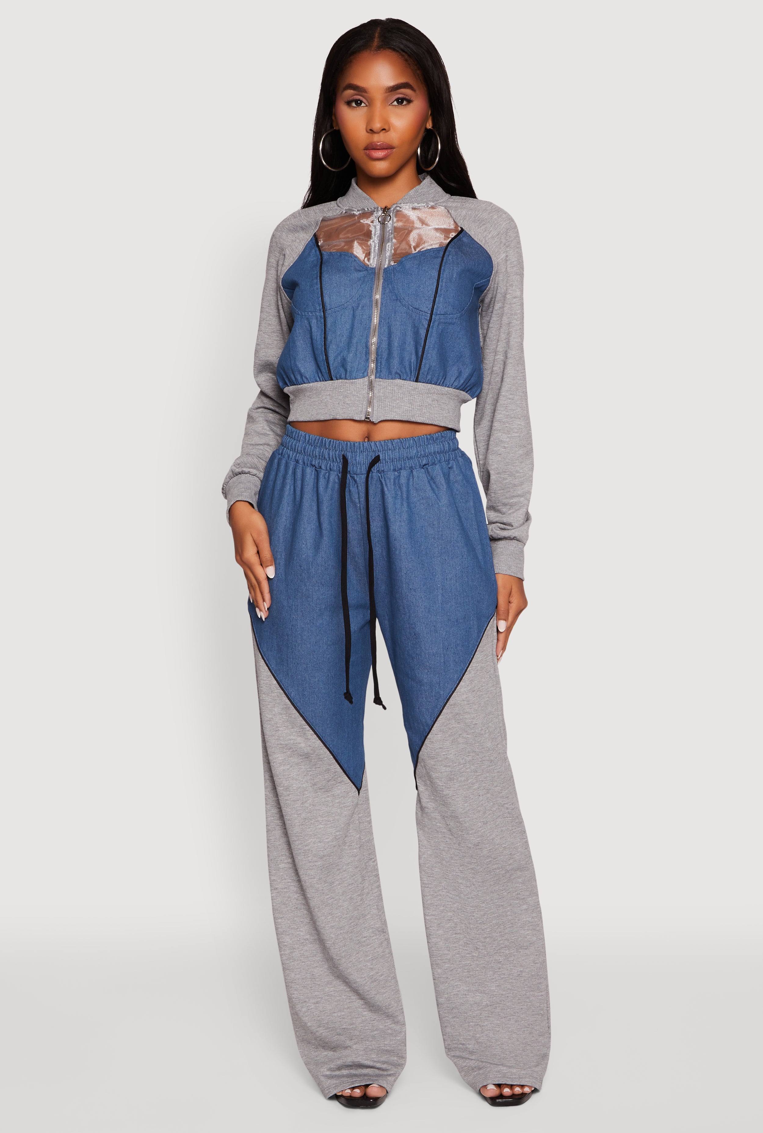 Color Block Sheer Insert Bustier Detail Bomber Jacket