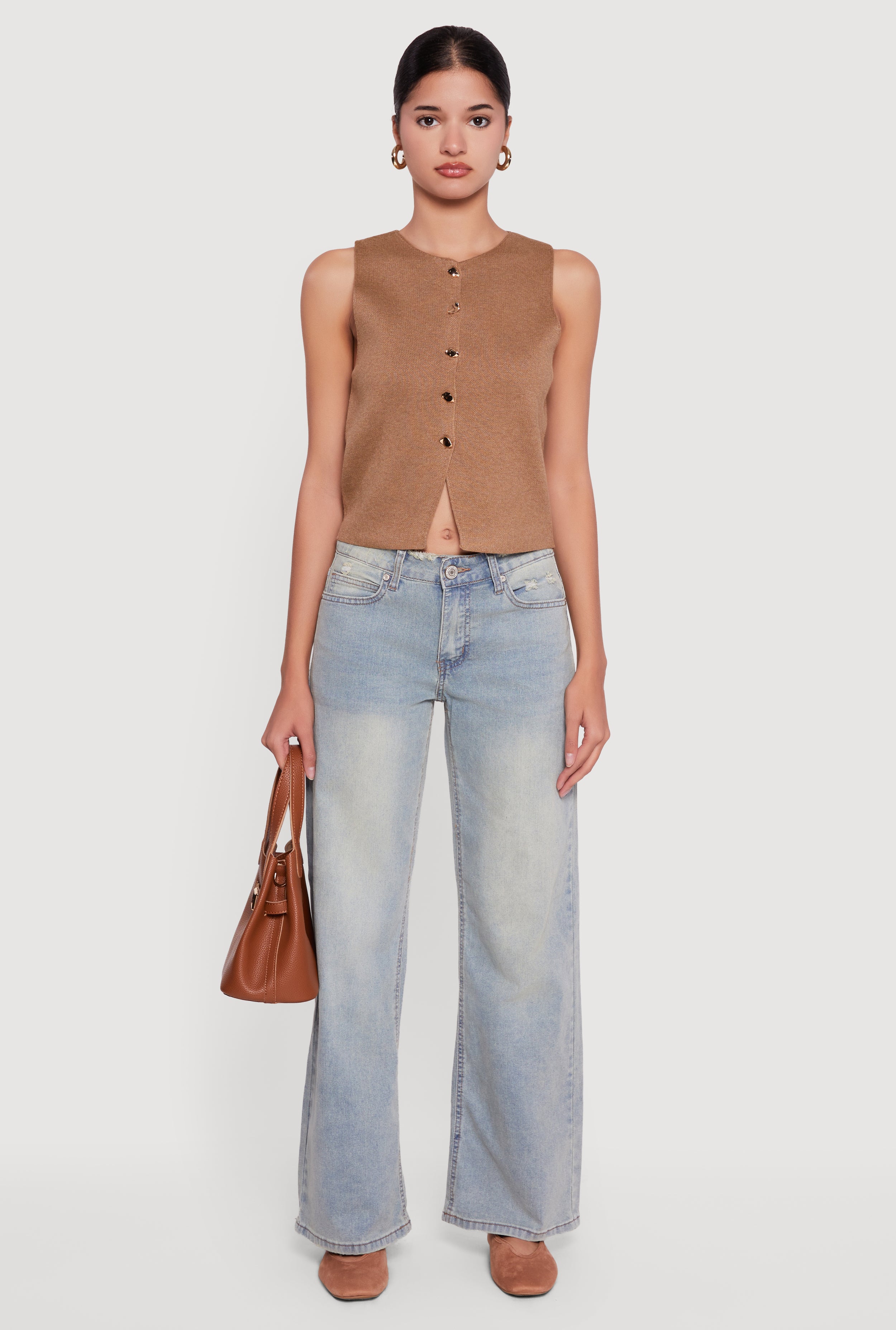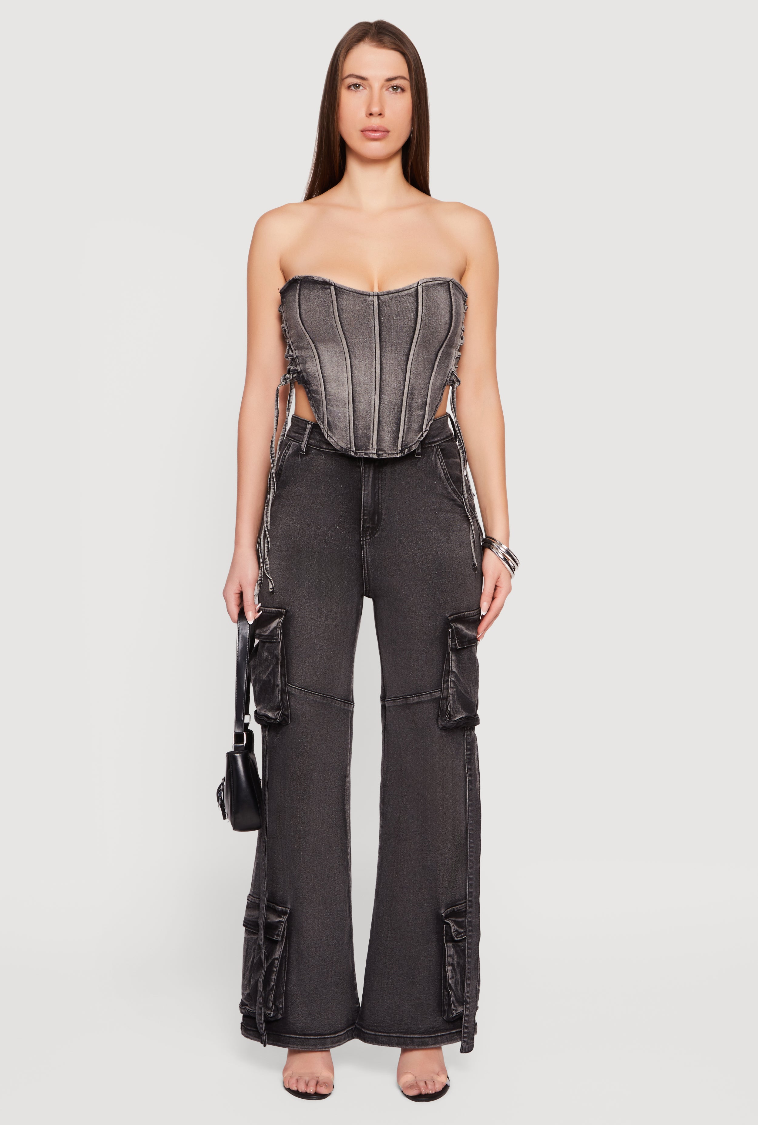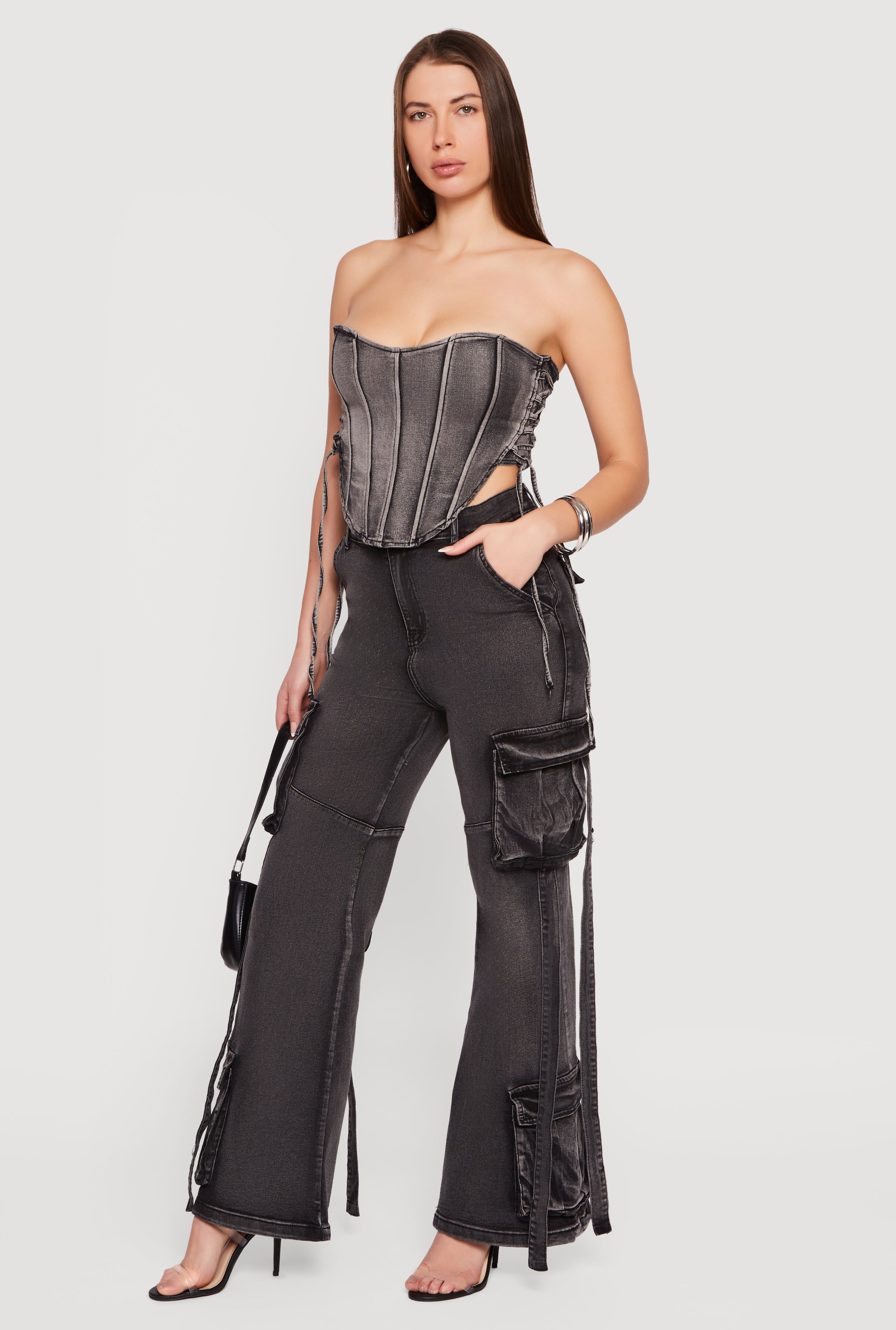 Open Side Tie Wide Leg Jeans