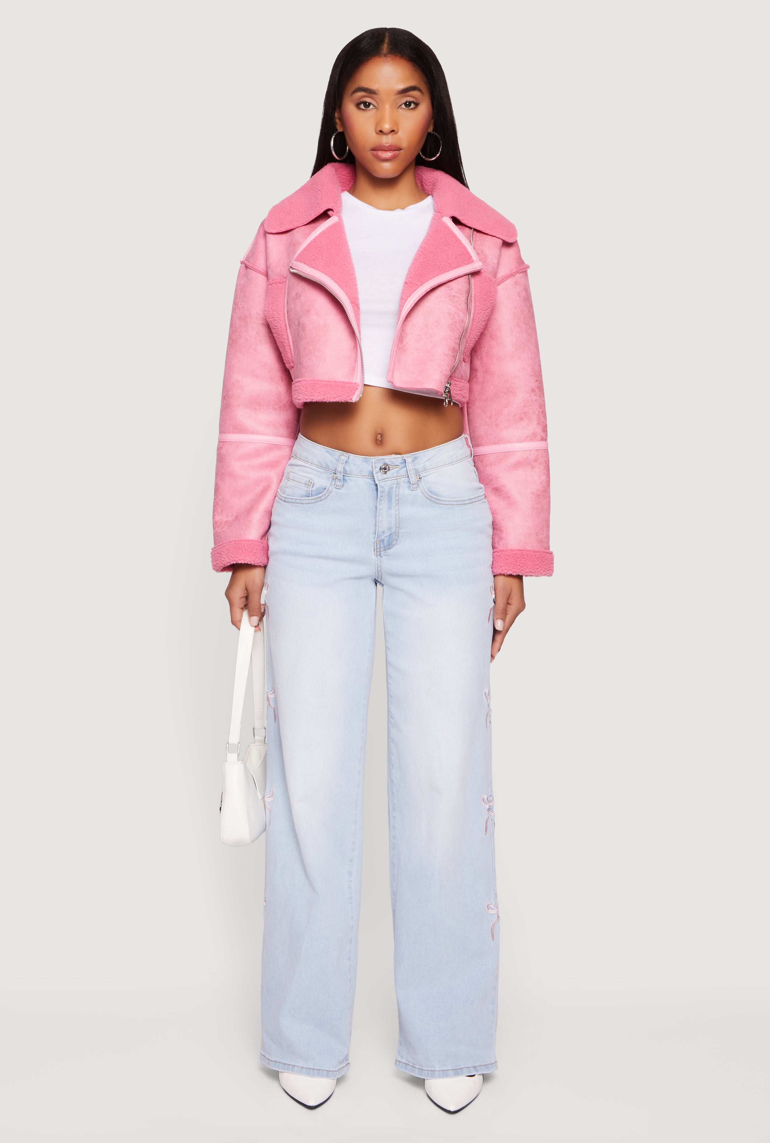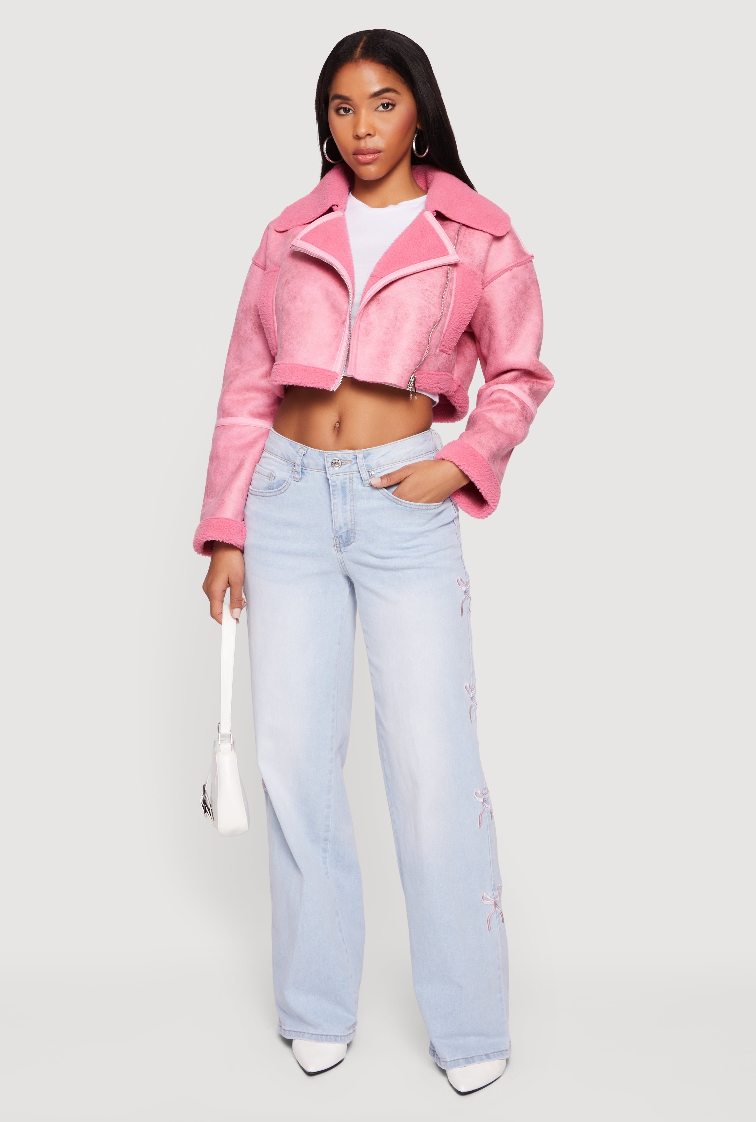 Mineral Wash Embroidered Bow Side Jeans