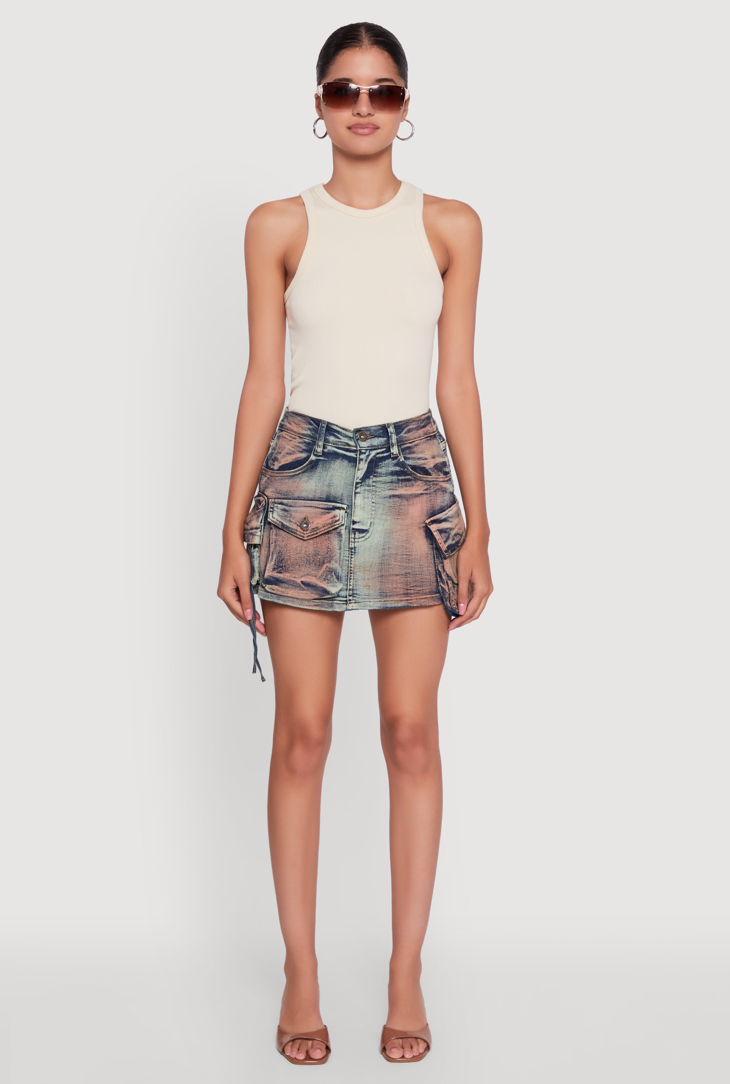 VIP Denim Acid Wash Mini Cargo Skirt