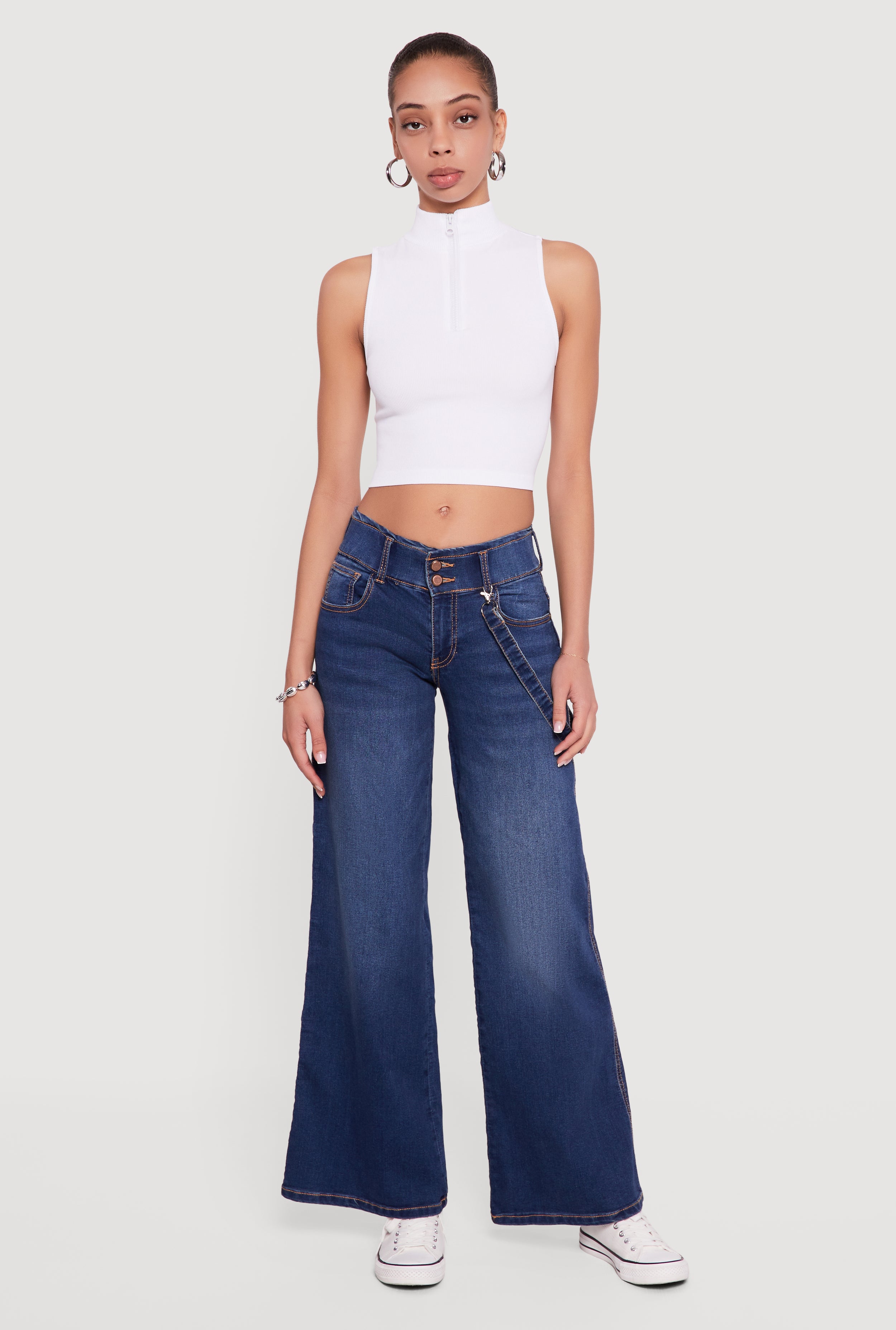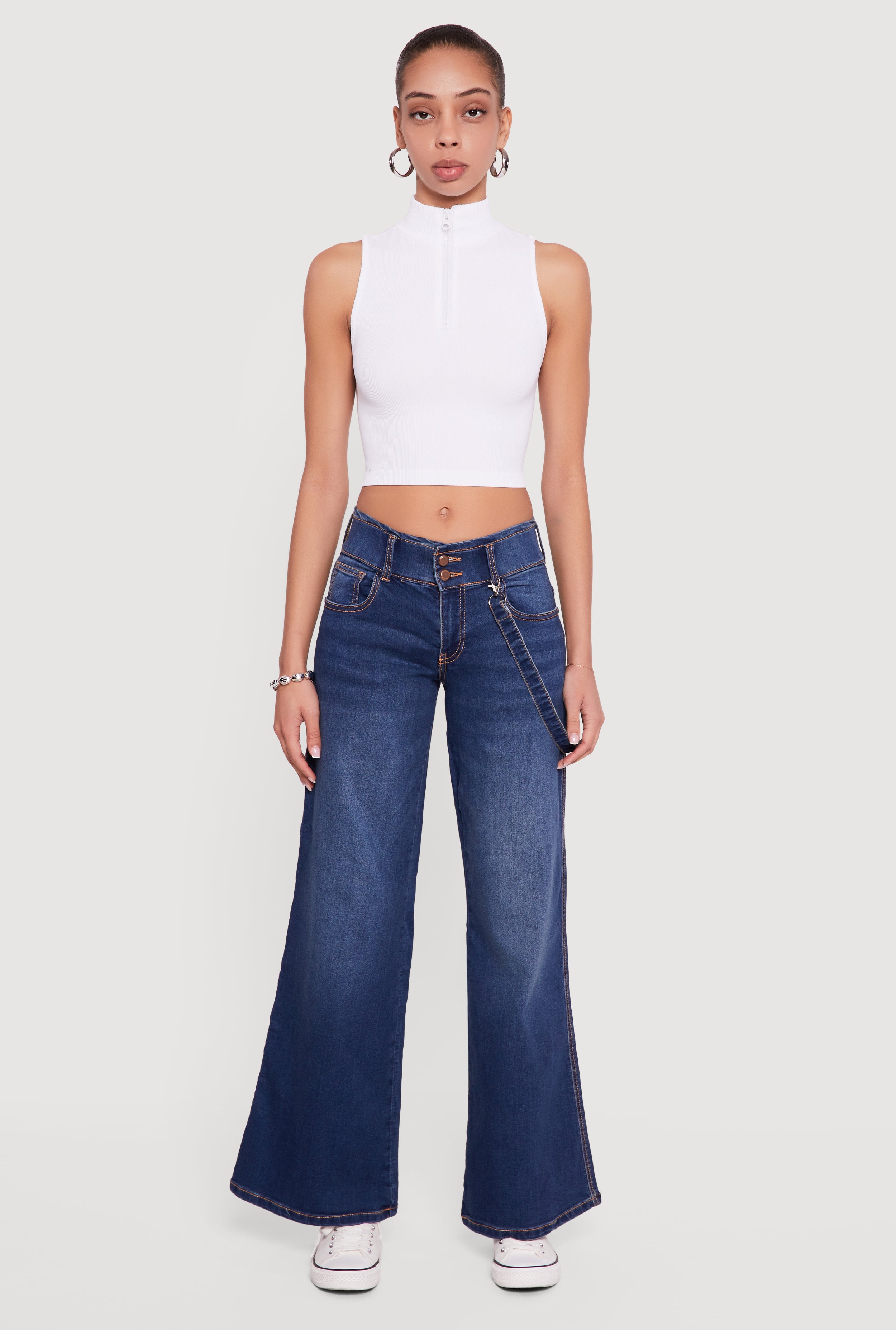 Strap Detail Flare Leg Jeans