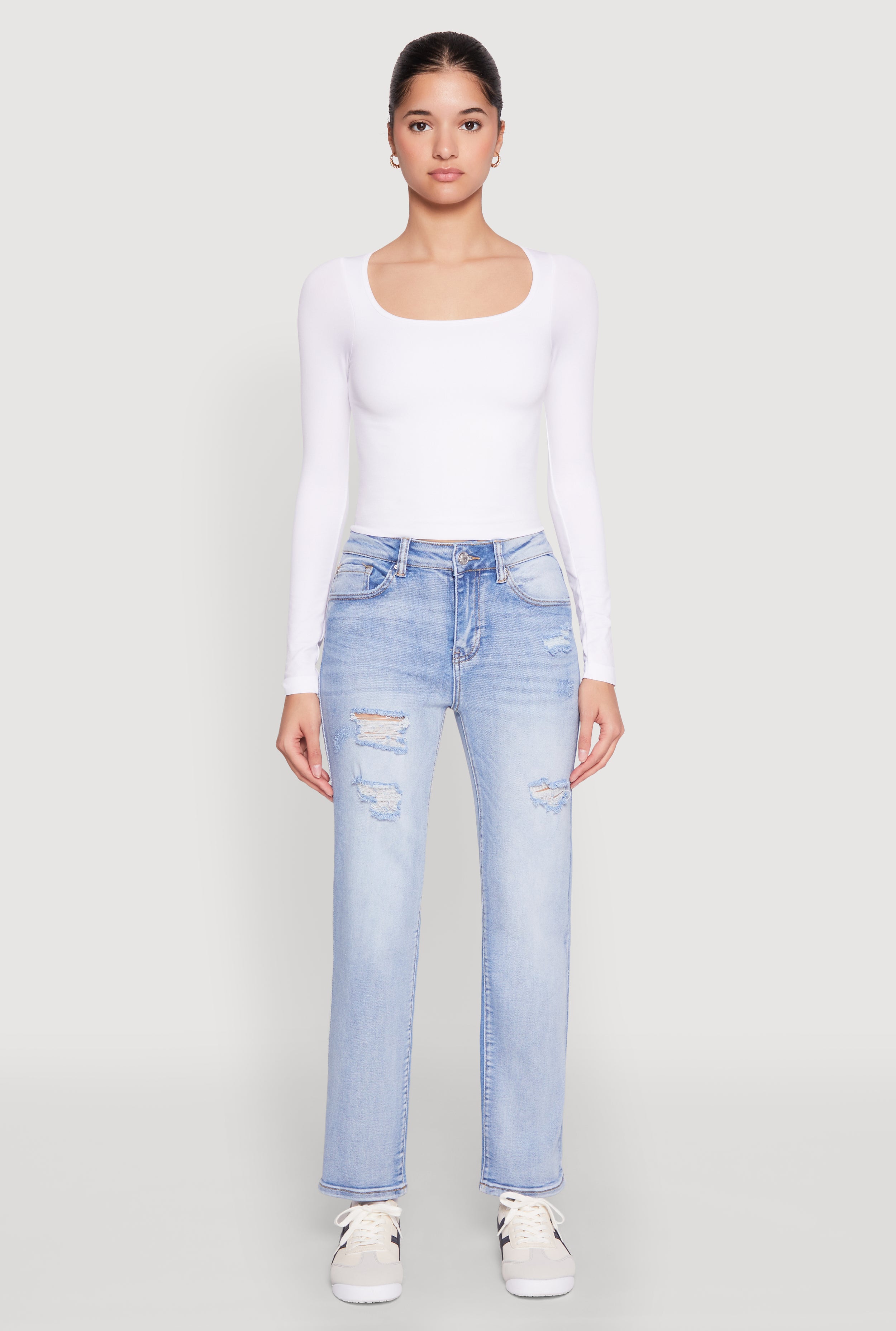 WAX Distressed Straight Leg Jeans