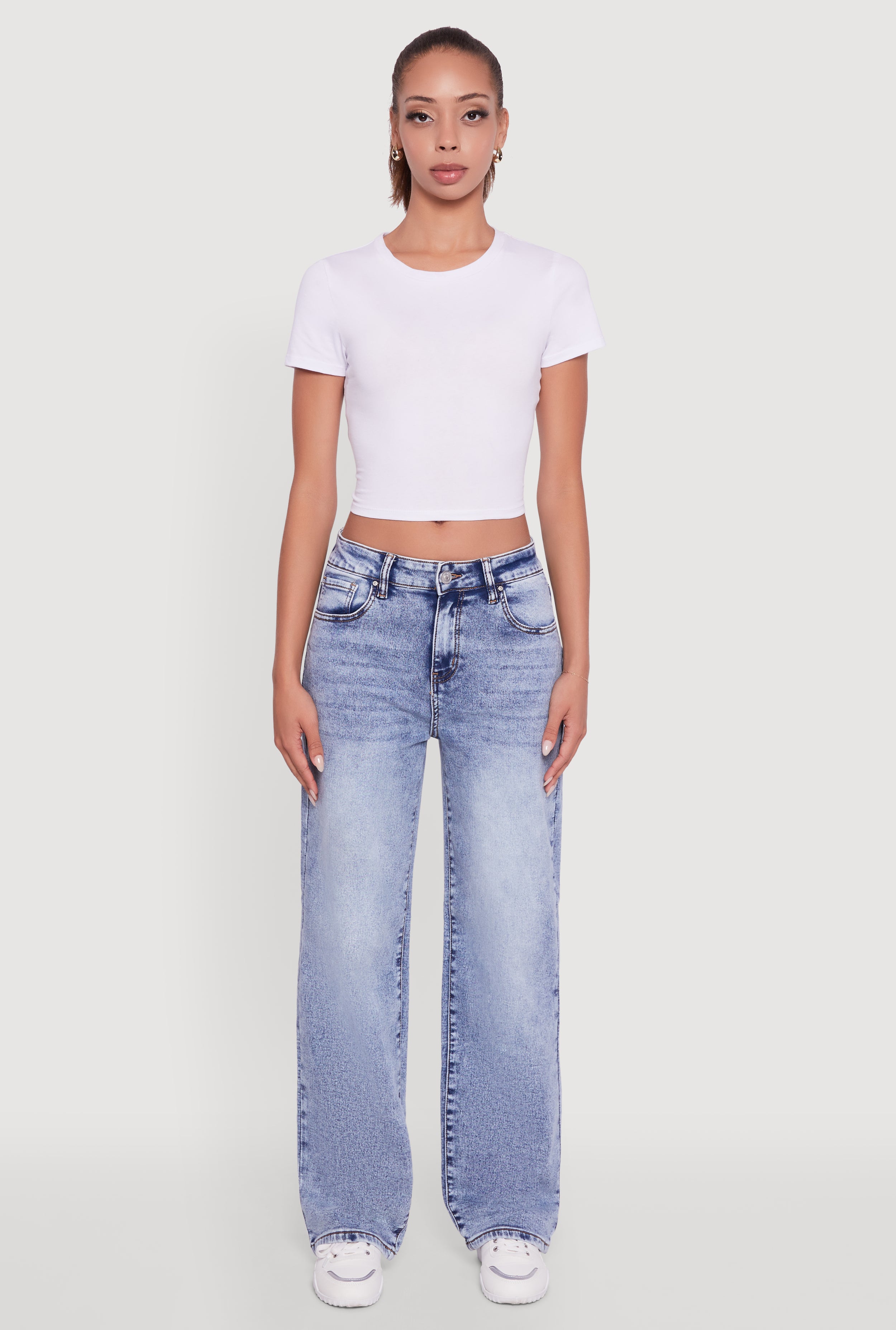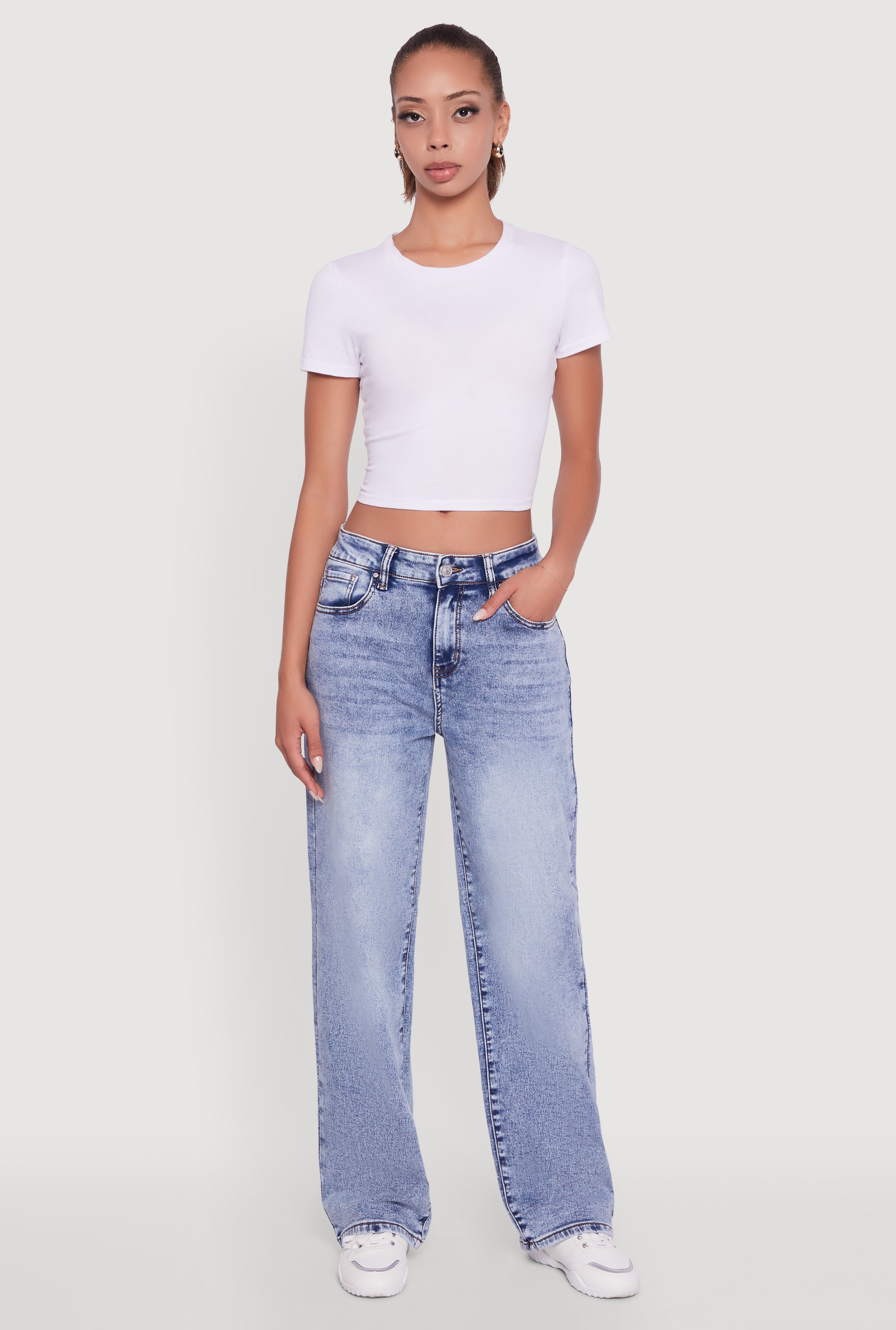 High Waisted Straight Leg Acid Wash Jeans