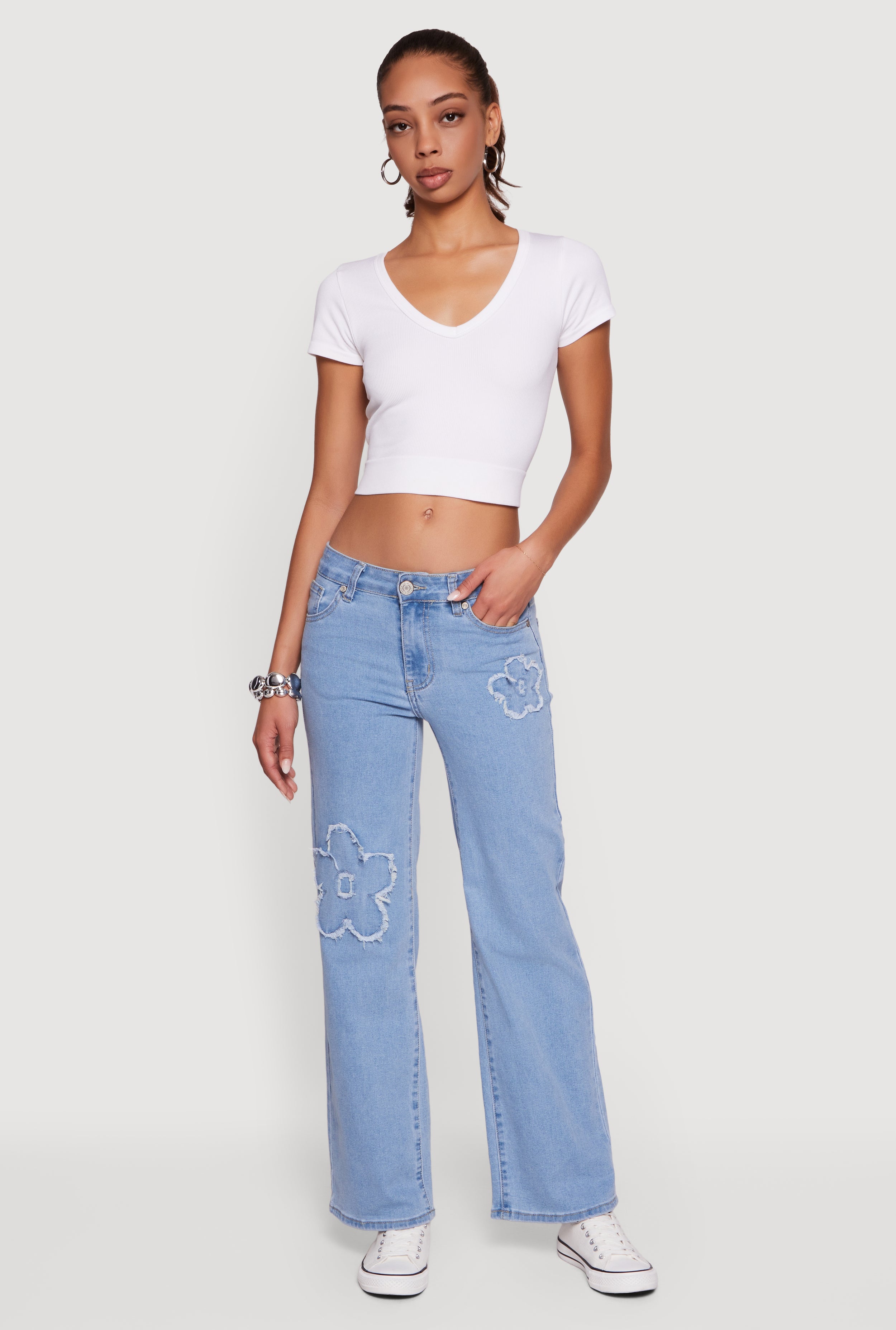 Almost Famous Wide Leg Jeans with Cherry Embroidery