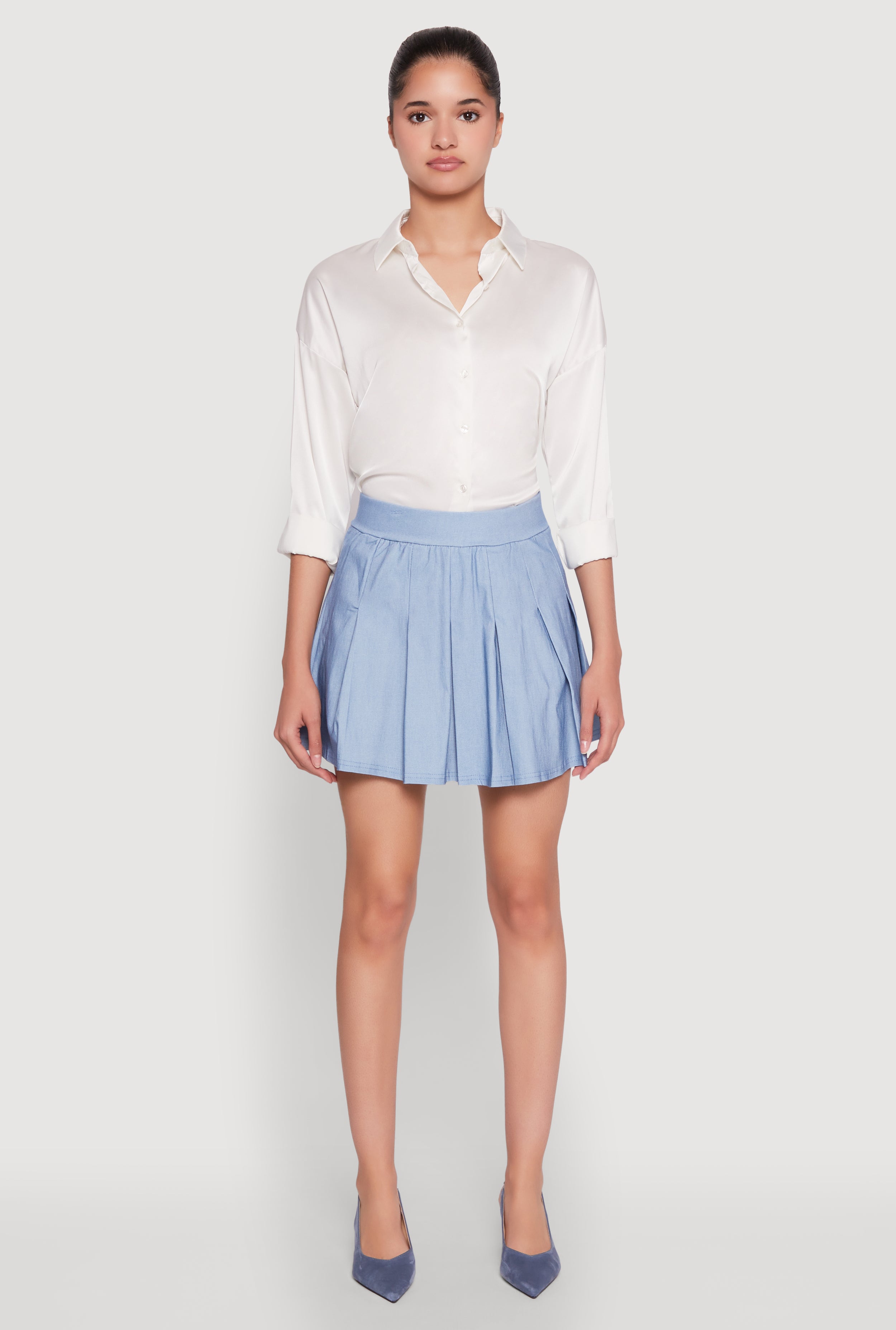 Chambray High Waisted Pleated Skirt
