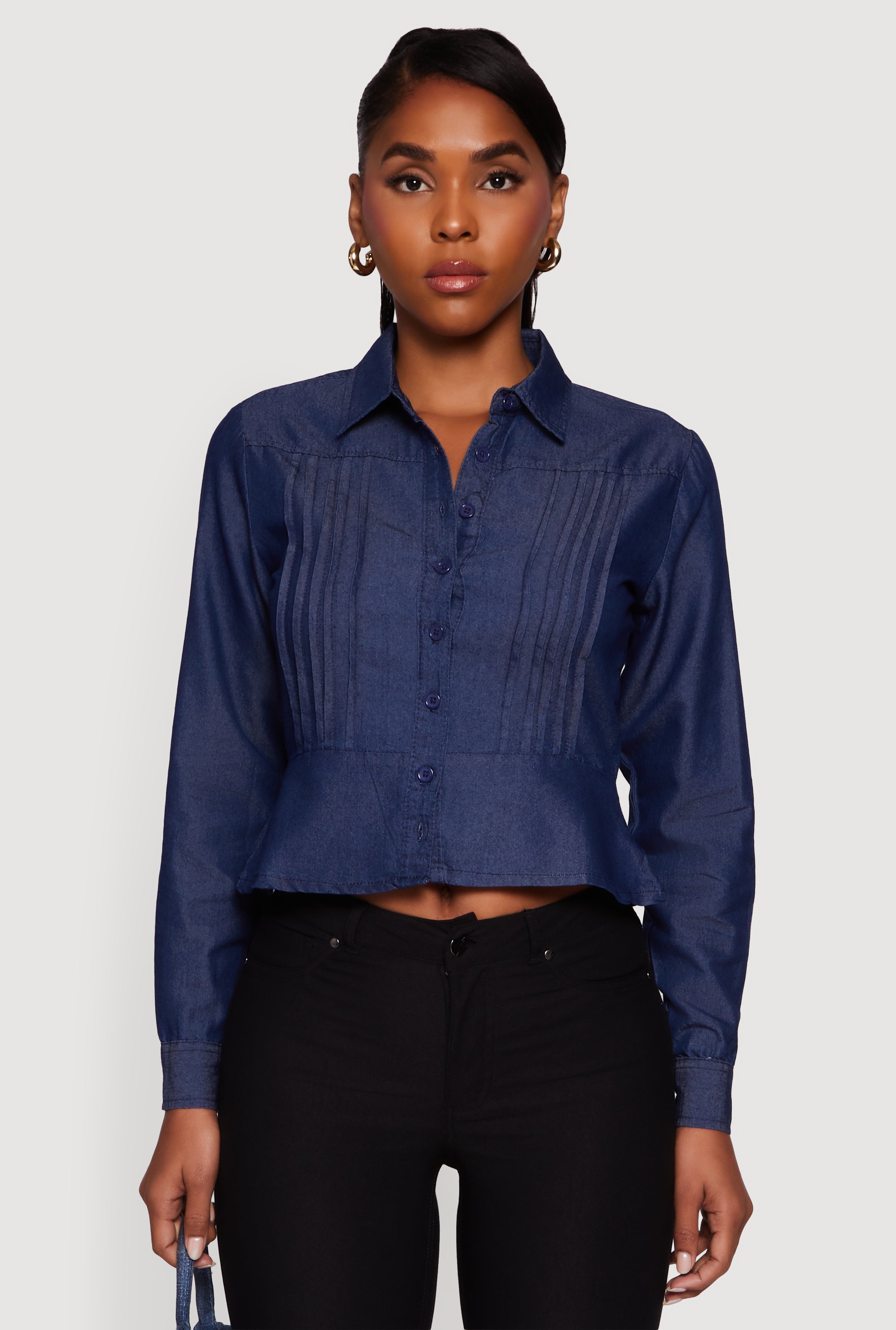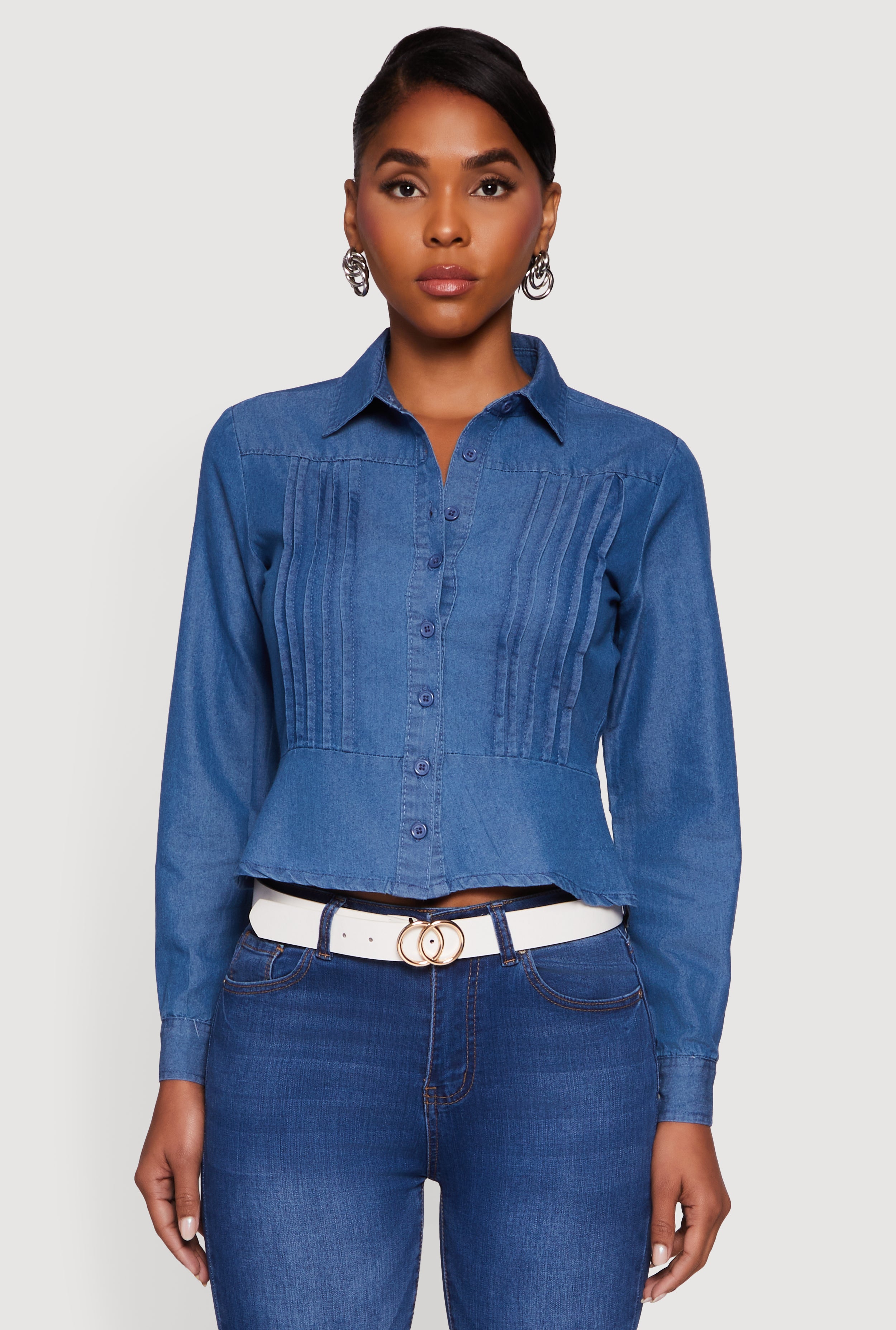 Chambray Peplum Button Front Shirt