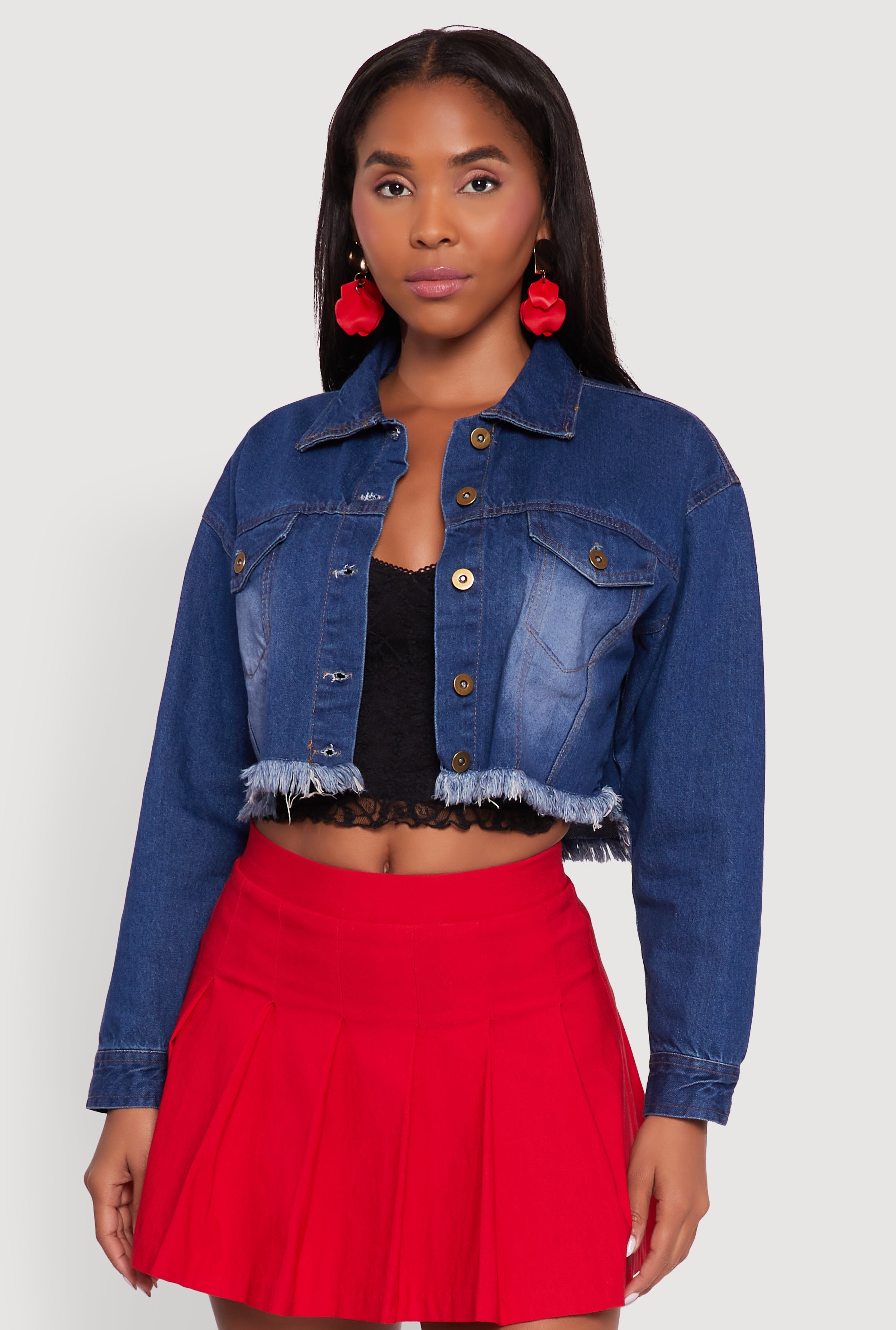 XO Back Graphic Frayed Hem Cropped Denim Jacket