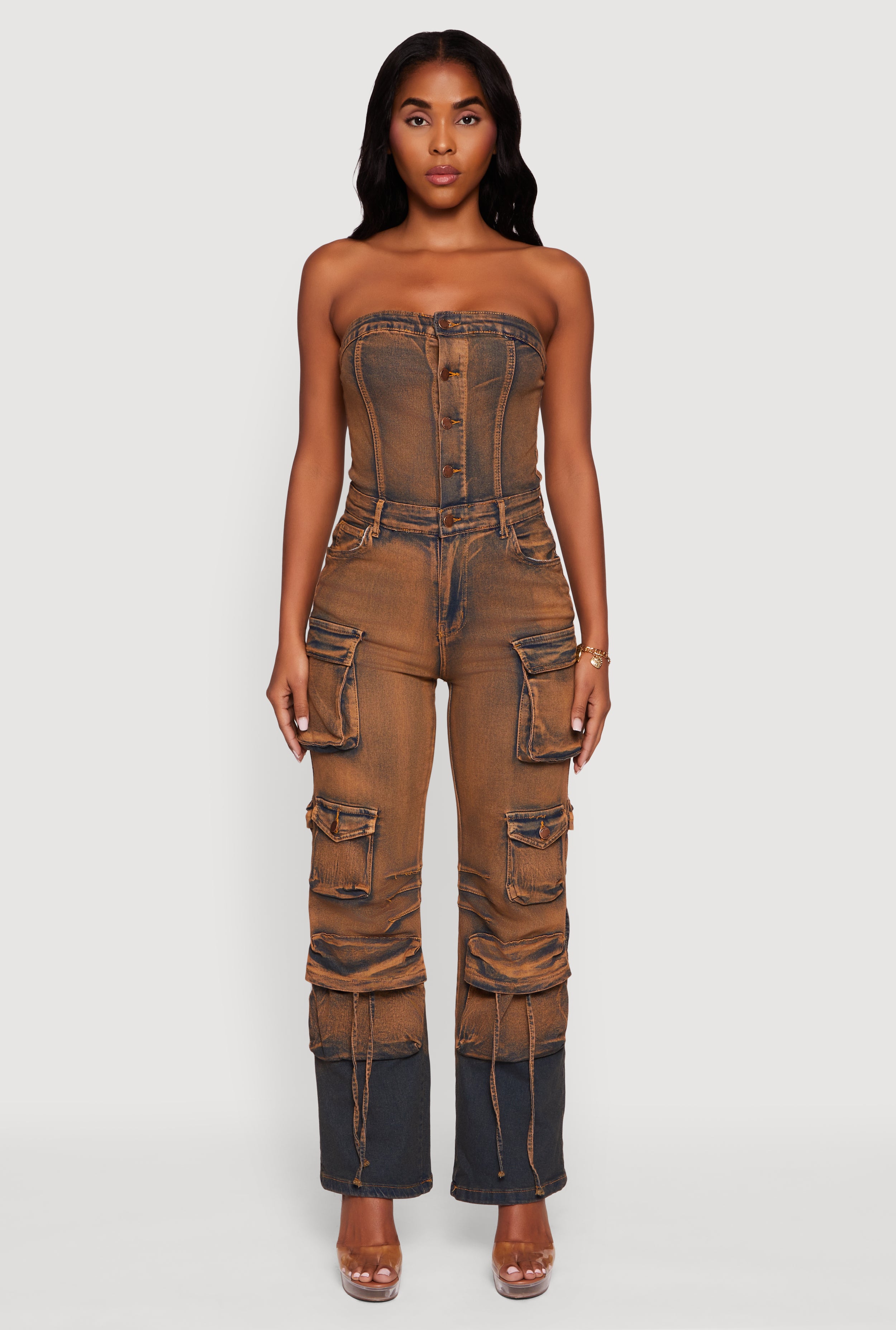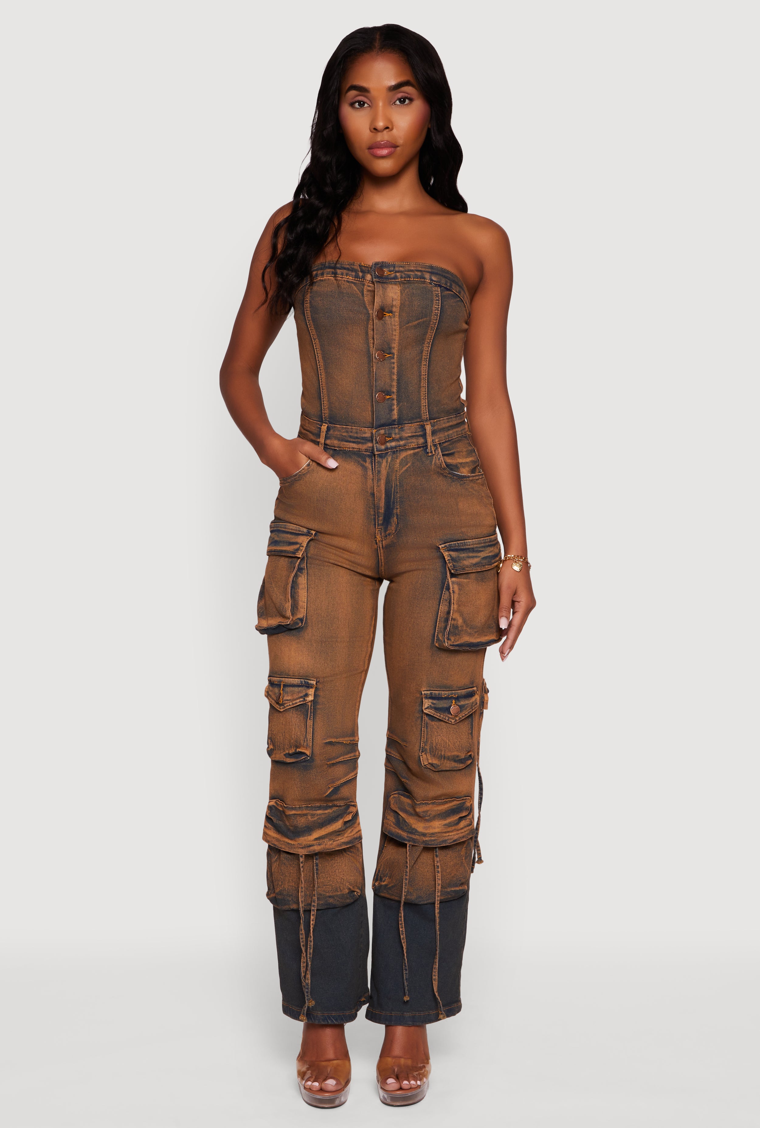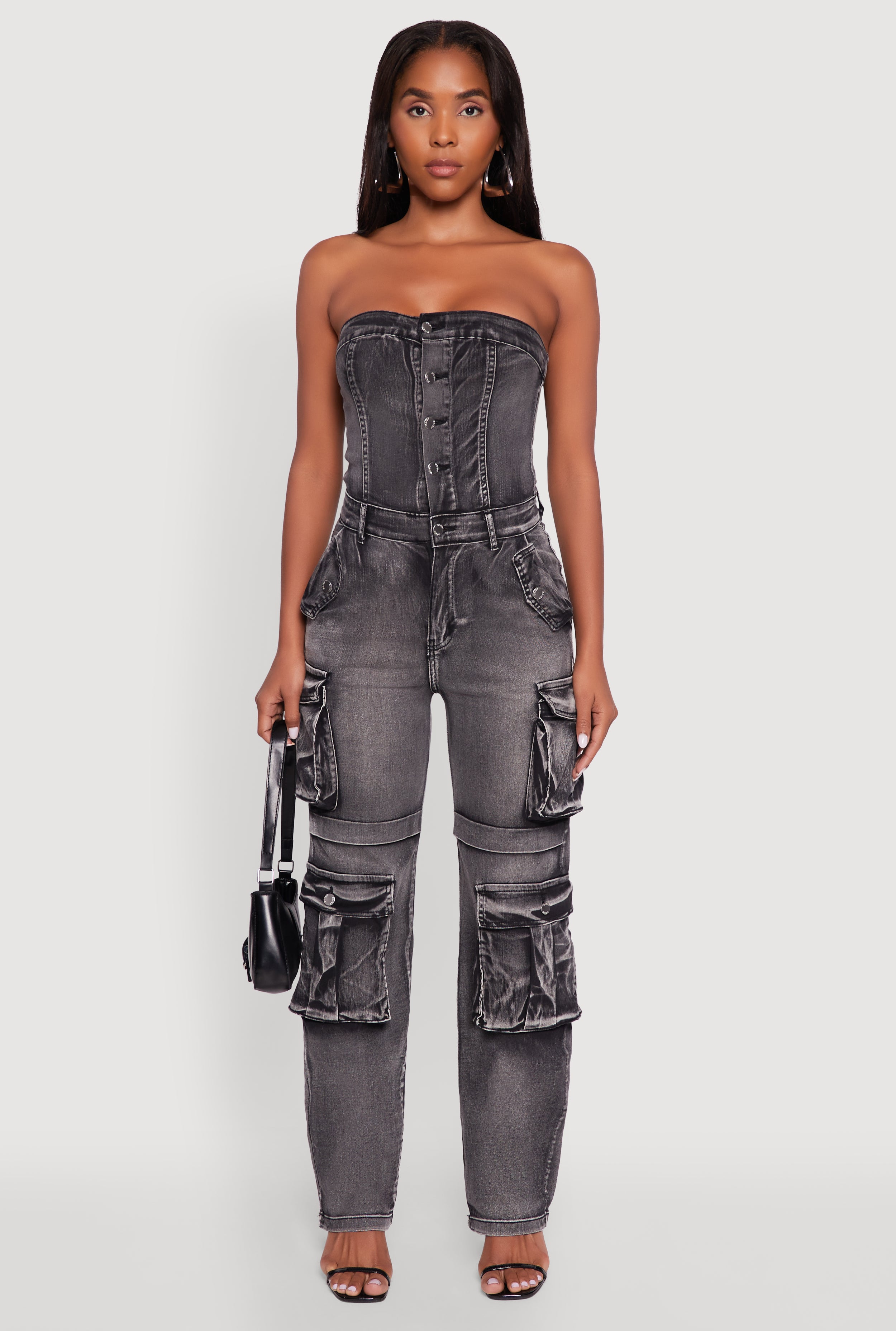 Denim Button Front Utility Jumpsuit