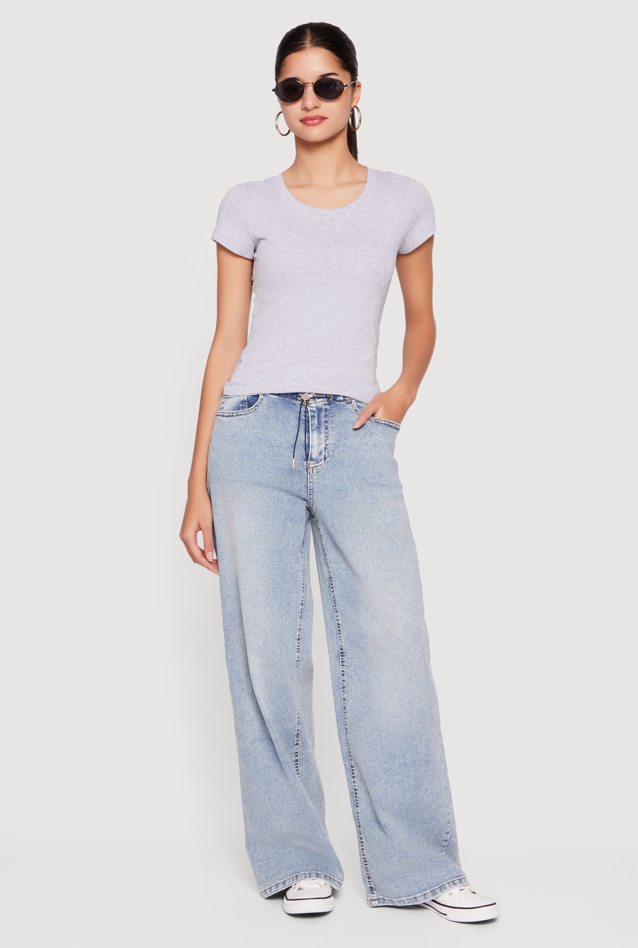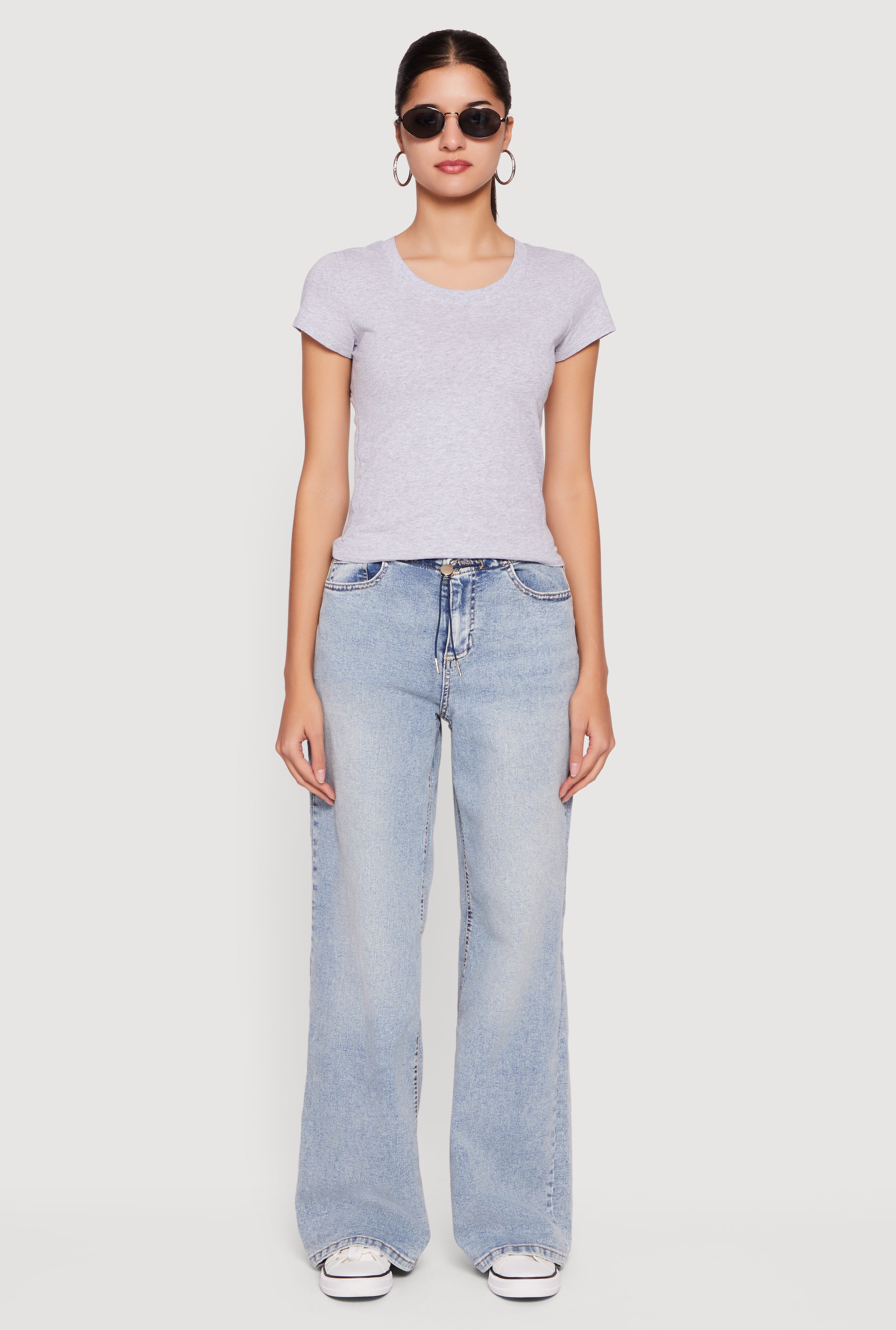 Almost Famous Mineral Wash Drawstring Waist Wide Leg Jeans