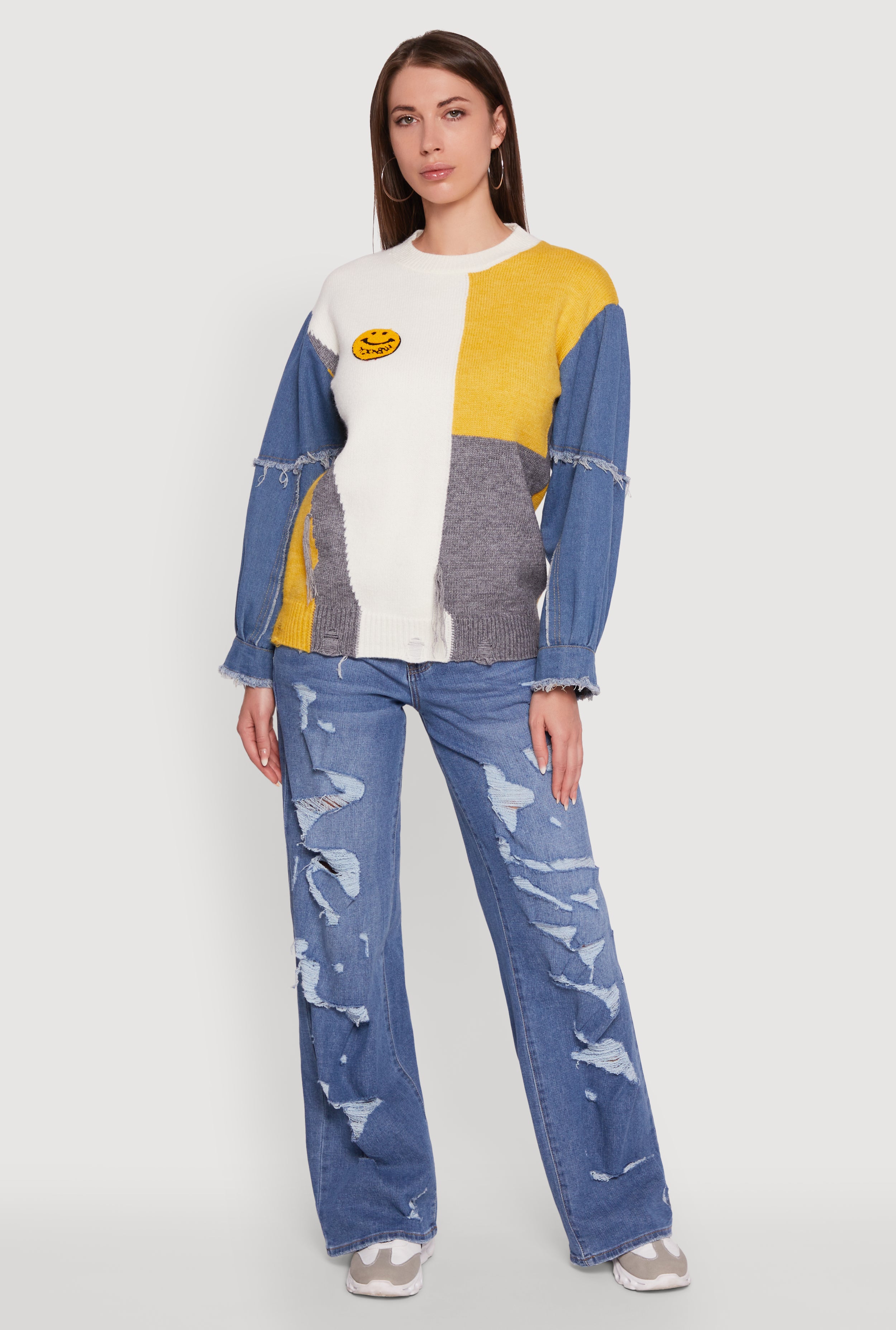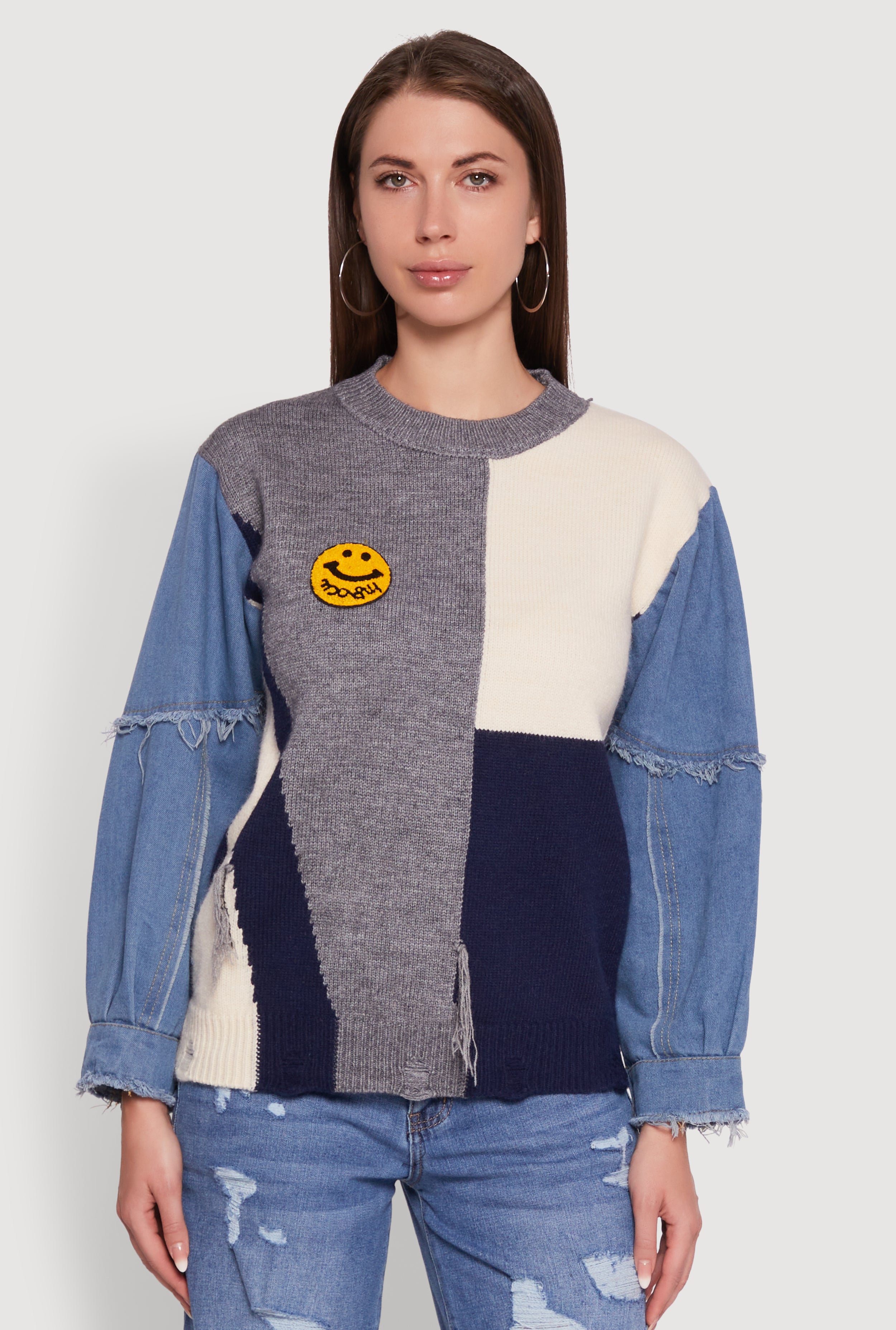 Daisy Color Blocked Denim Sleeve Sweater