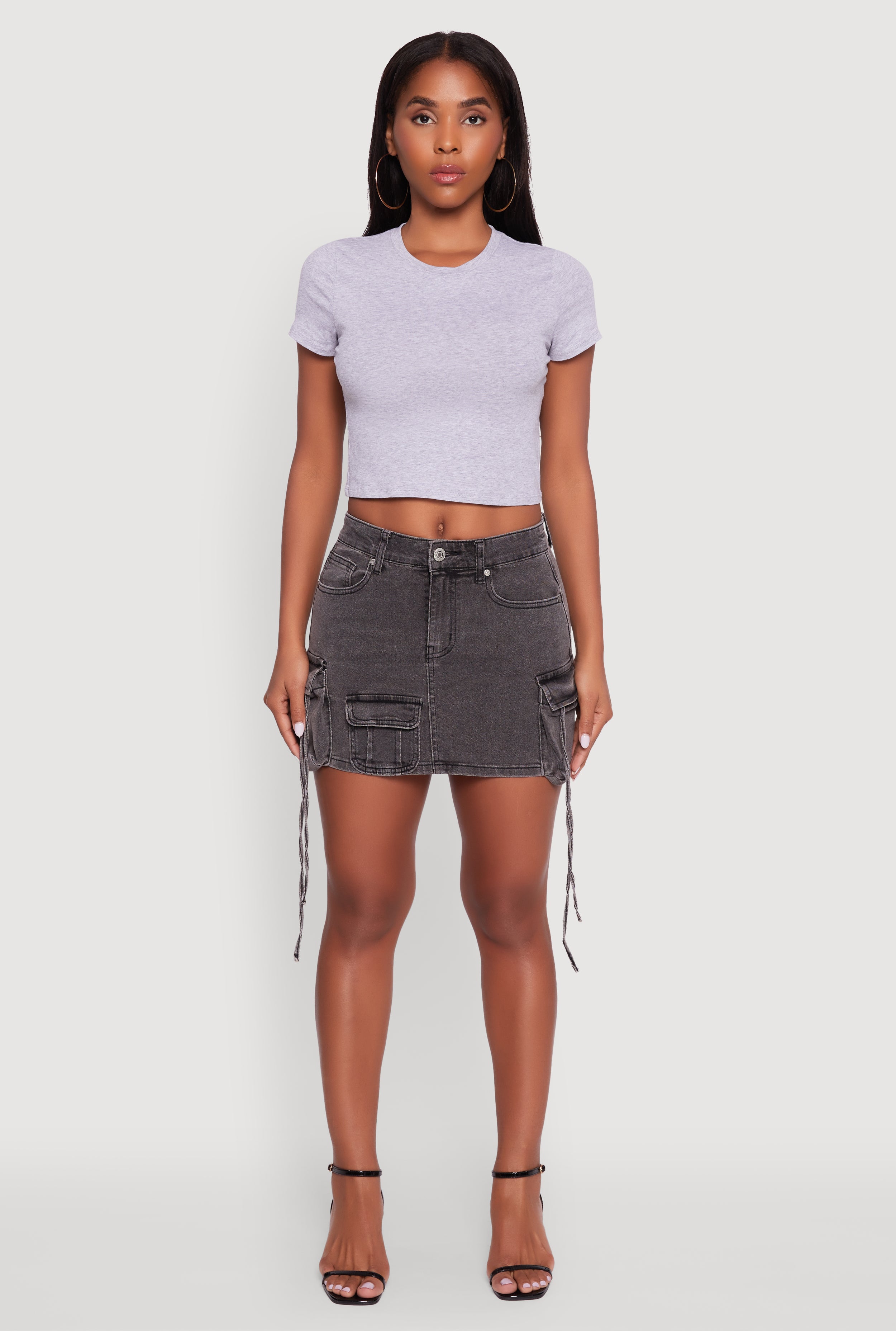 Trendy Mid Rise Mini Denim Skirt with Cargo Pockets
