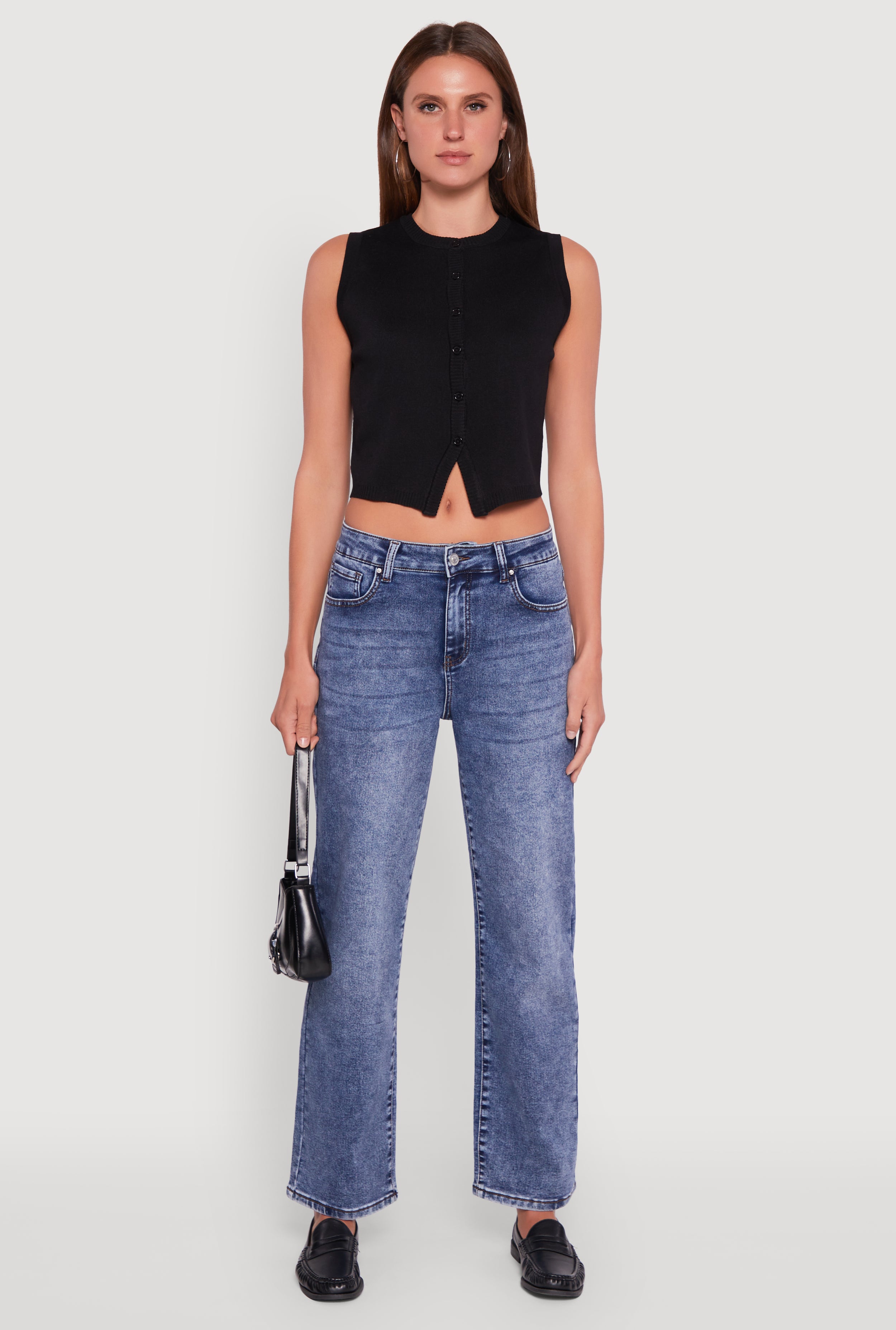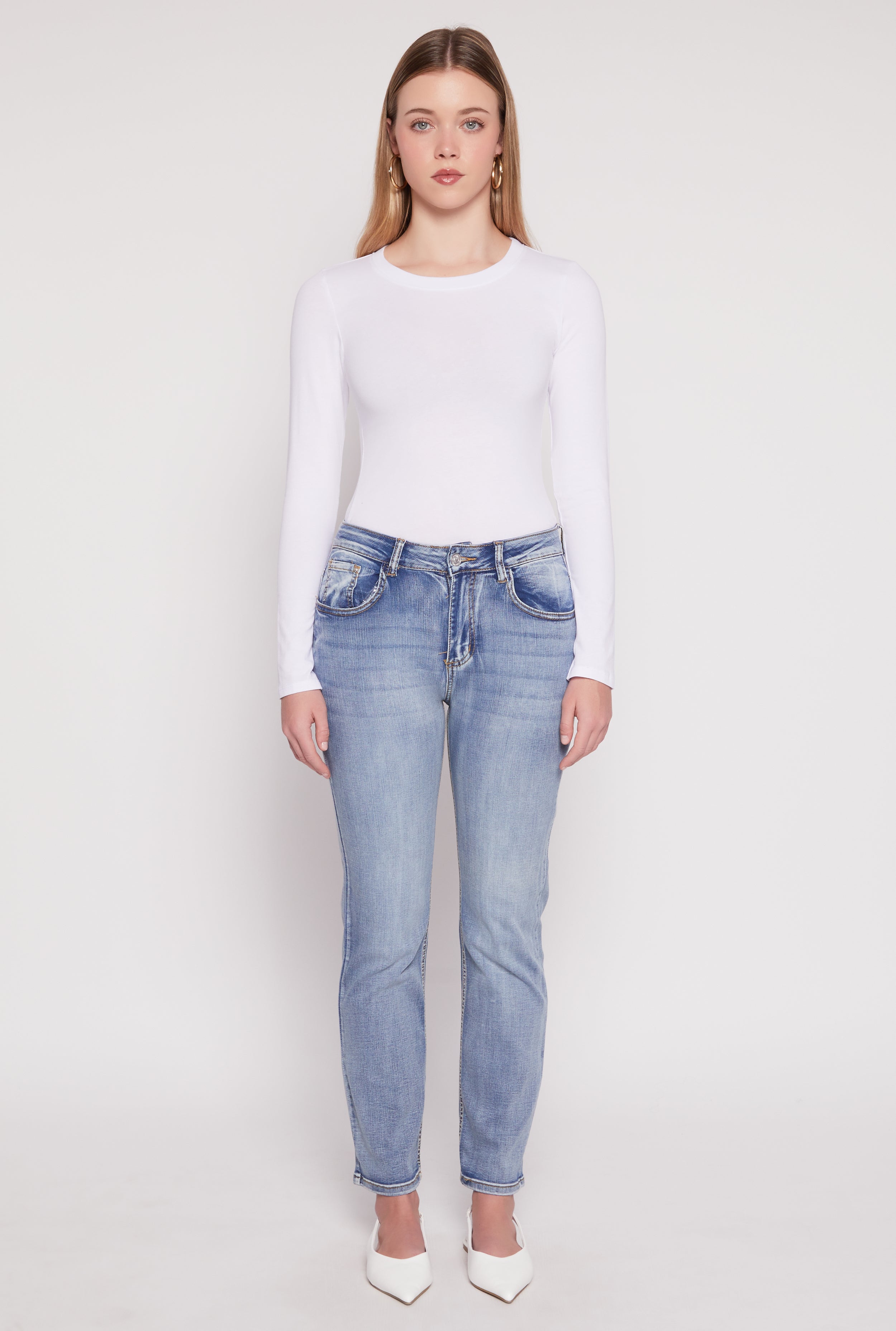 Acid Wash Mid Rise Straight Leg Jeans