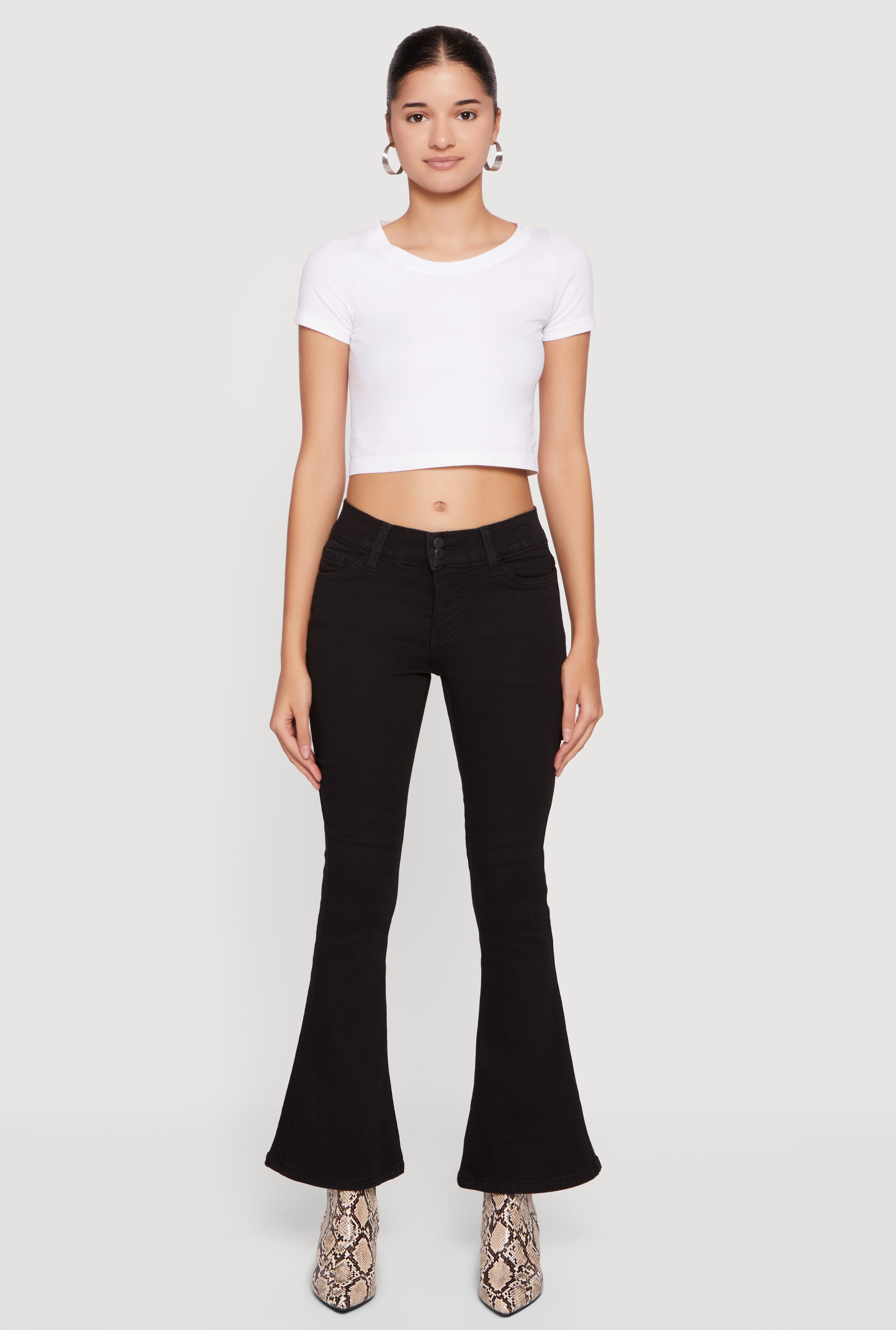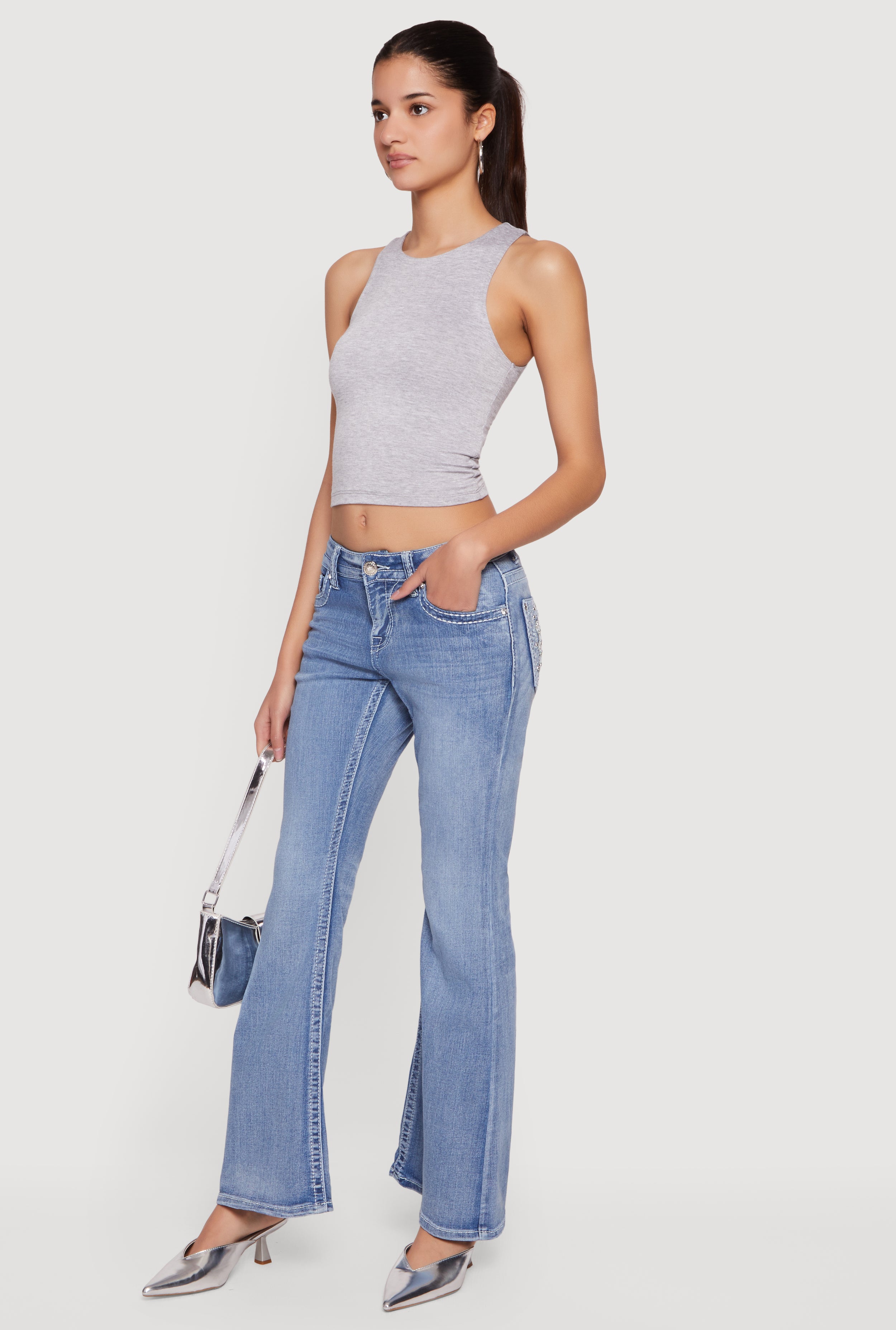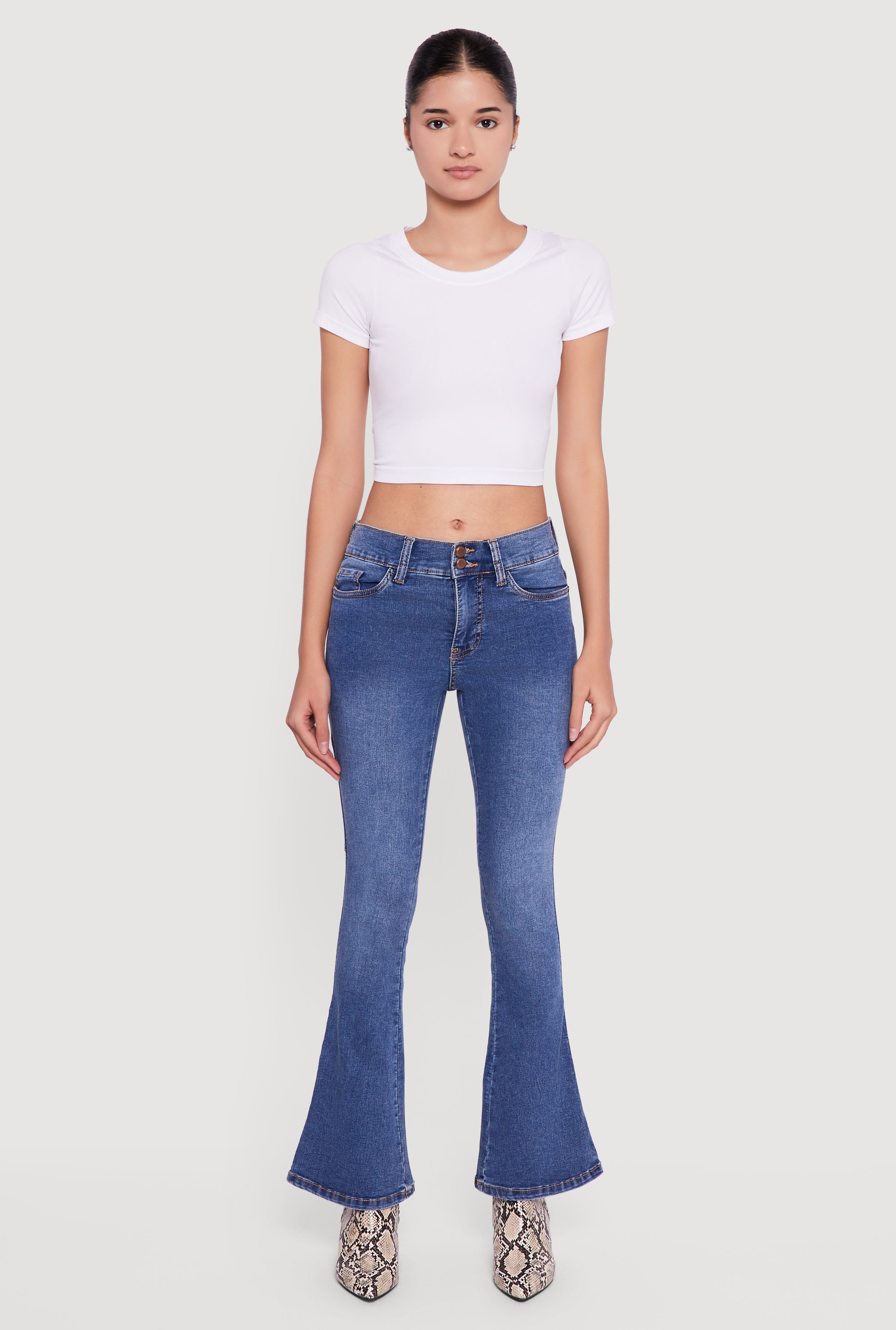 Cell Phone Pocket Mid Rise Stretchy Flare Leg Jeans