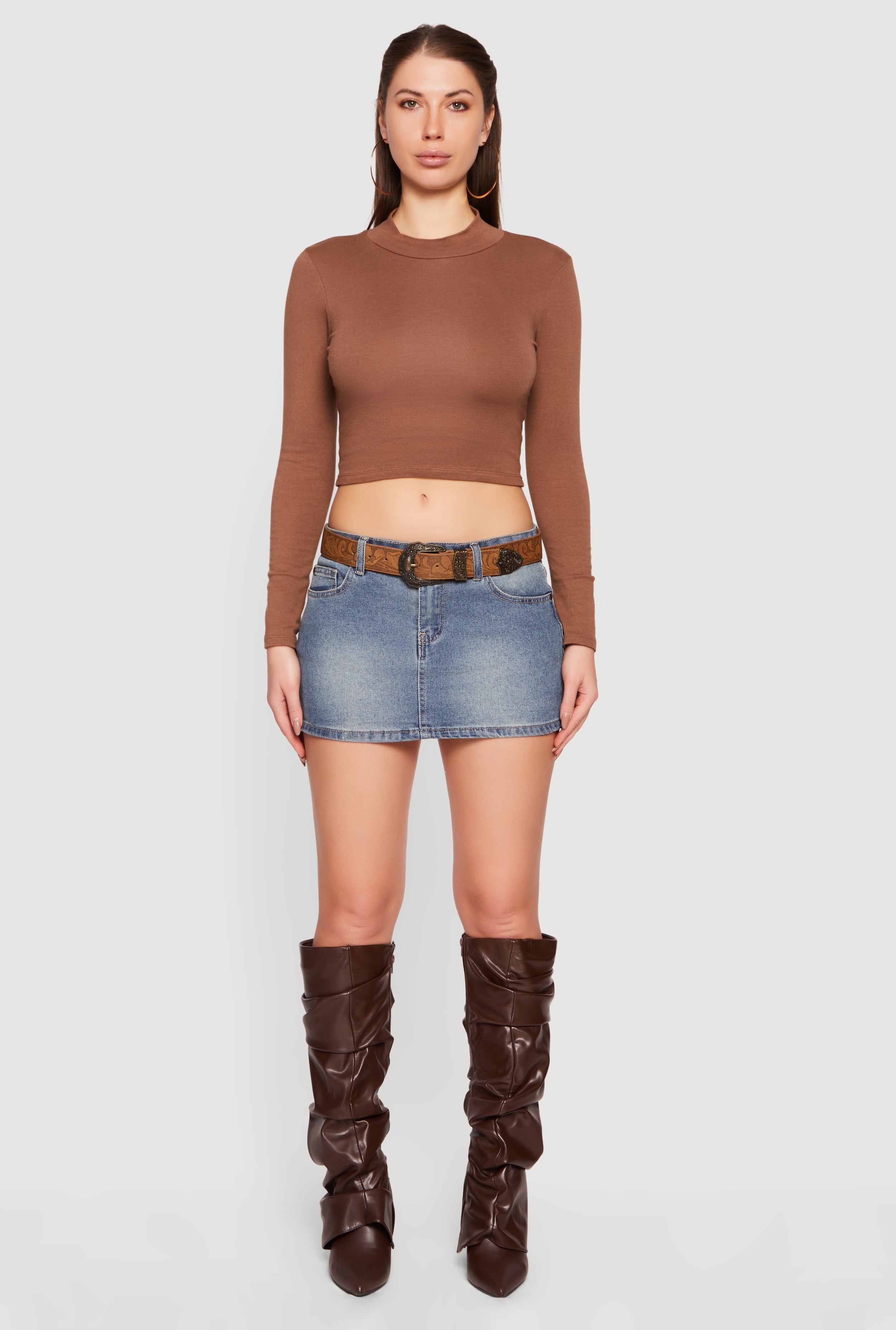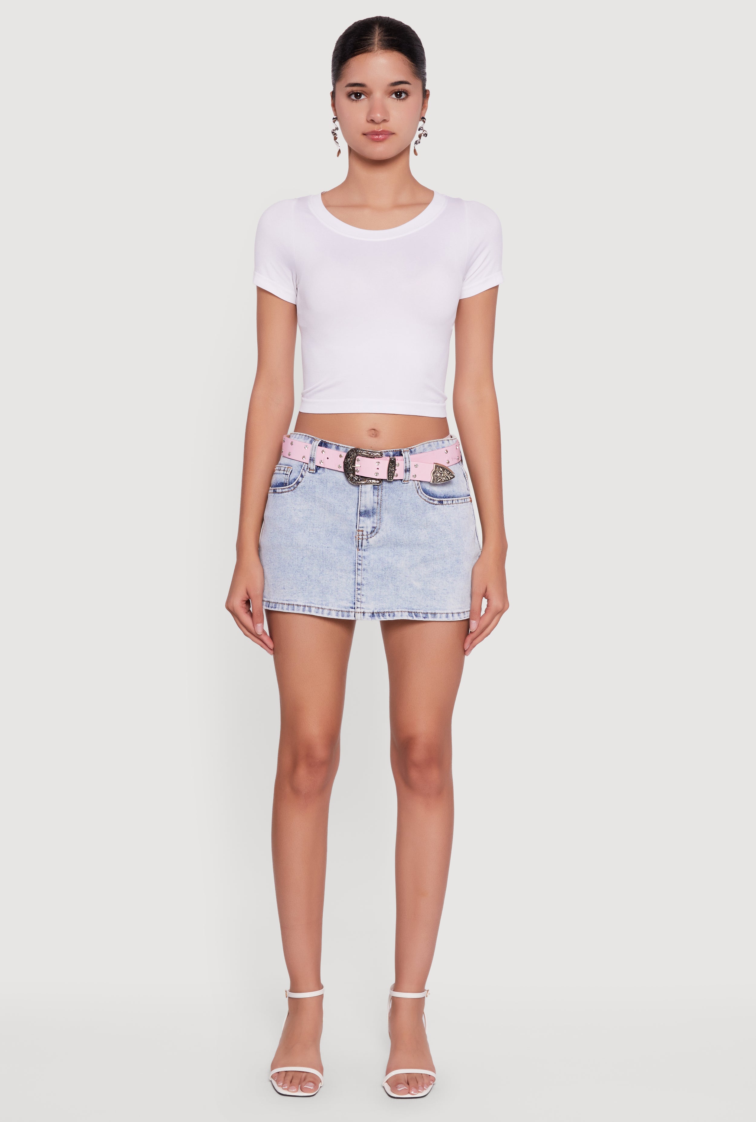 Almost Famous Belted Denim Mini Skirt
