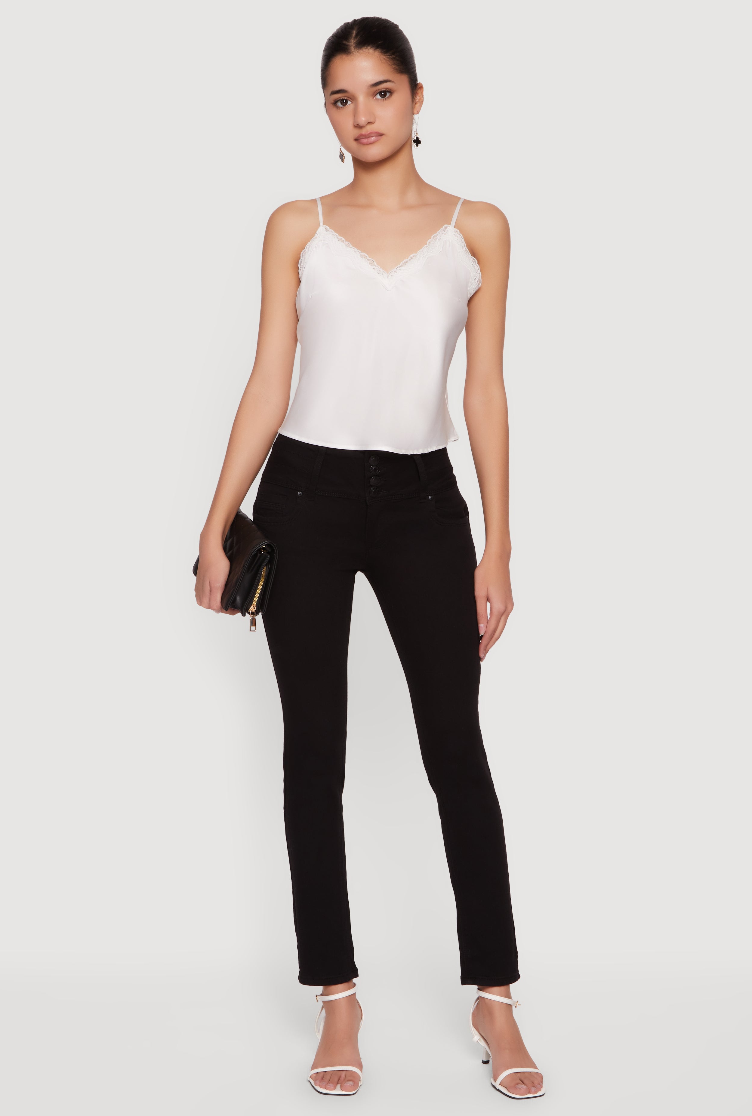Mid Rise 4 Button Skinny Jeans