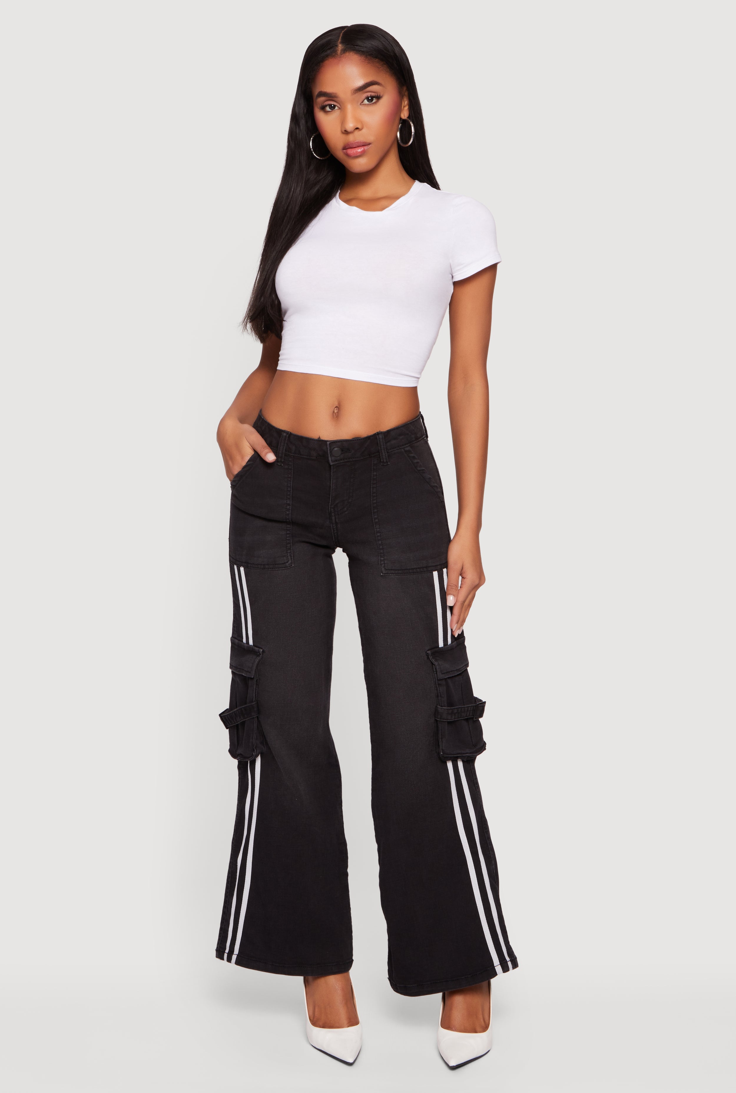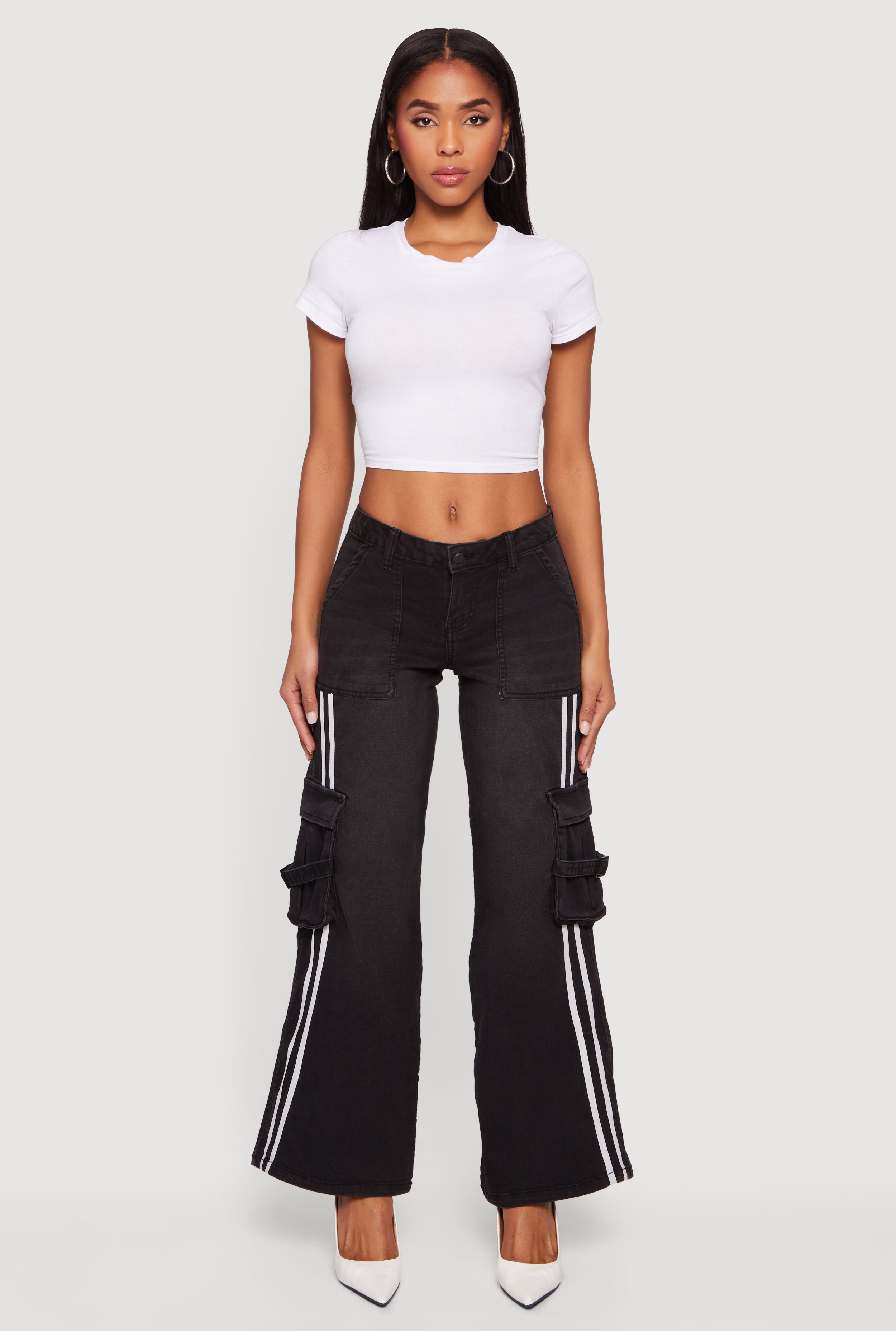 Varsity Stripe Cargo Pocket Flare Leg Jeans