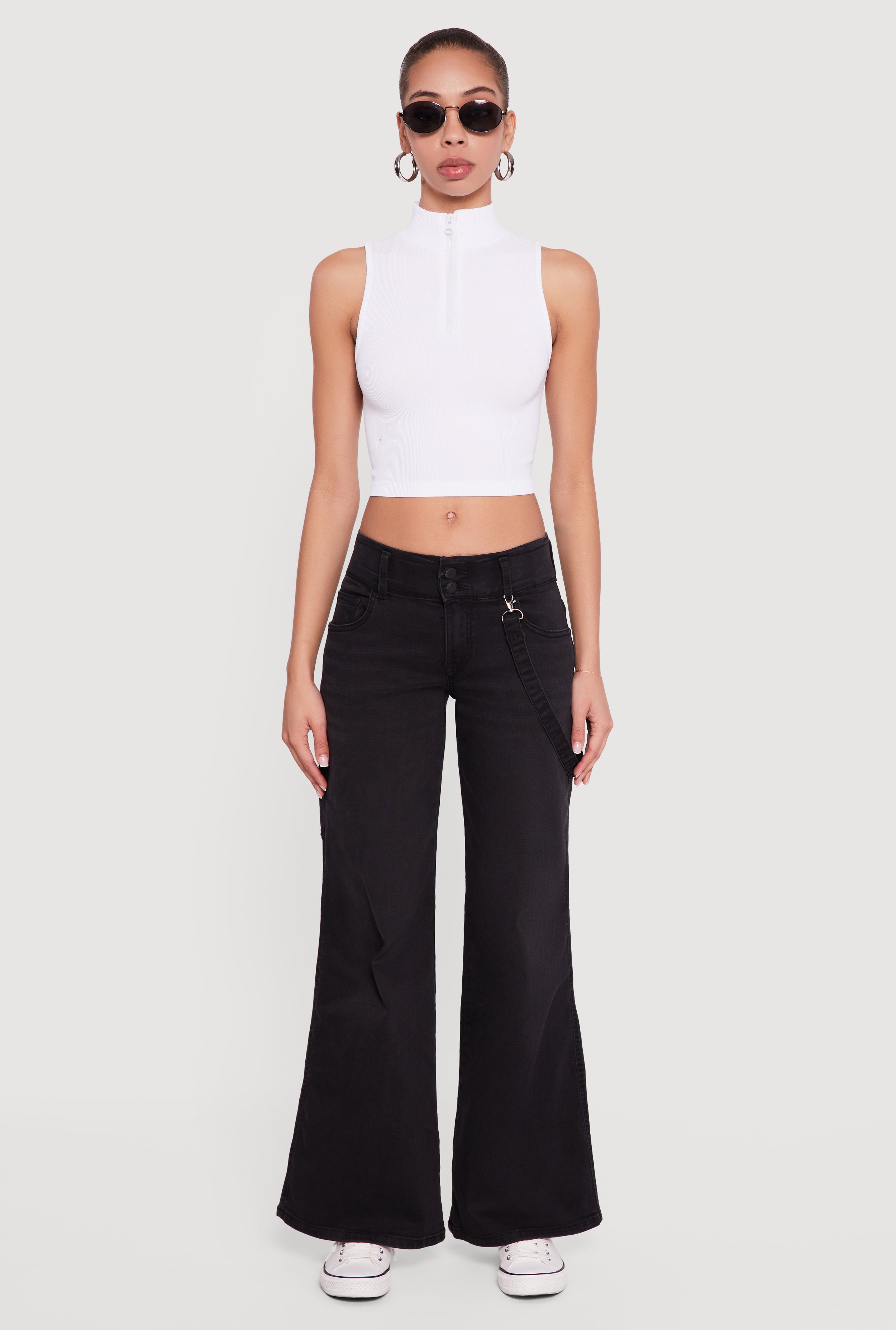 Strap Detail Flare Leg Jeans