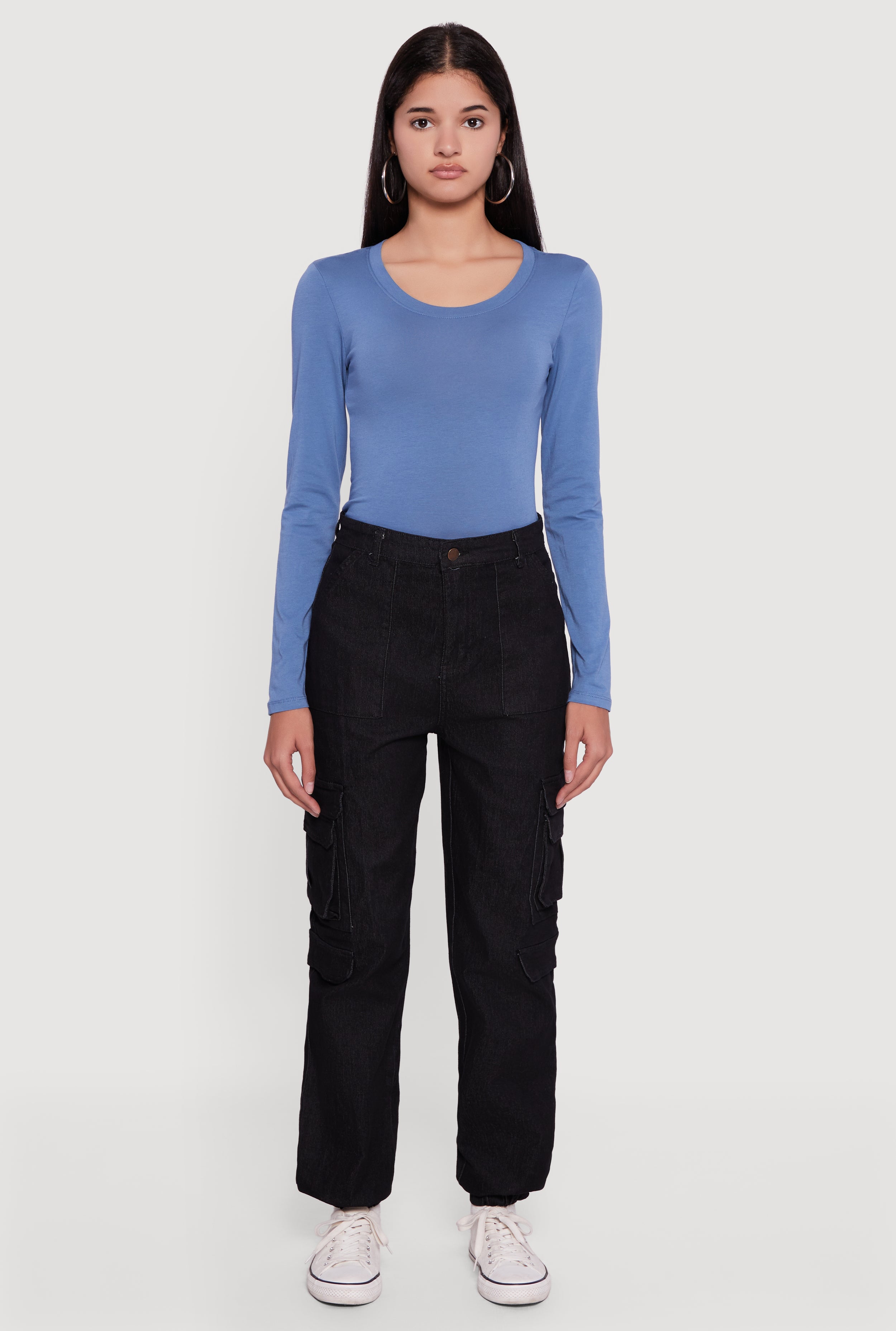 Solid Denim Cargo Joggers