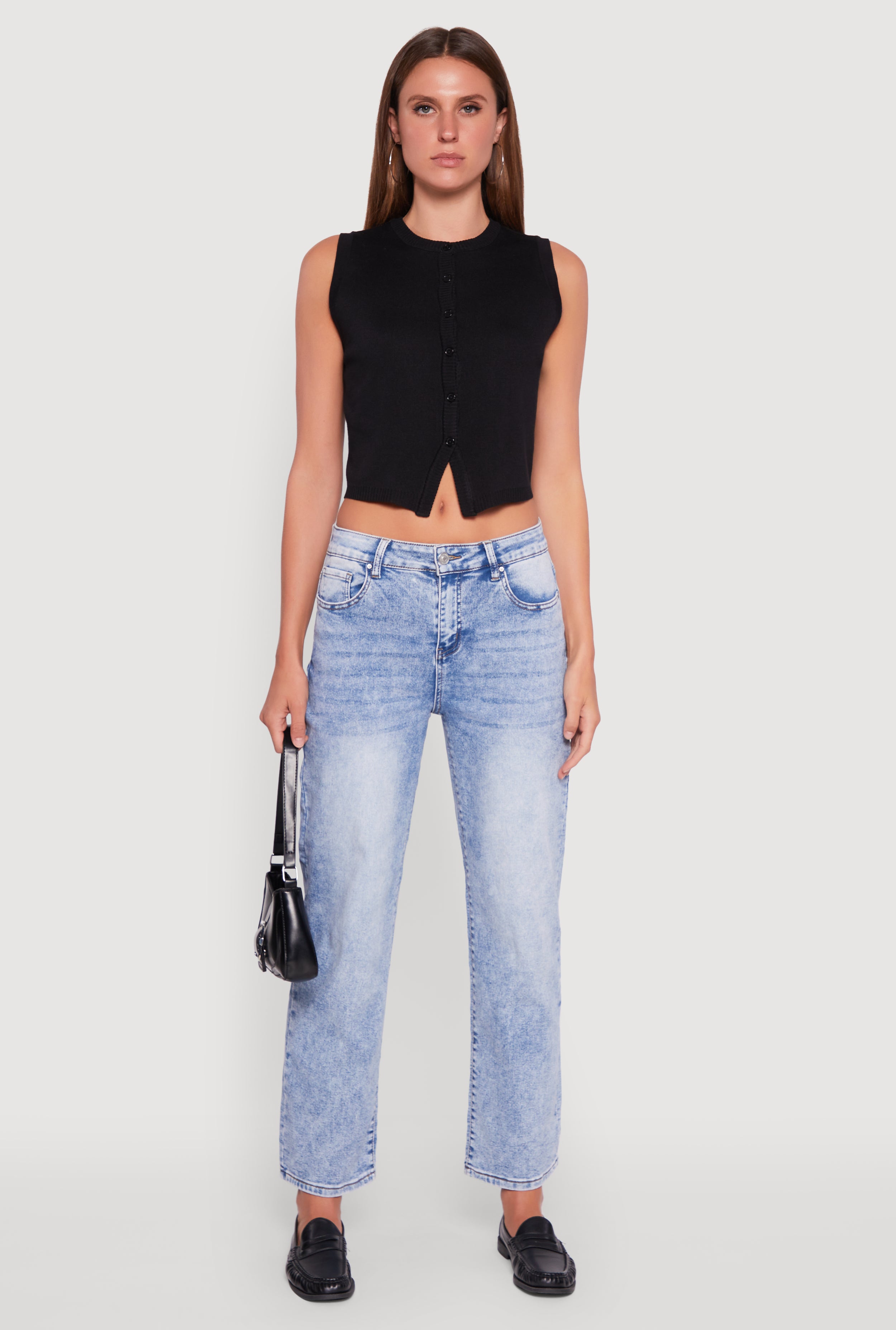 Acid Wash Mid Rise Straight Leg Jeans