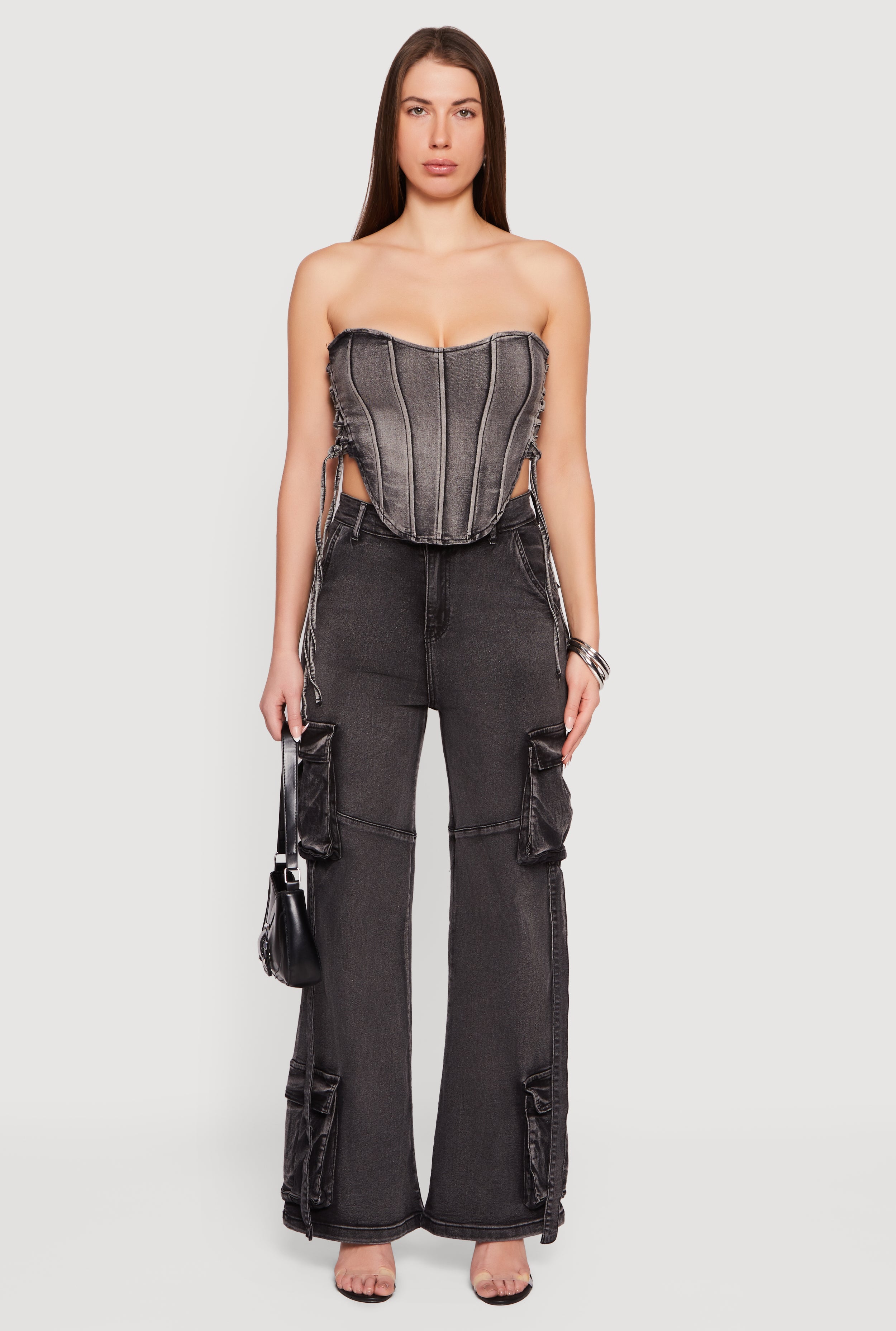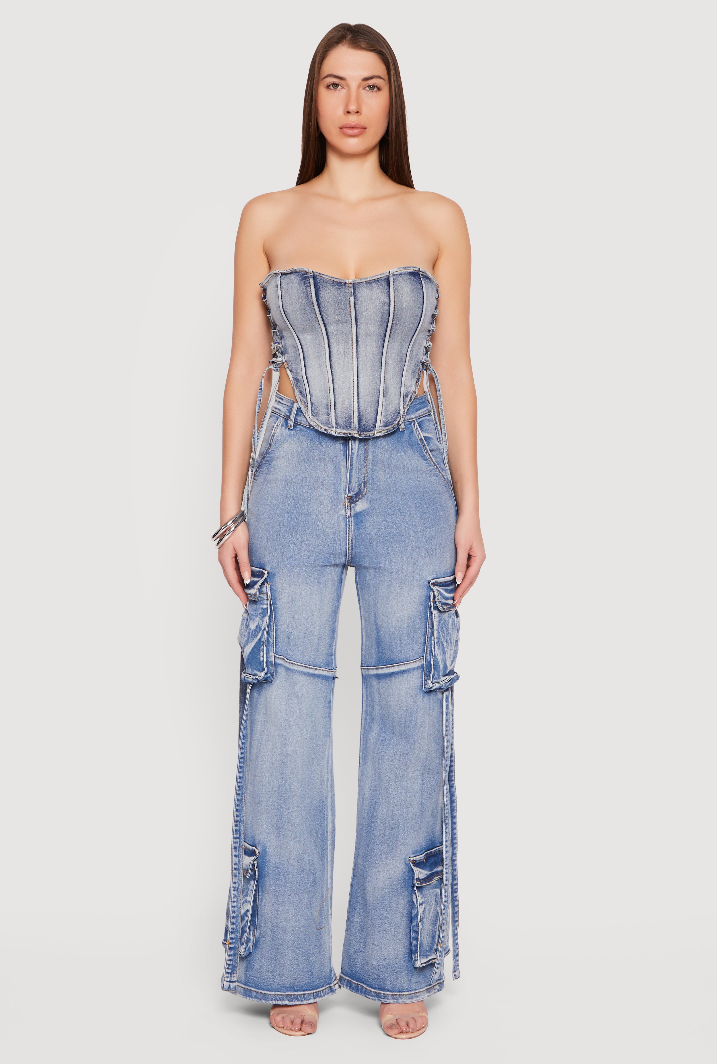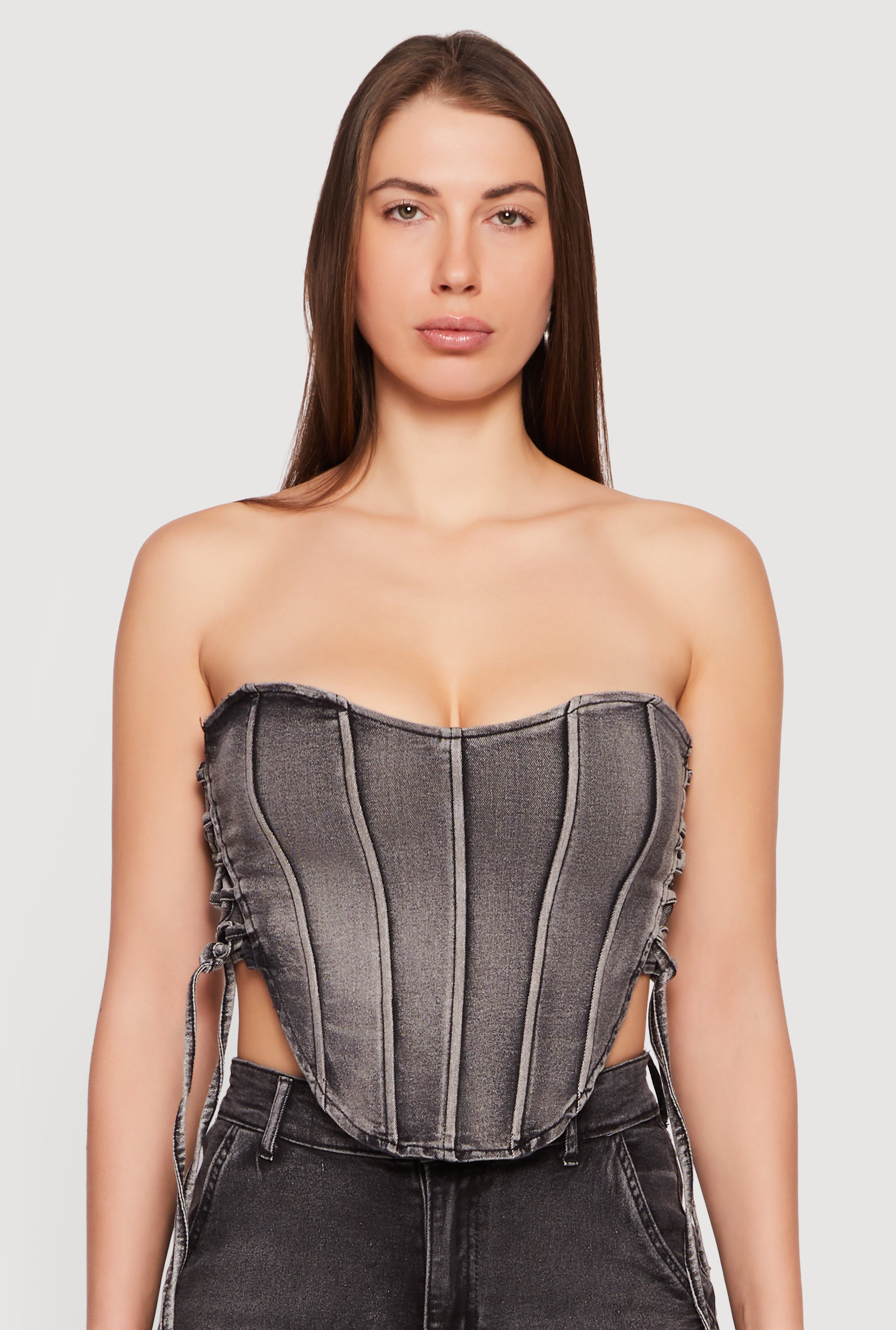 Lace Up Side Denim Corset Top