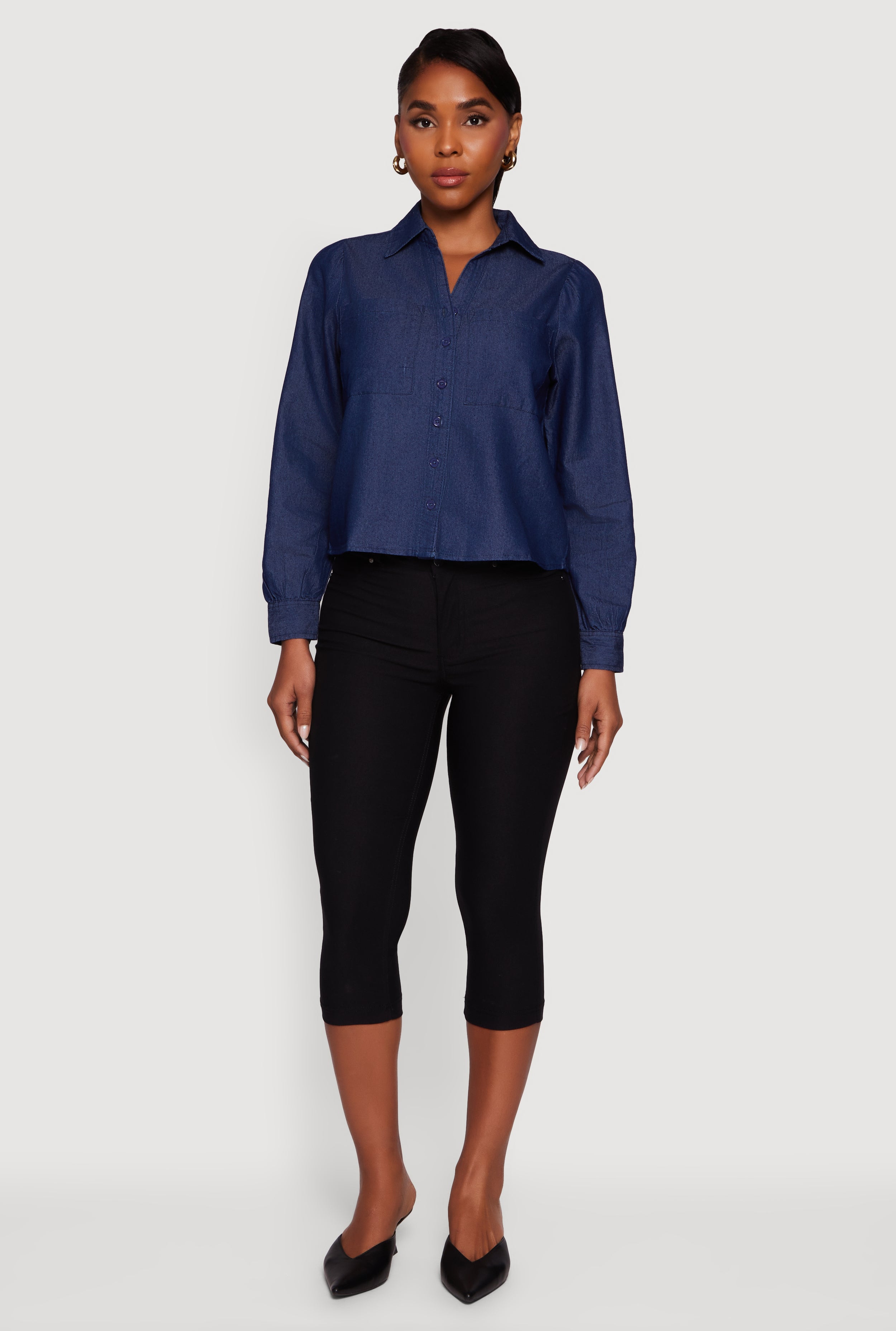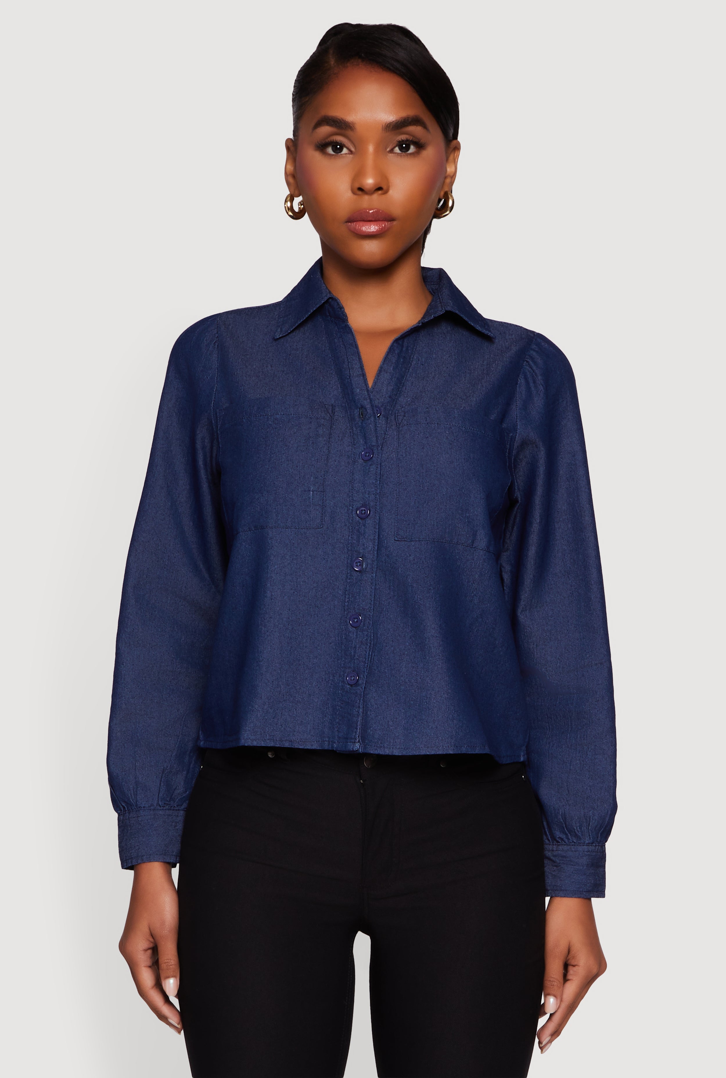 Chambray Notch Neck Button Front Shirt