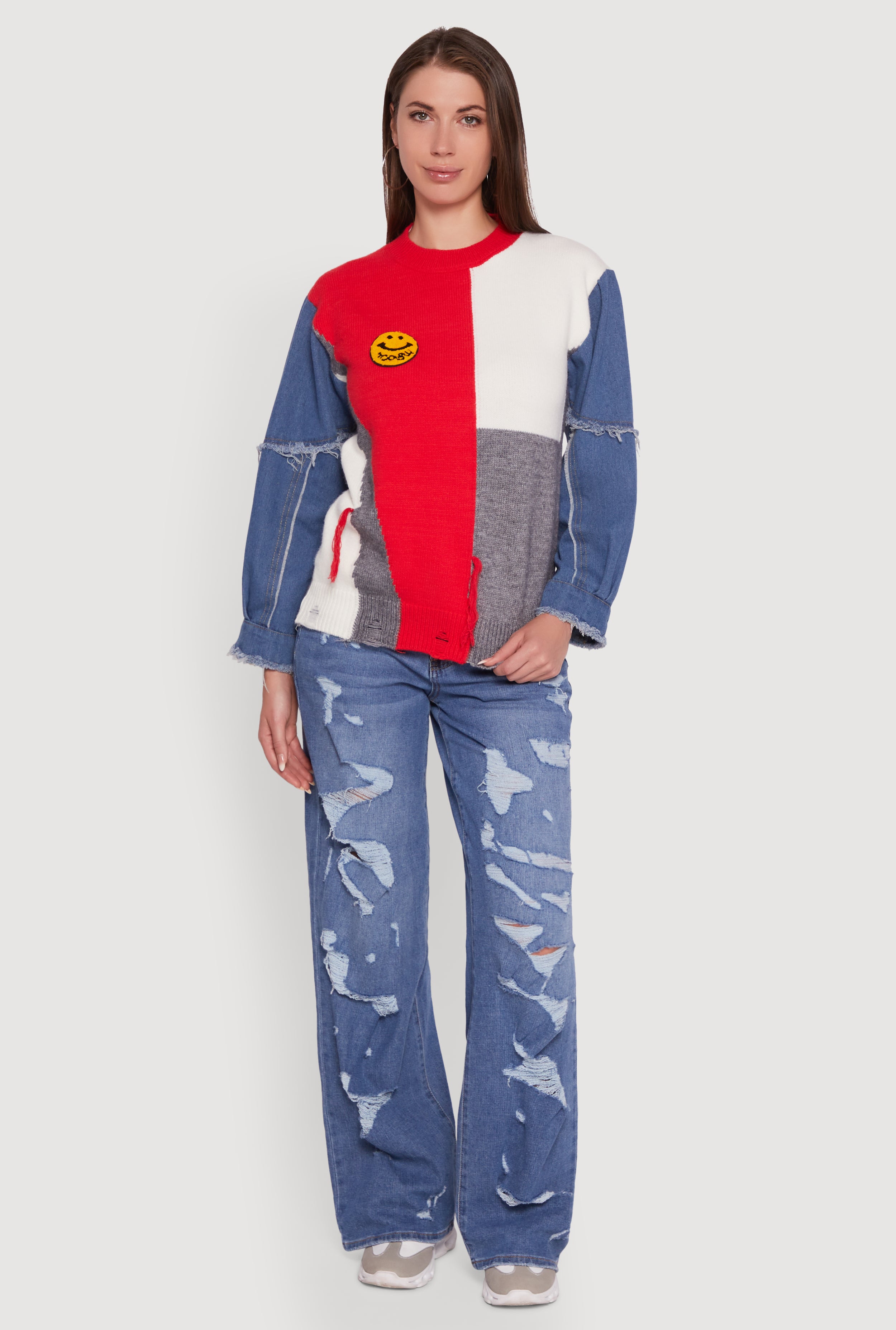 Daisy Color Blocked Denim Sleeve Sweater