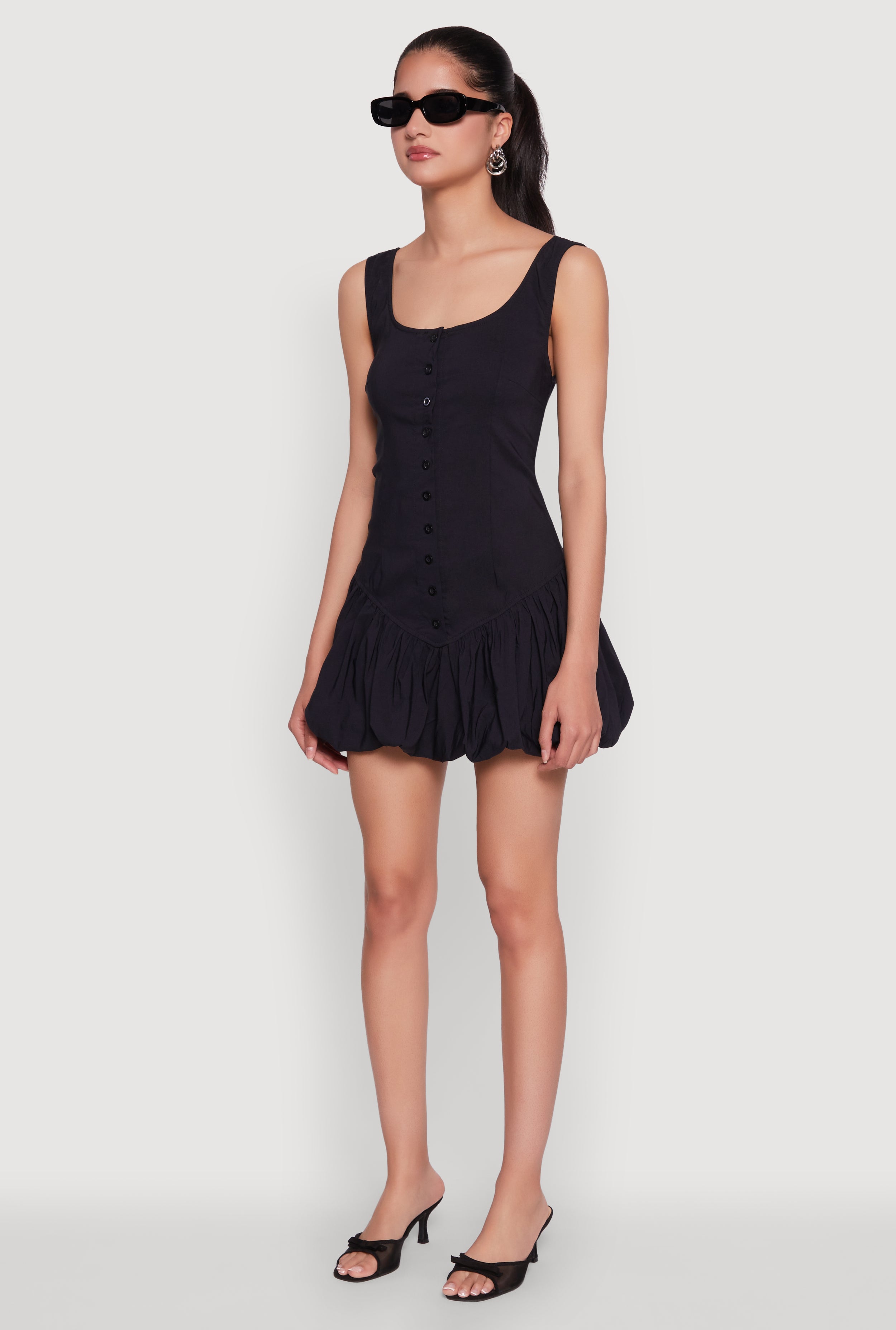 Ready to turn heads without trying too hard? Meet your new go-to: the Button Front Mini Bubble Hem Dress. This sleeveless skater dress features a classic fit with a playful bubble hem that adds just the right amount of flair. Perfect for casual days when you want to feel comfy and cute, its scoop neck and stretch fabric make it easy to move and even easier to love. Whether you鈥檙e out with friends or just chilling, this mini dress has your back for effortless style that鈥檚 totally on point.