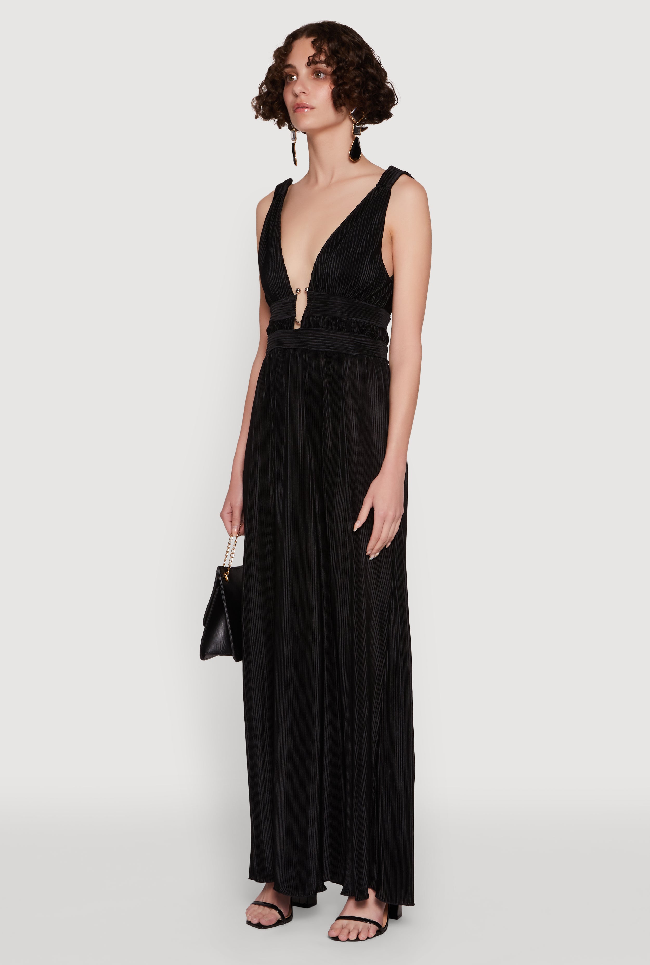 • Sleeveless design with a plunging neckline for a bold, chic look