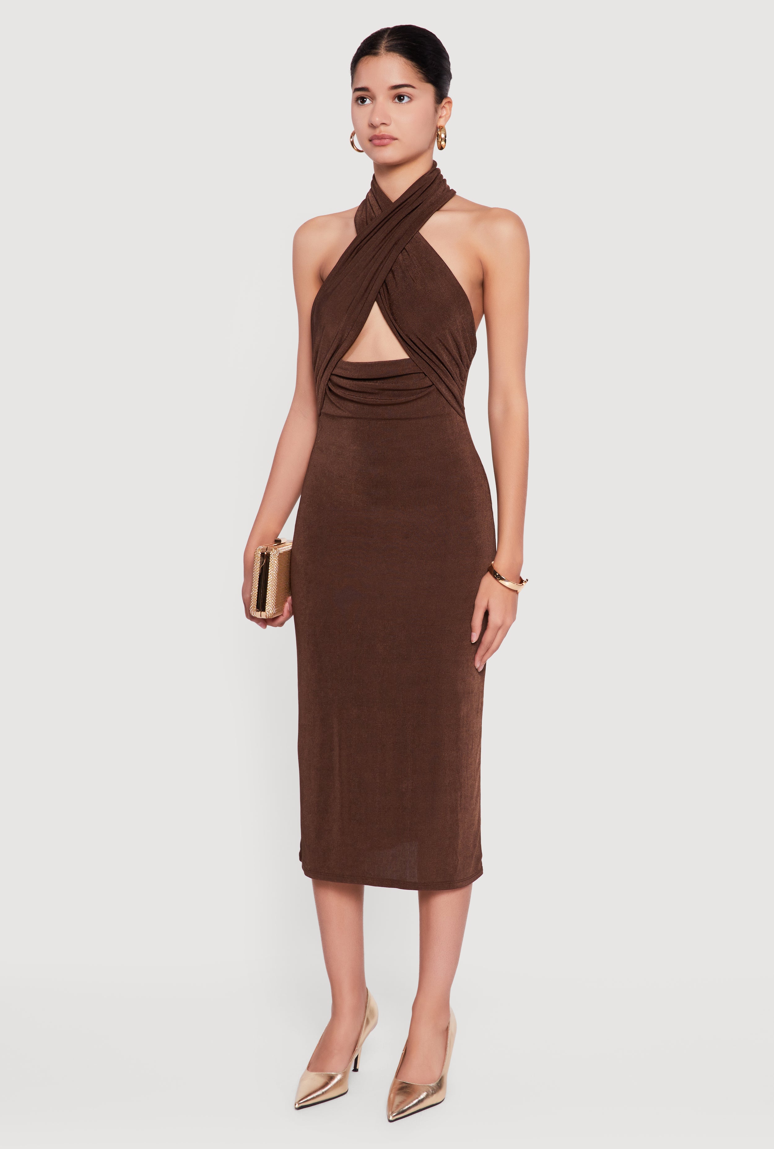 Criss Cross Cut Out Halter Midi Dress