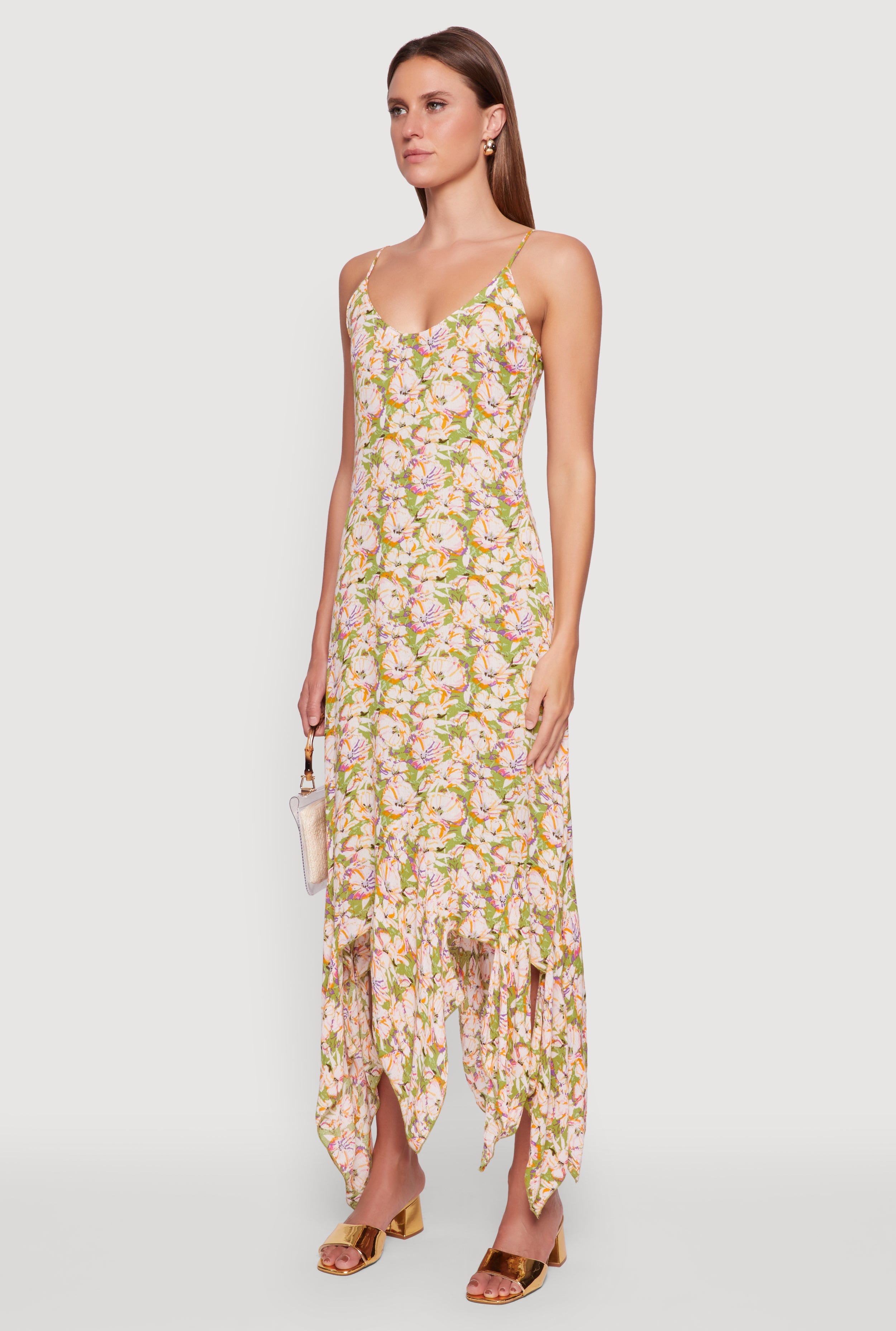 Floral Print Sleeveless Long Slip Dress with Open Tie Back